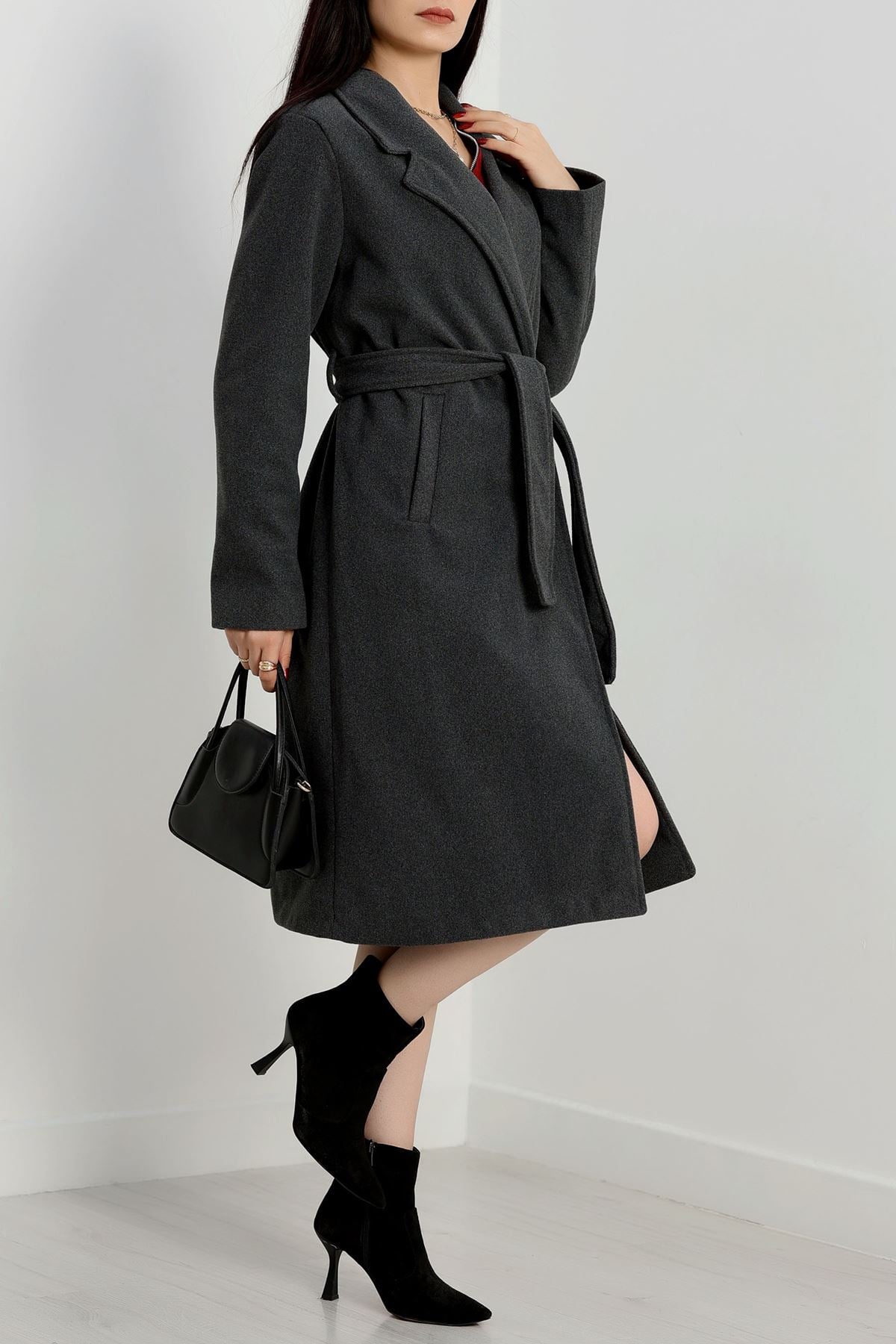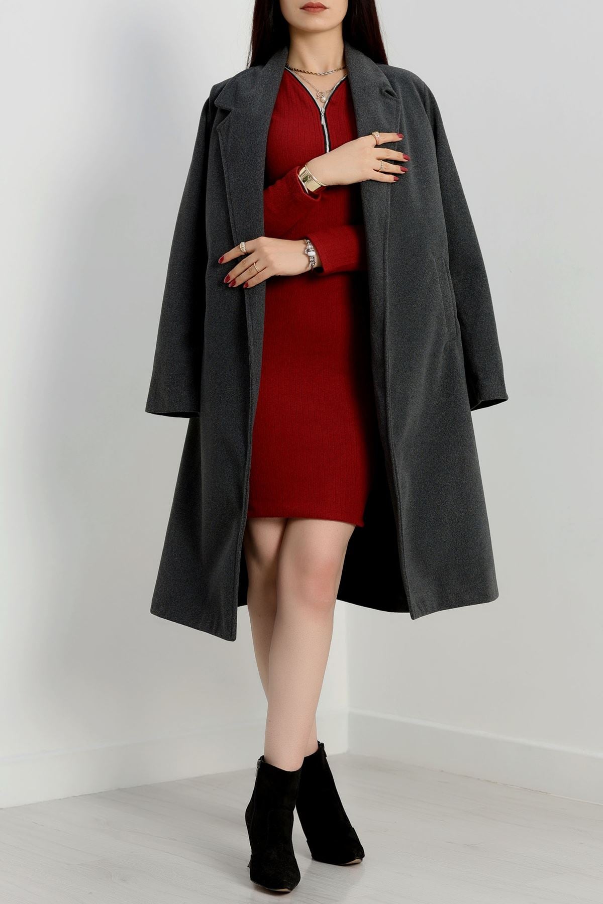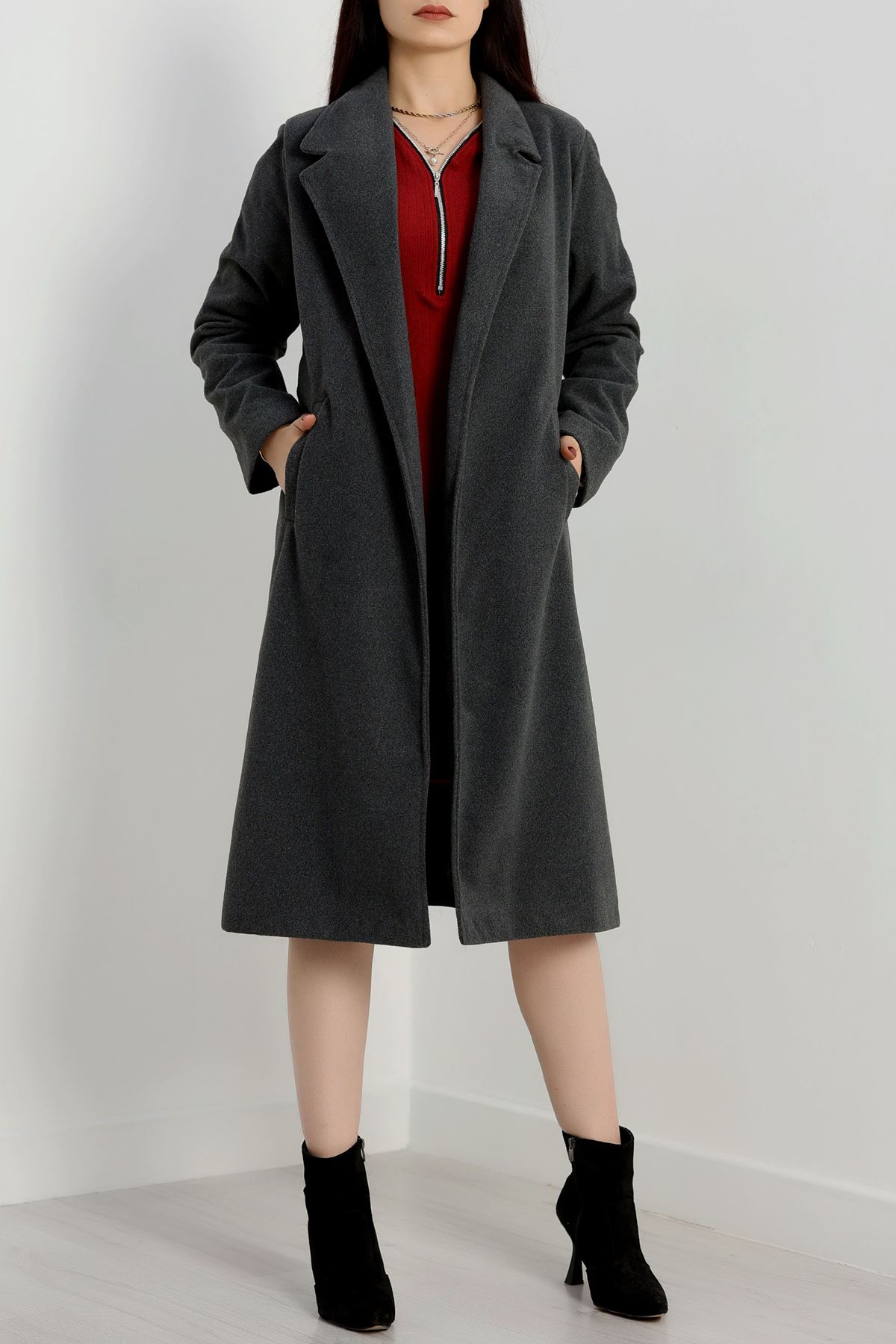110 Cm Astarlı Kaşe Kaban Füme - 90038.1839.