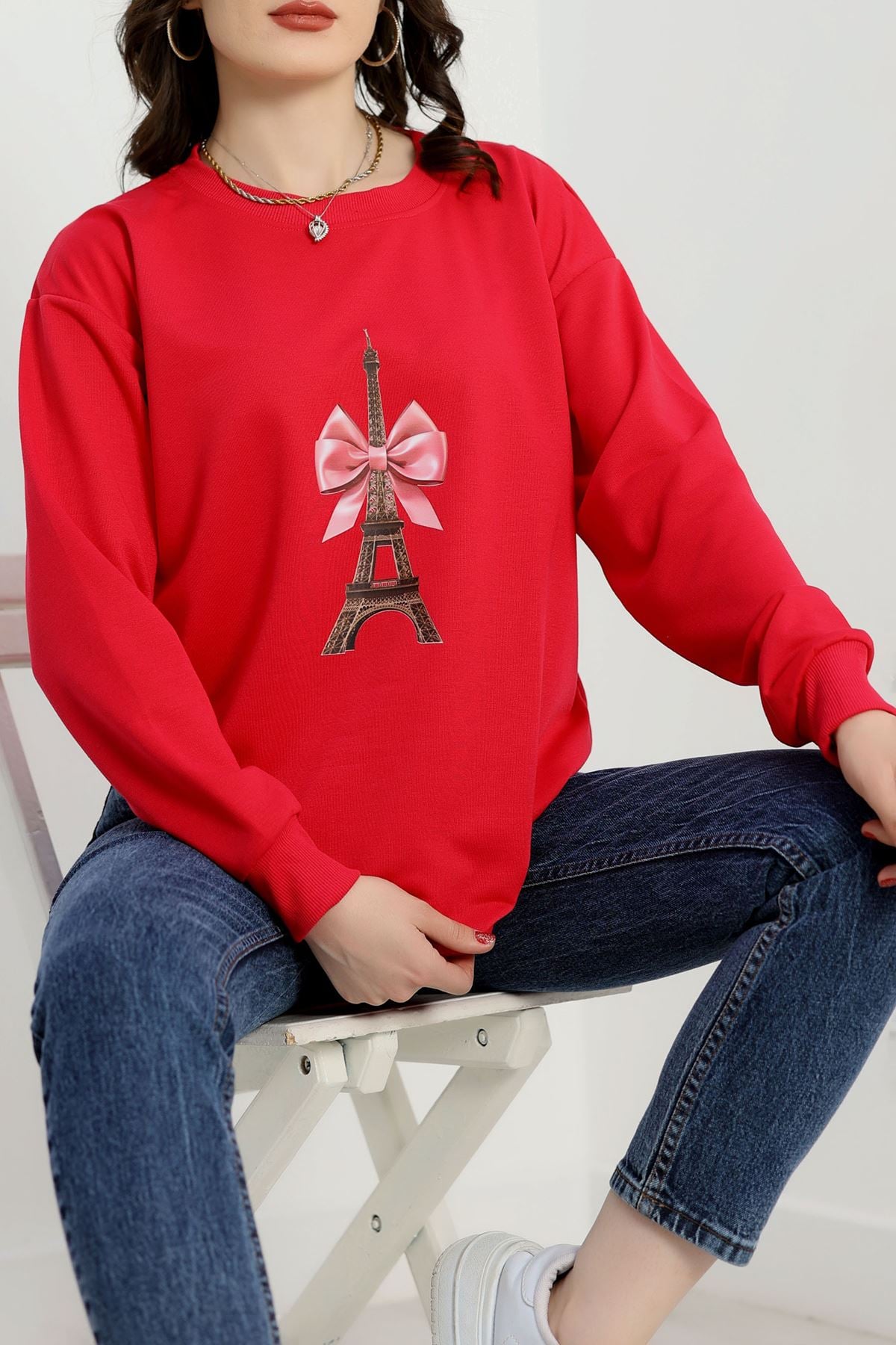 2 İplik Baskılı Sweatshirt Fuşya - 31301.1878.