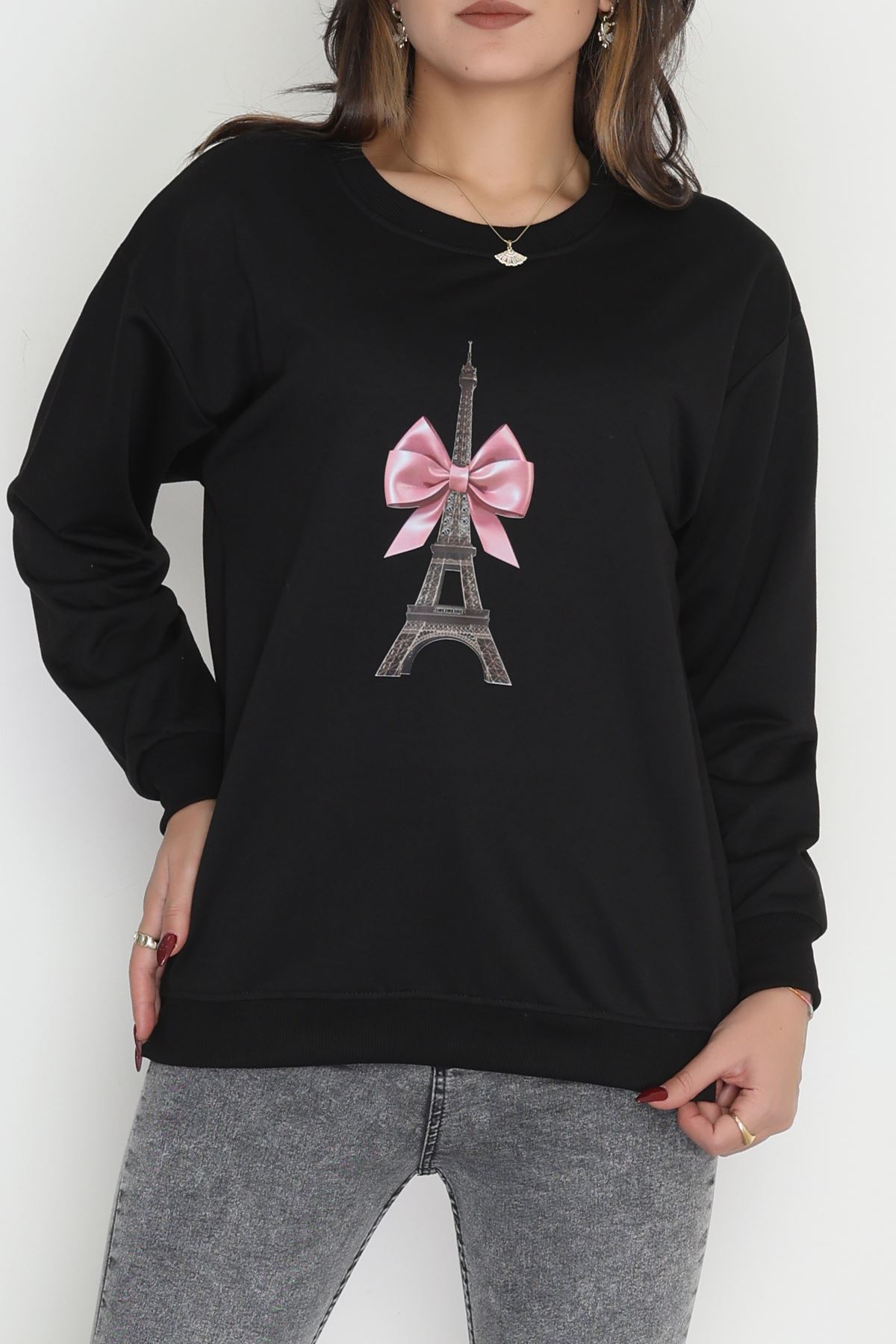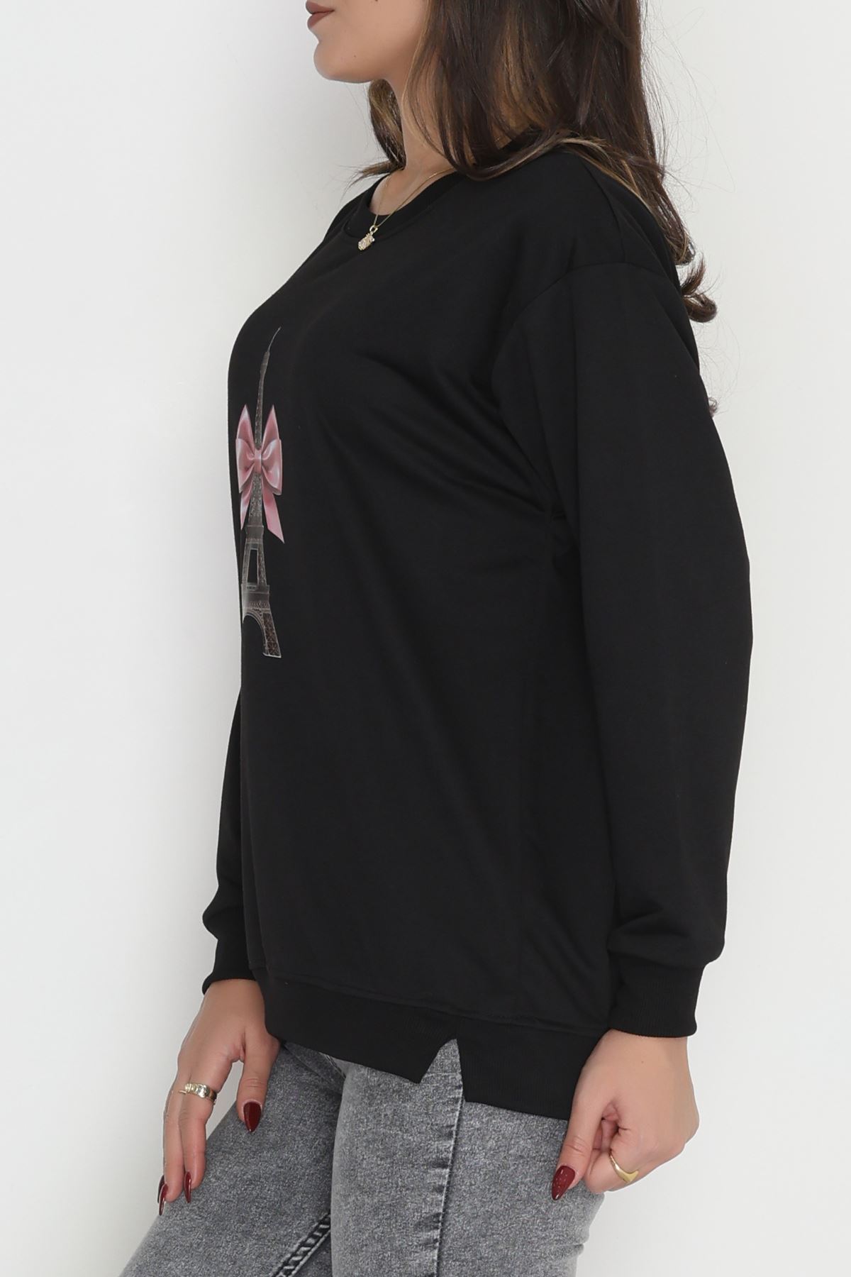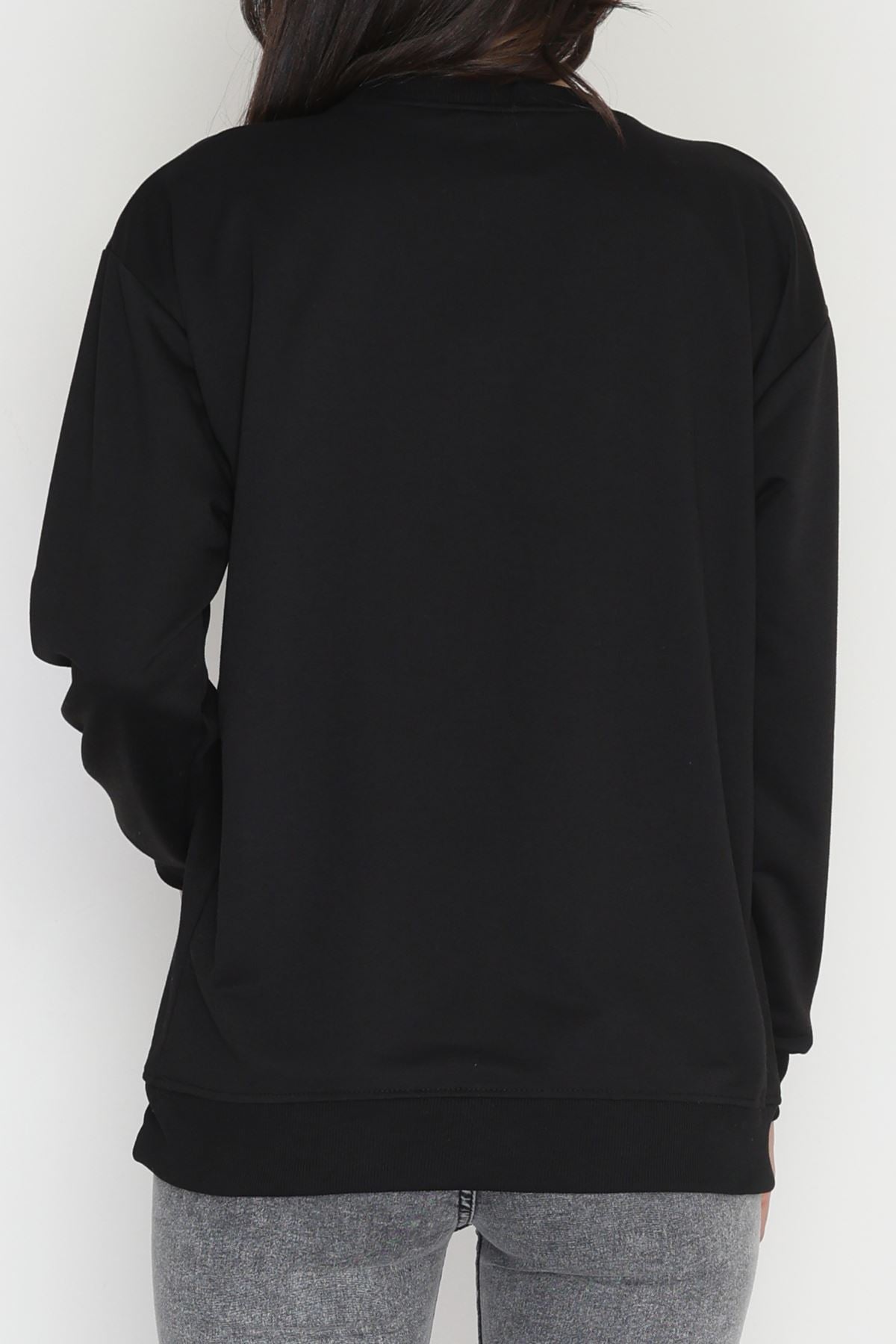 2 İplik Baskılı Sweatshirt Siyah - 31301.1878.