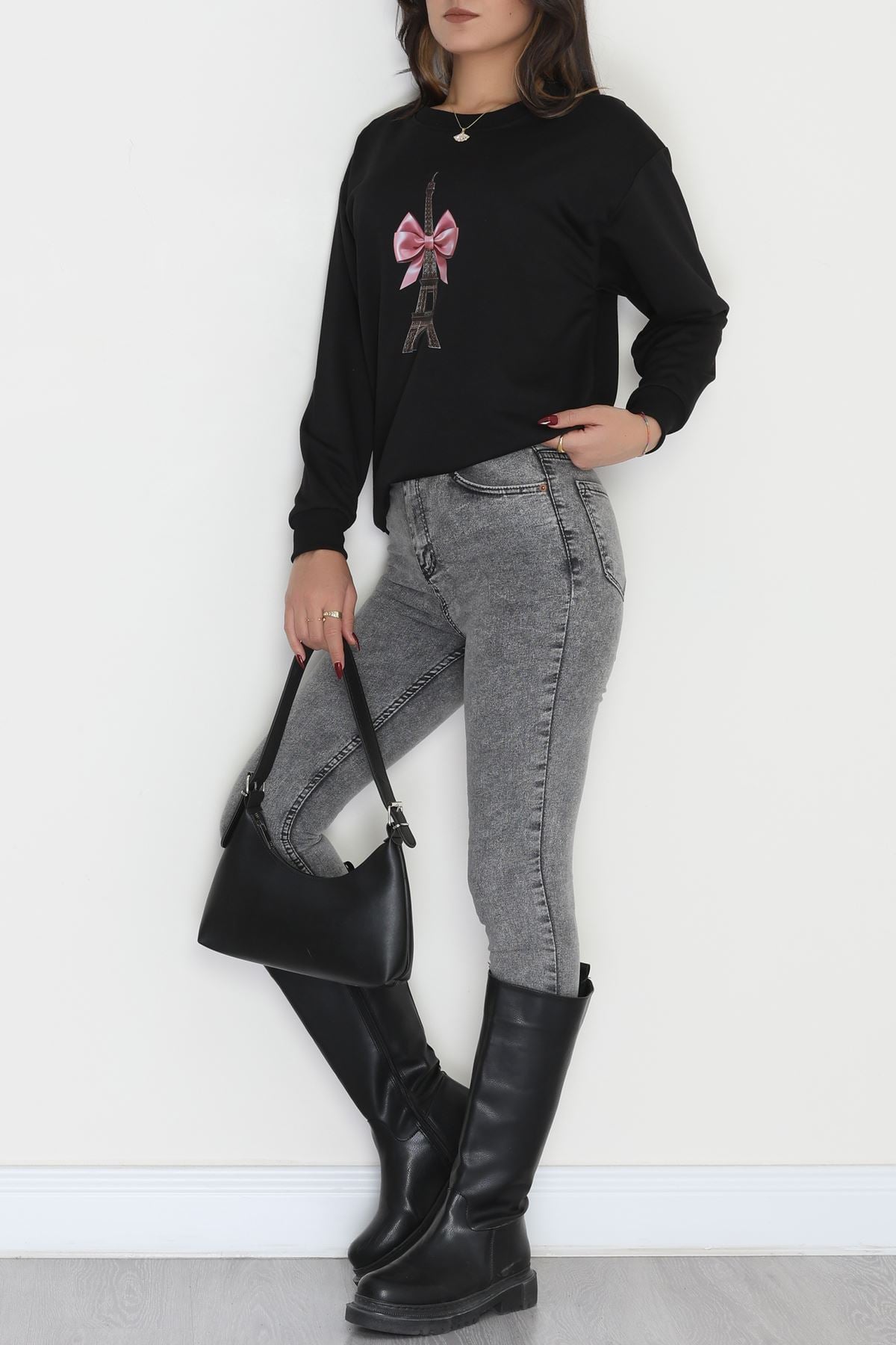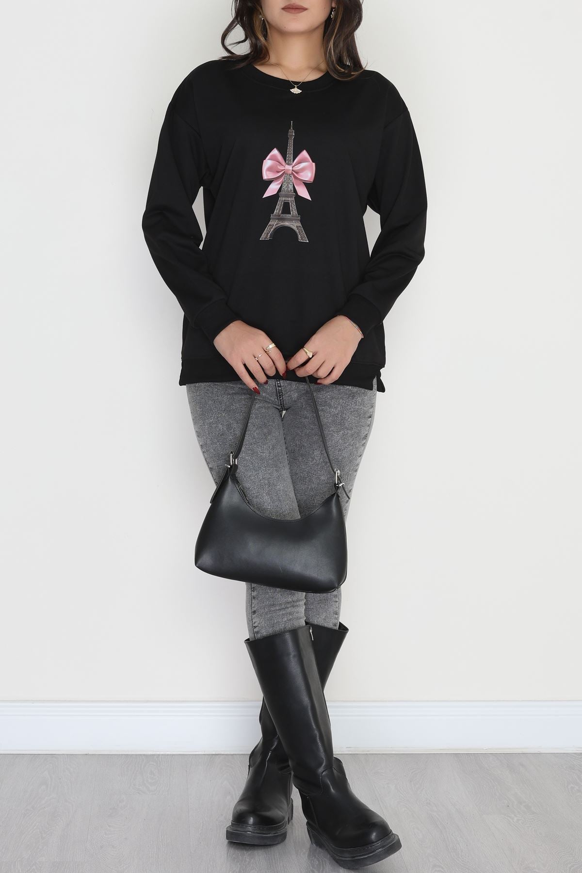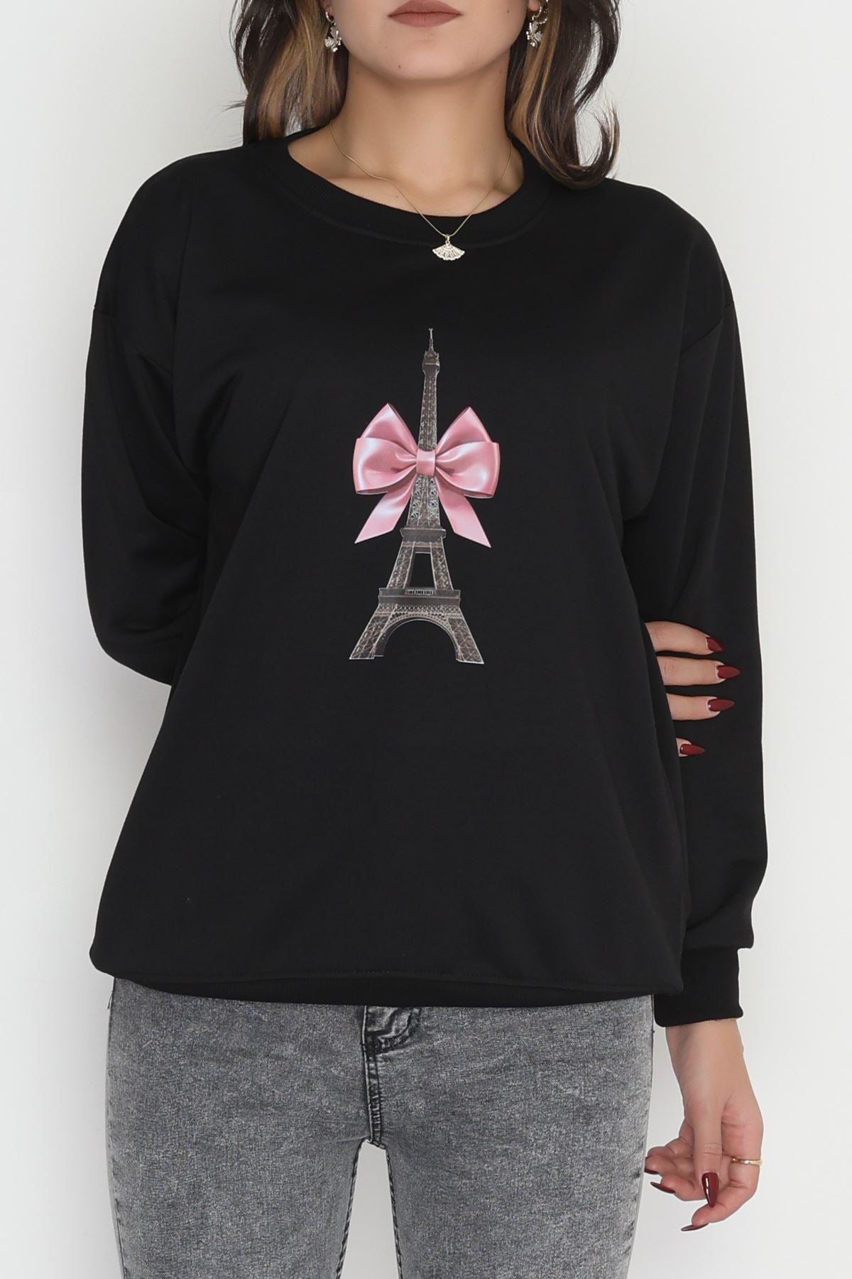 2 İplik Baskılı Sweatshirt Siyah - 31301.1878.