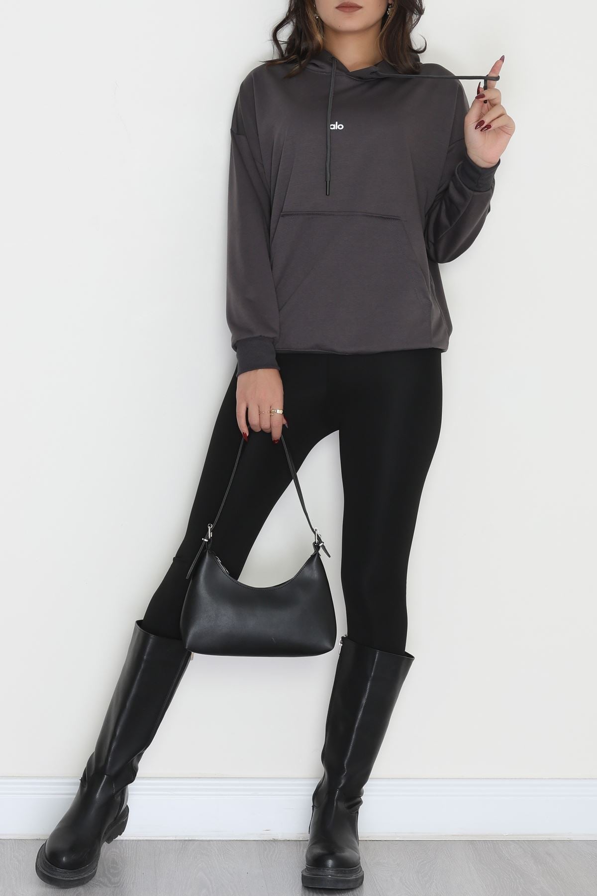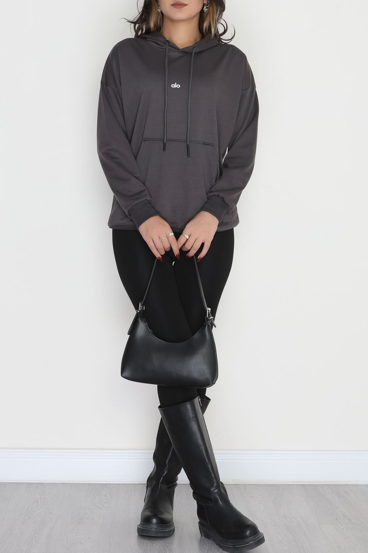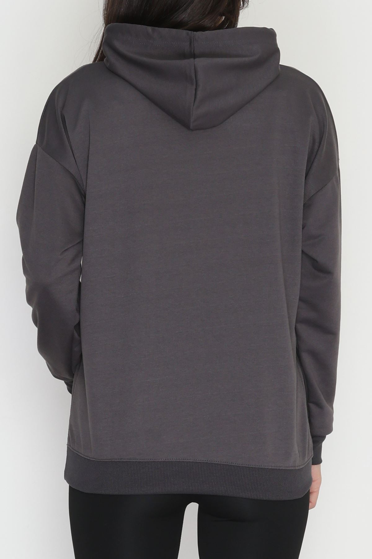 2 İplik Kapşonlu Baskılı Sweatshirt Antrasit - 31315.1878.