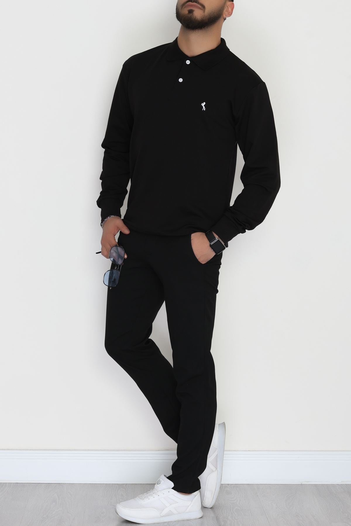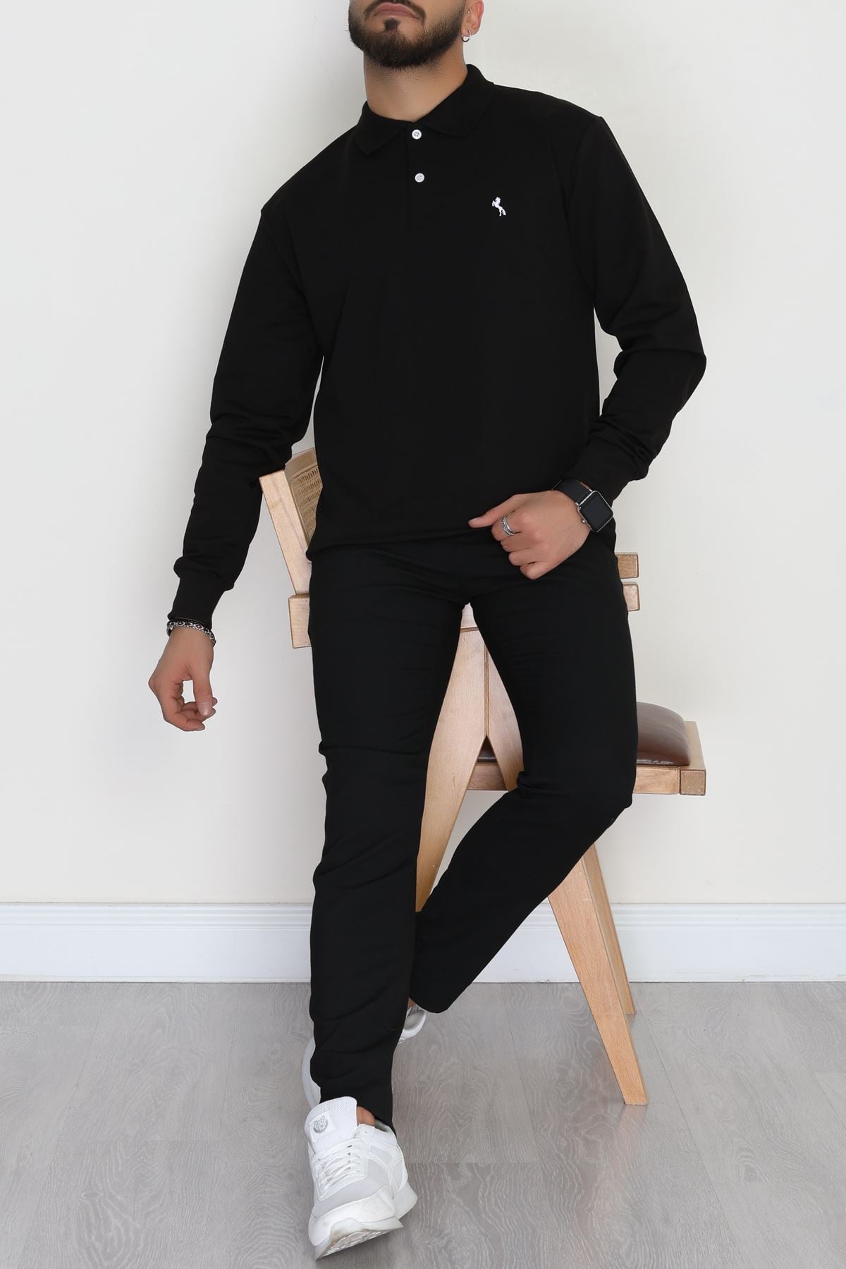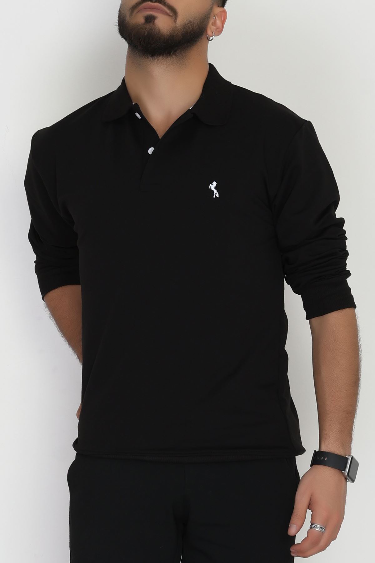 2 İplik Likralı Polo Yaka Erkek Sweat Siyah - 42743.2087.