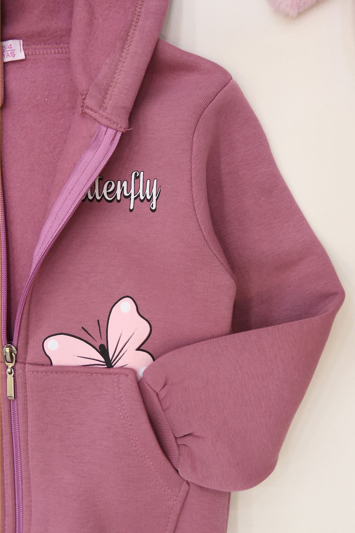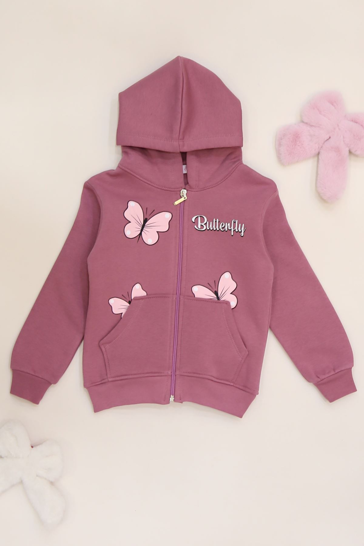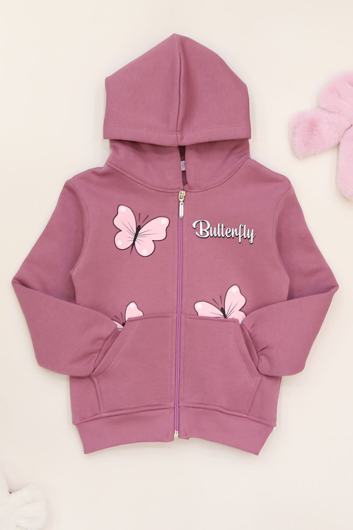 3-12 Yaş 3 İplik Şardonlu Kapşonlu Sweat Gülkurusu - 60710.1867.
