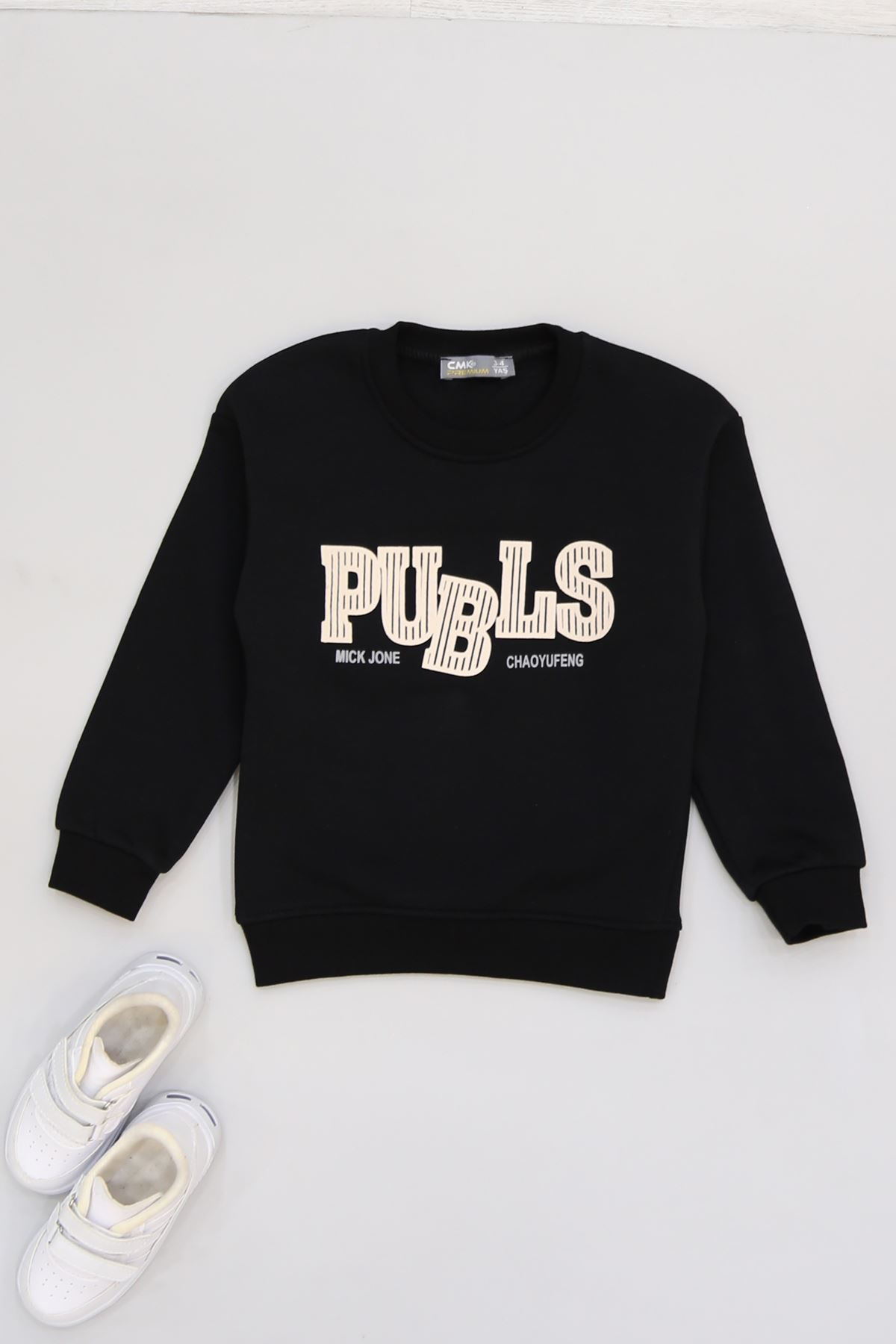 3-12 Yaş 3 İplik Şardonlu Sweat Siyah - 60400.1867.
