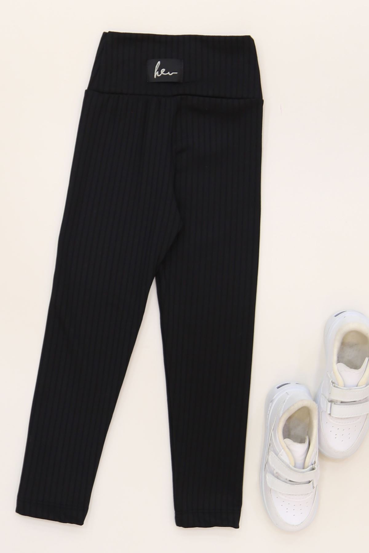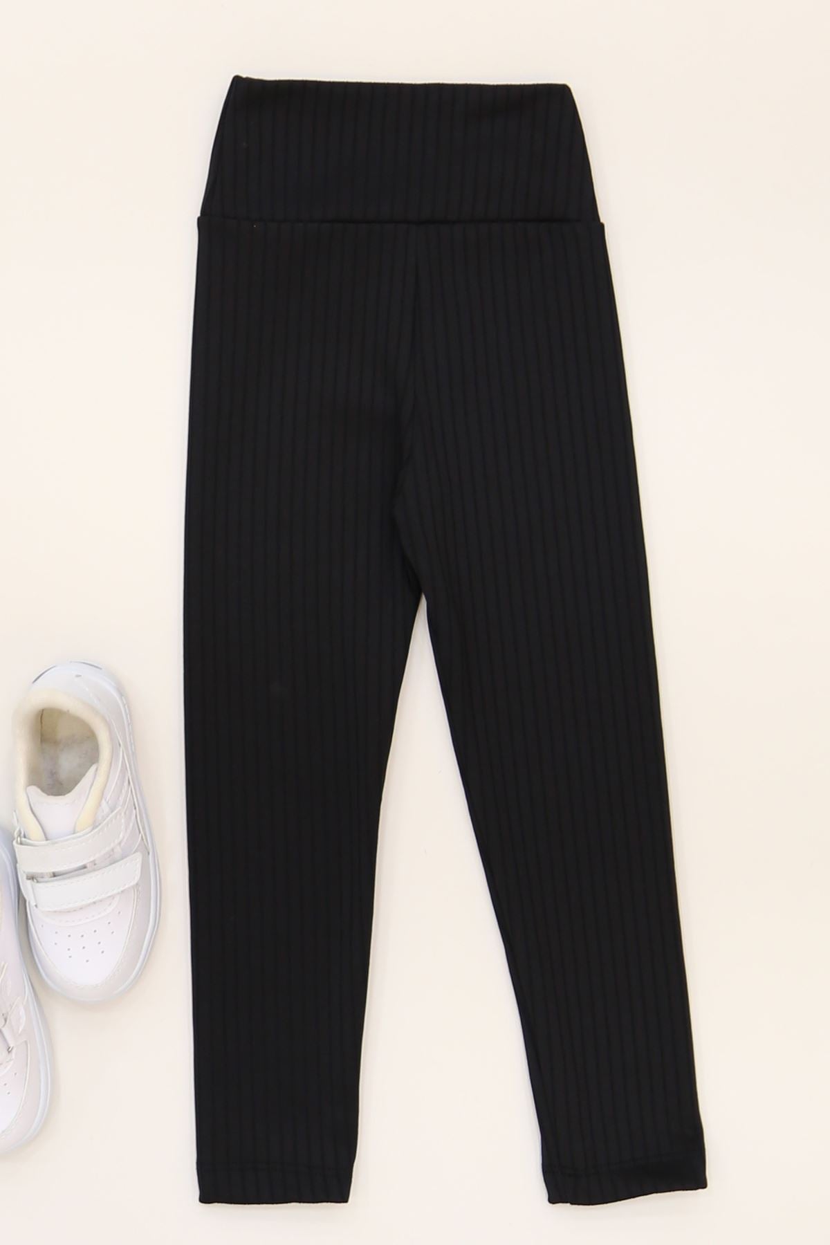 3-12 Yaş Şardonlu Fitilli Çocuk Tayt Siyah - 52089.1780.