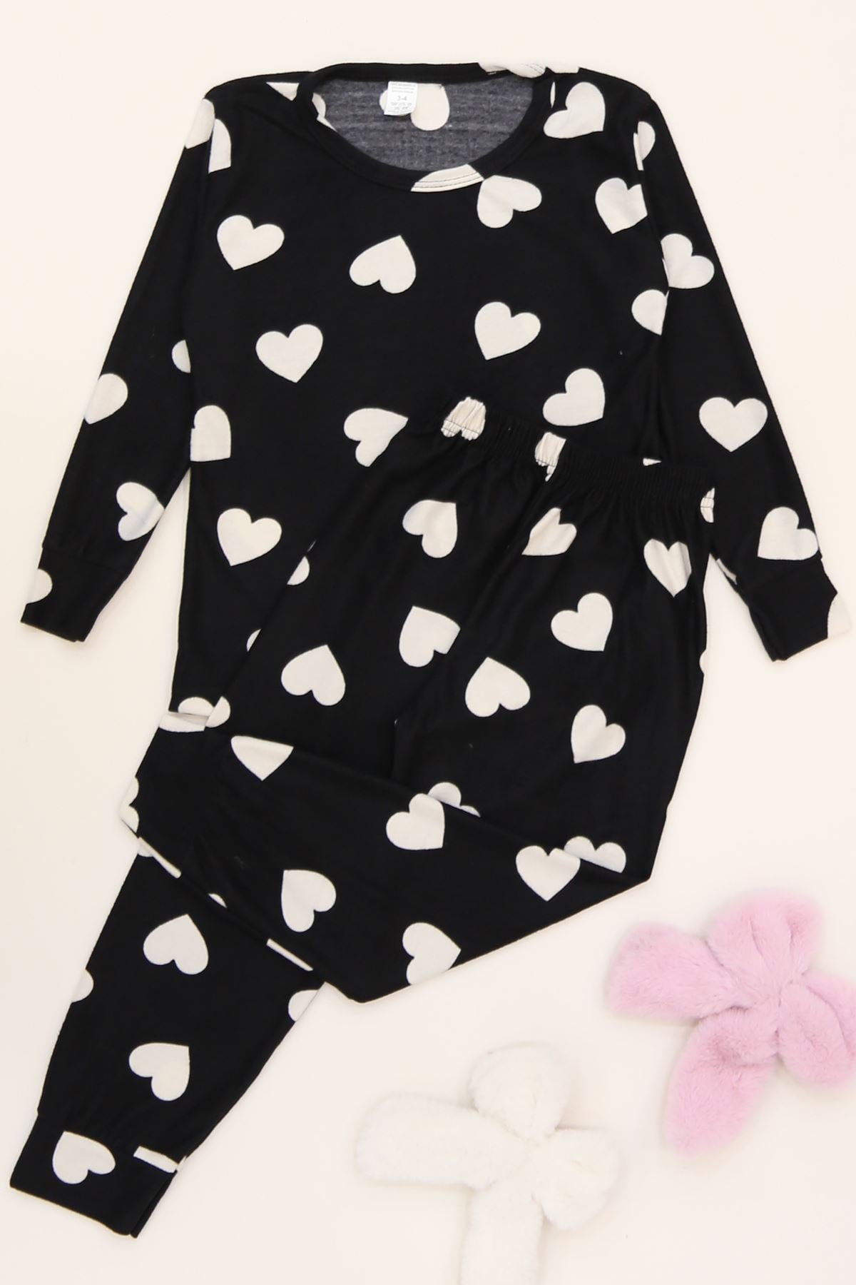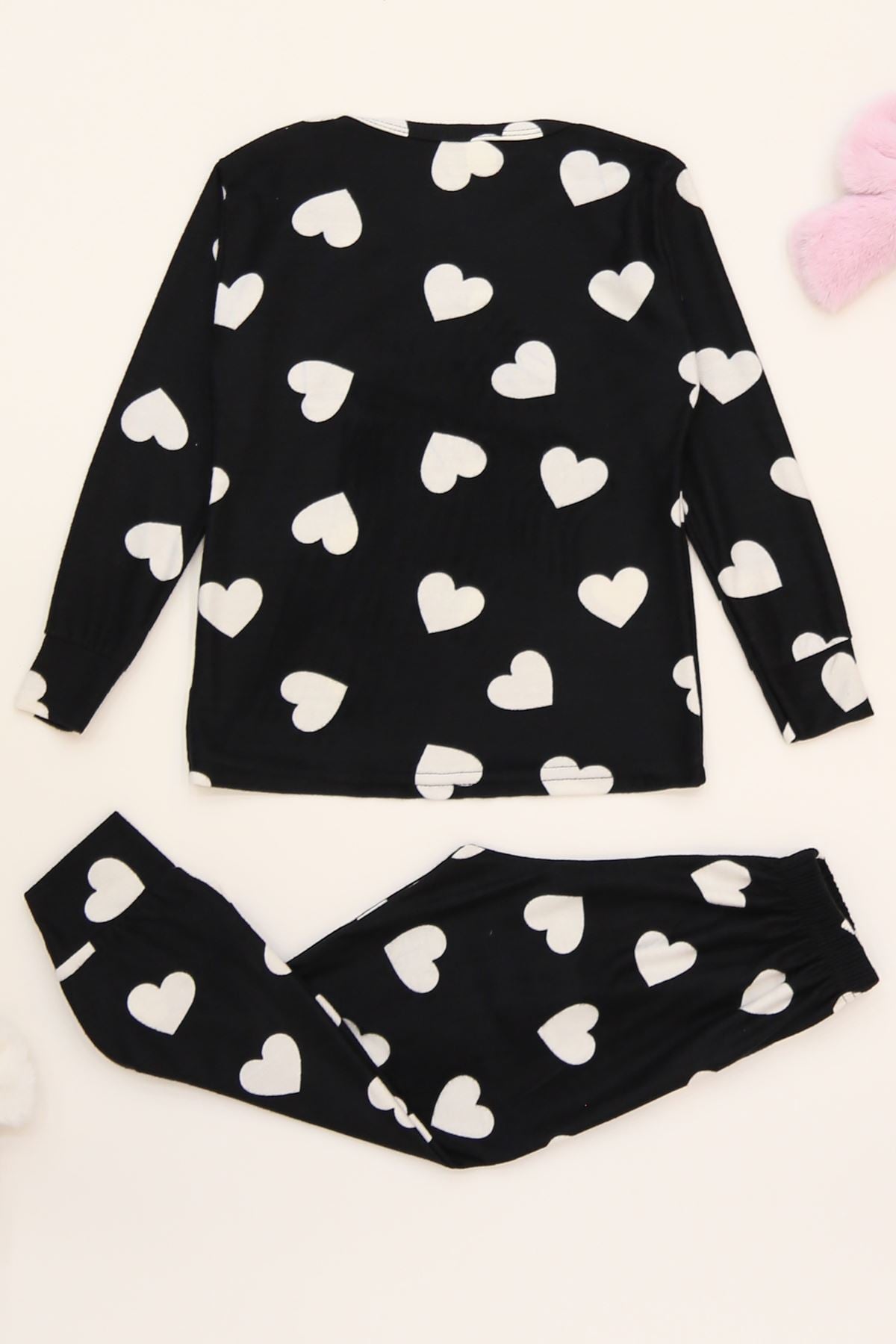 3-14 Yaş Süet Manşetli Alt Üst Aynı Takım Siyahbeyazkalp - 410.1287.