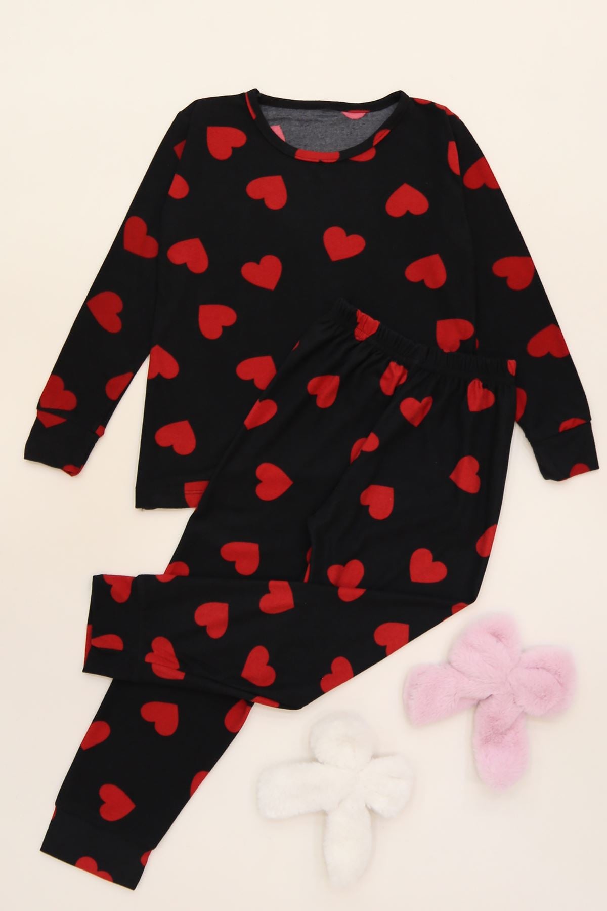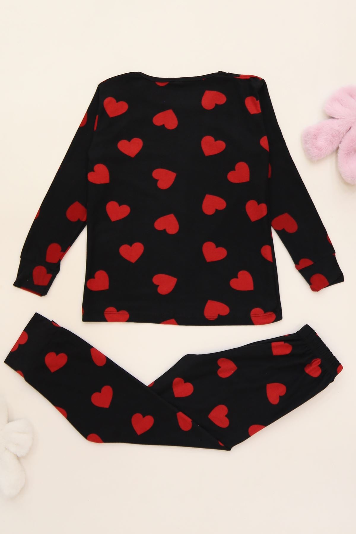 3-14 Yaş Süet Manşetli Alt Üst Aynı Takım Siyahkırmızı - 410.1287.