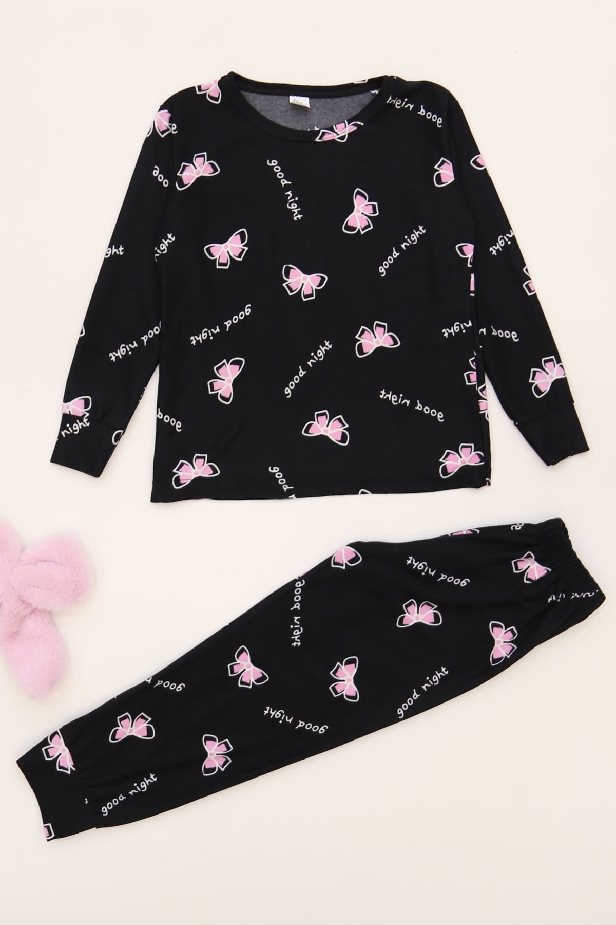 3-14 Yaş Süet Manşetli Alt Üst Aynı Takım Siyahkurdele - 410.1287.