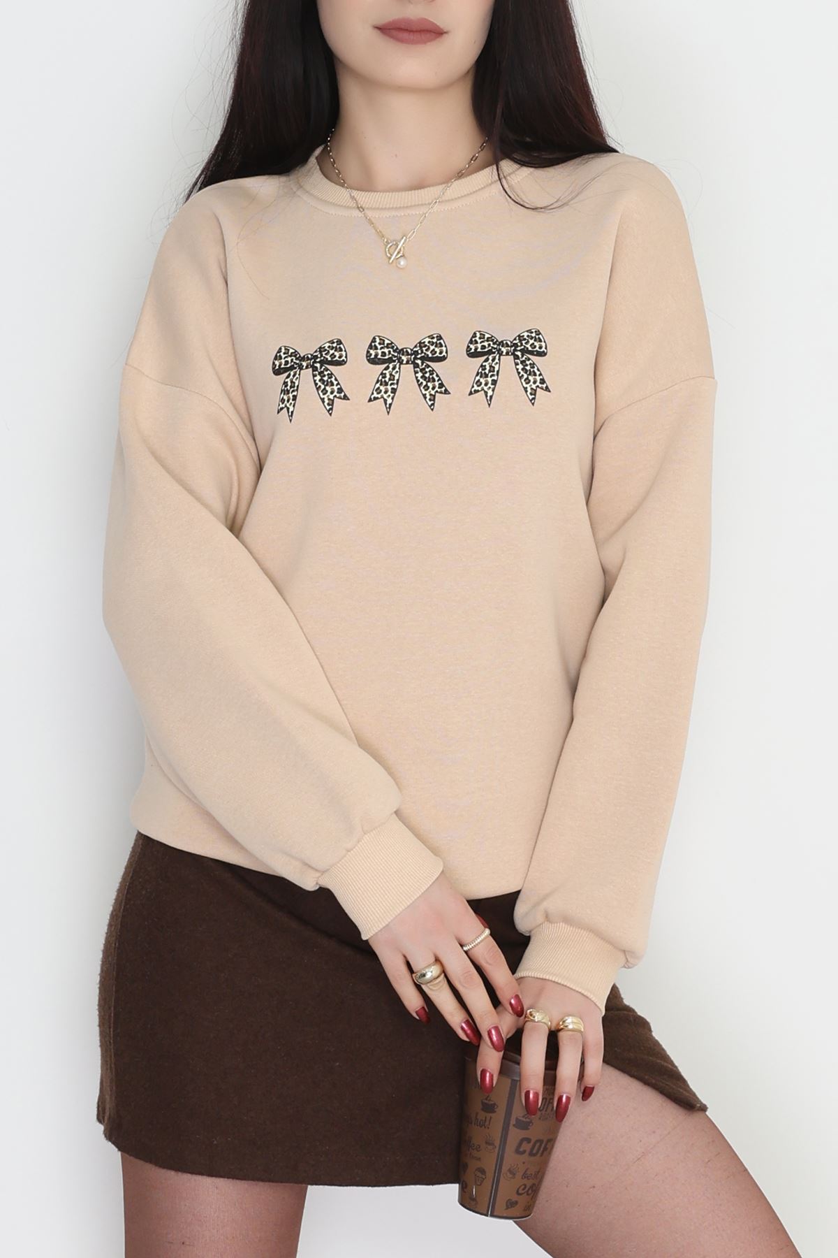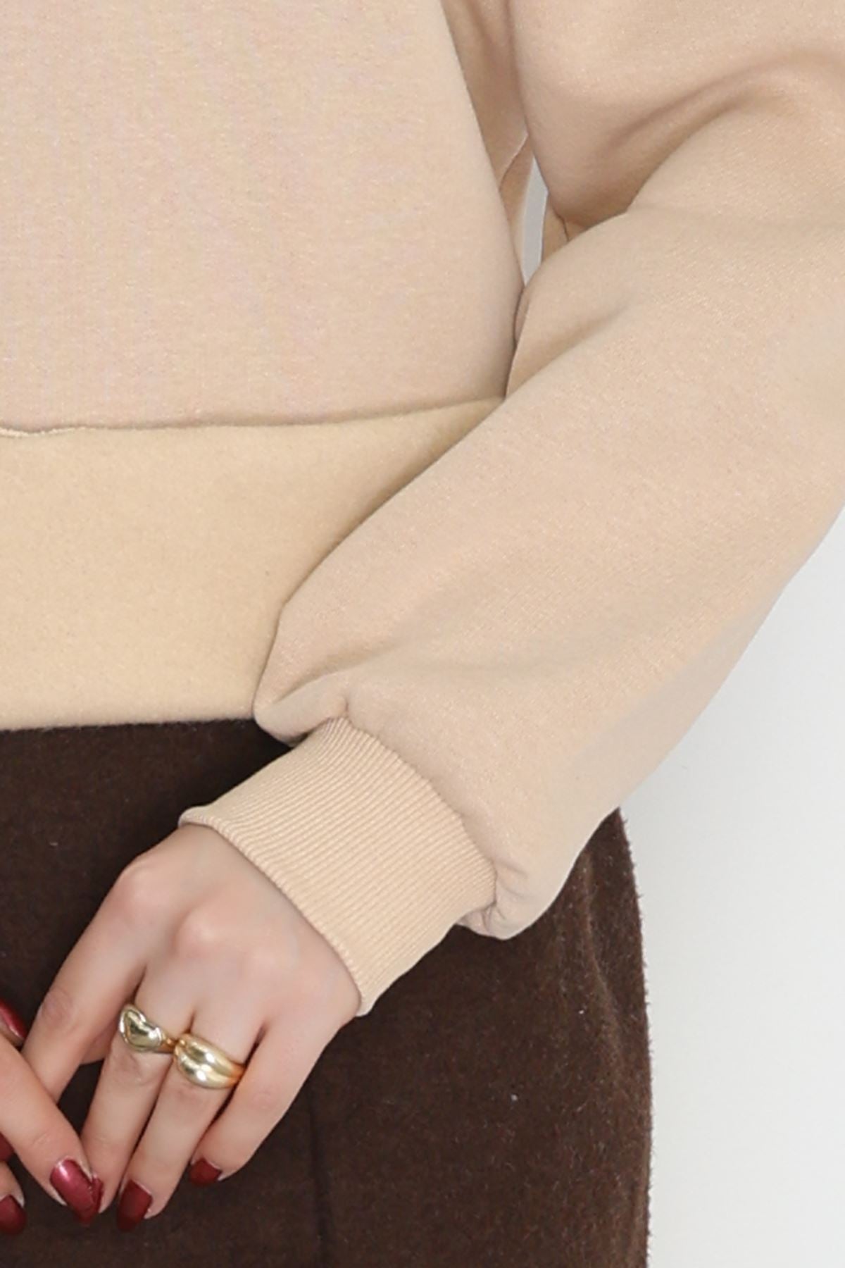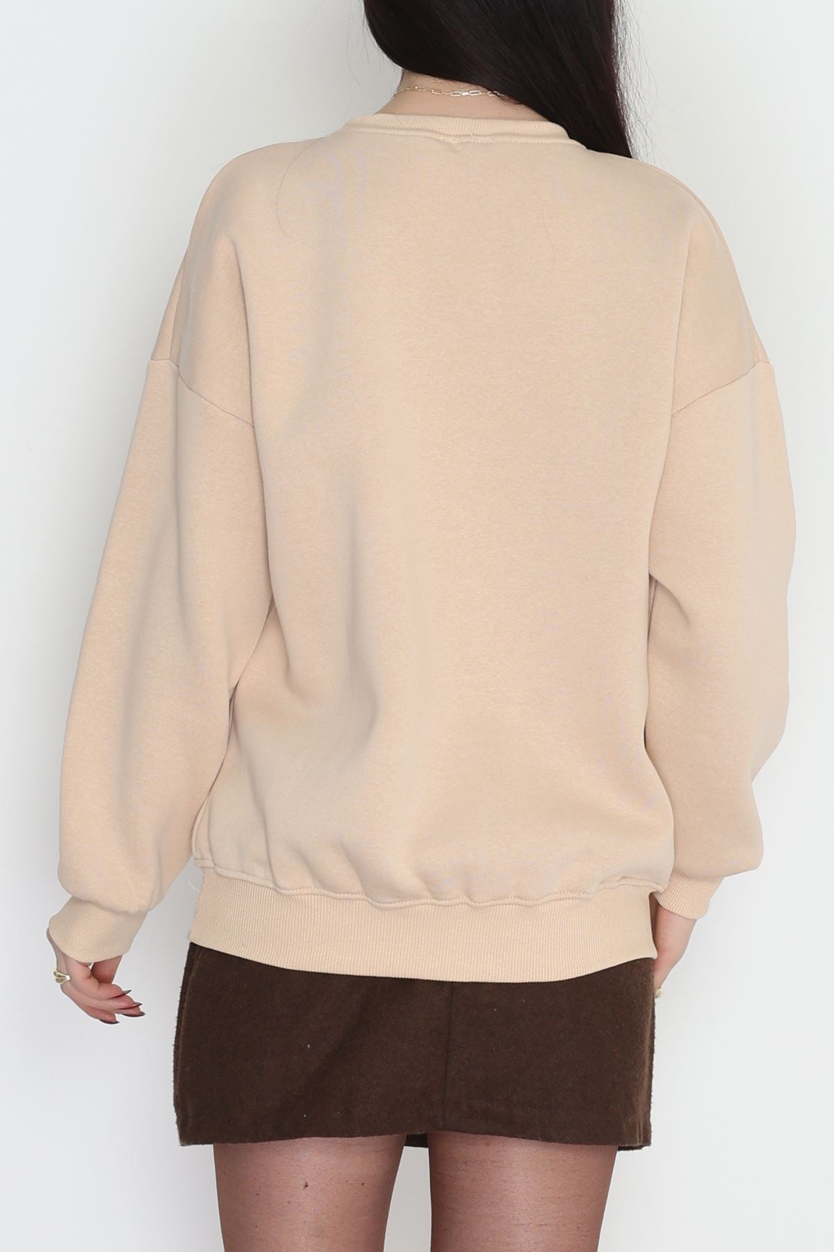 3 İplik Bisiklet Yaka Sweat Bej - 42241.1878.