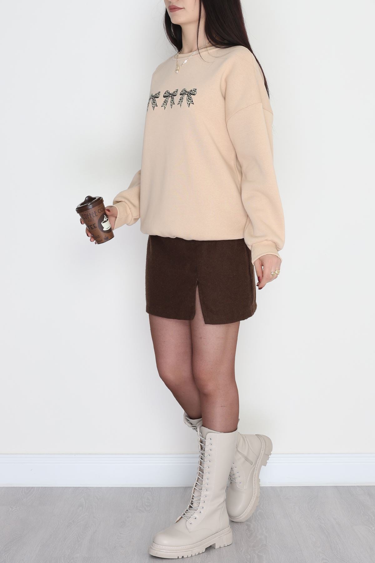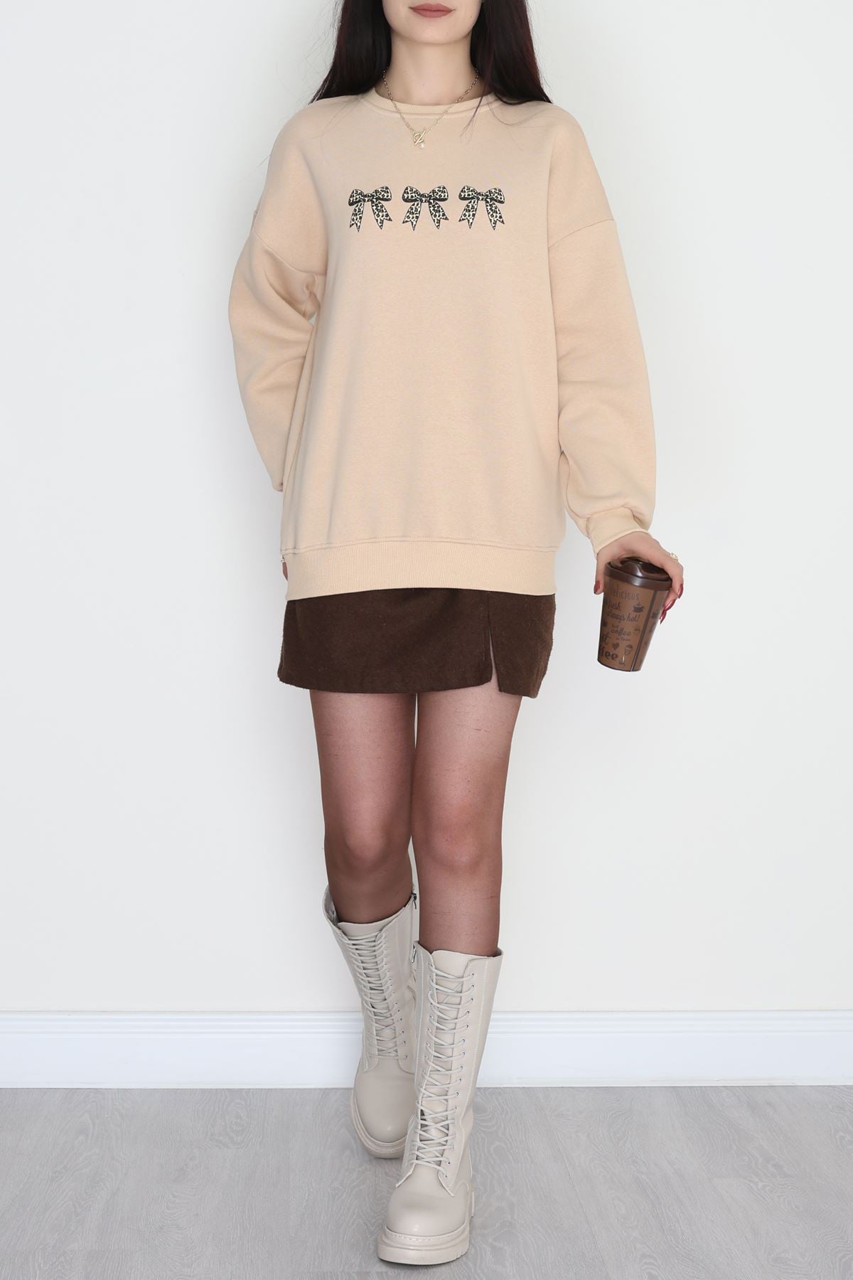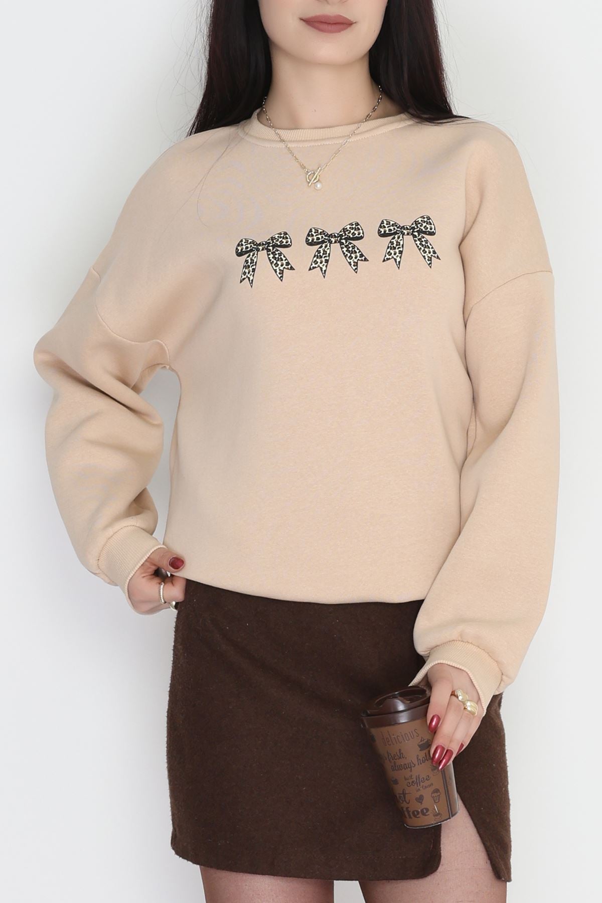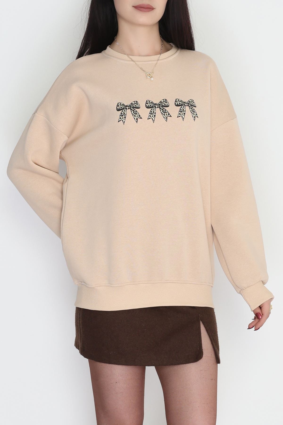 3 İplik Bisiklet Yaka Sweat Bej - 42241.1878.