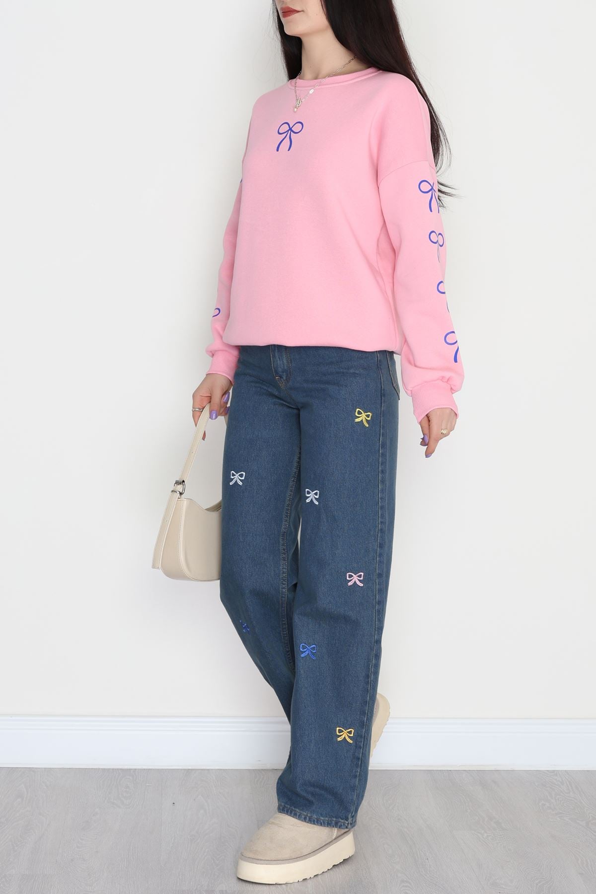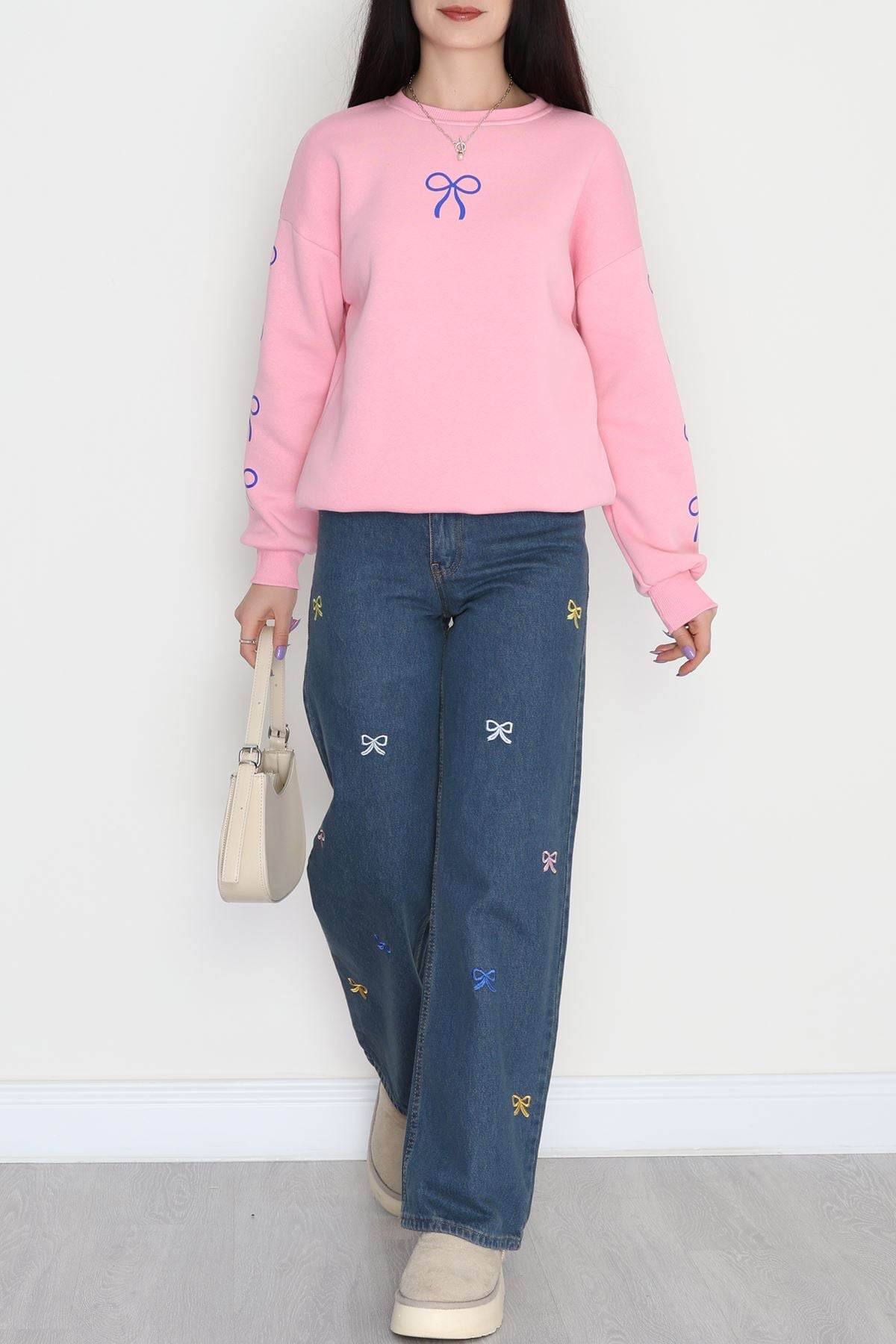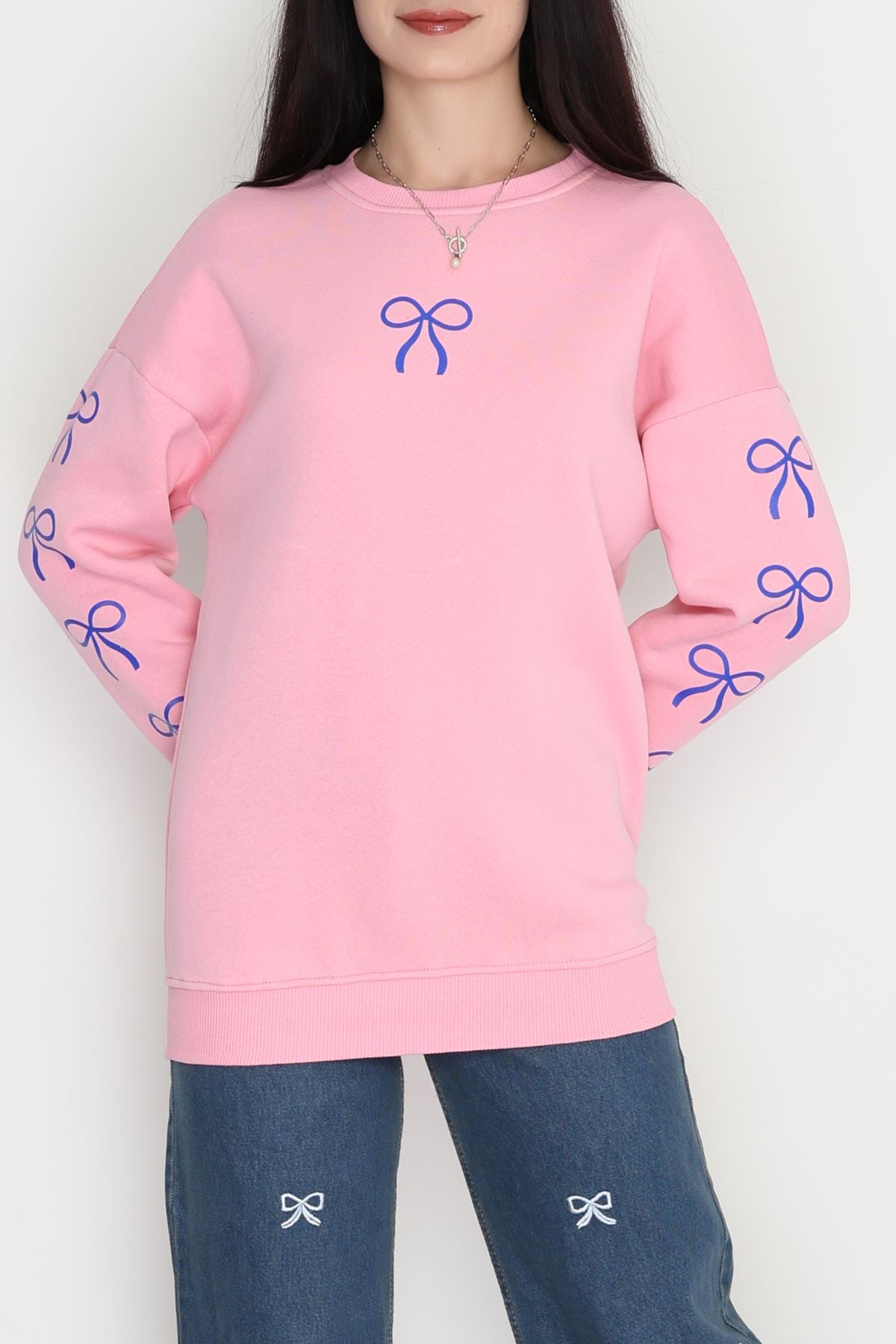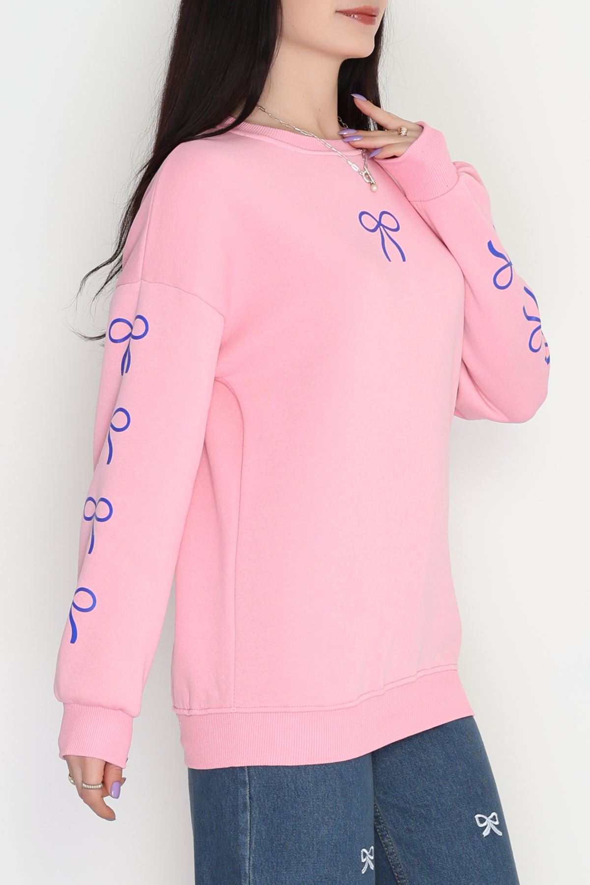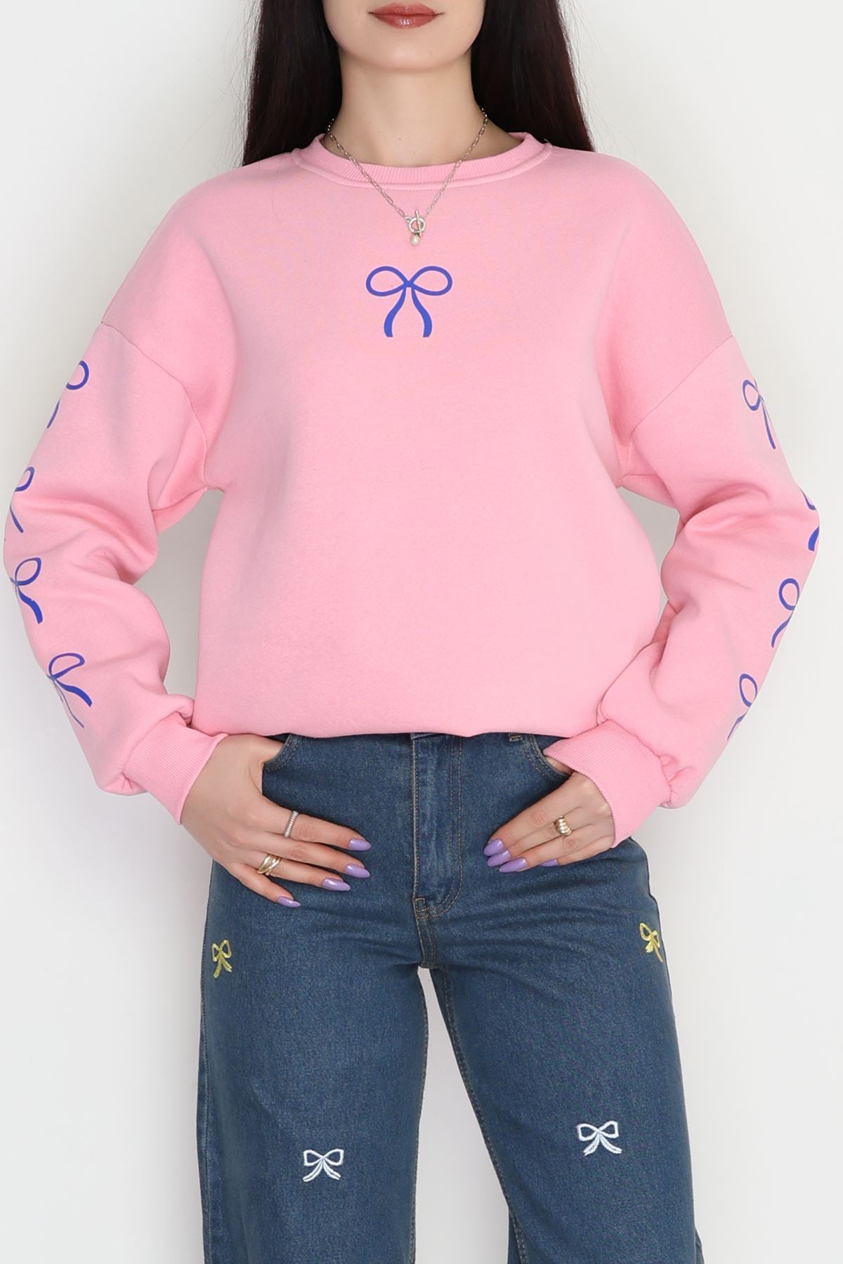 3 İplik Bisiklet Yaka Sweat Pembemavi - 42246.1878.