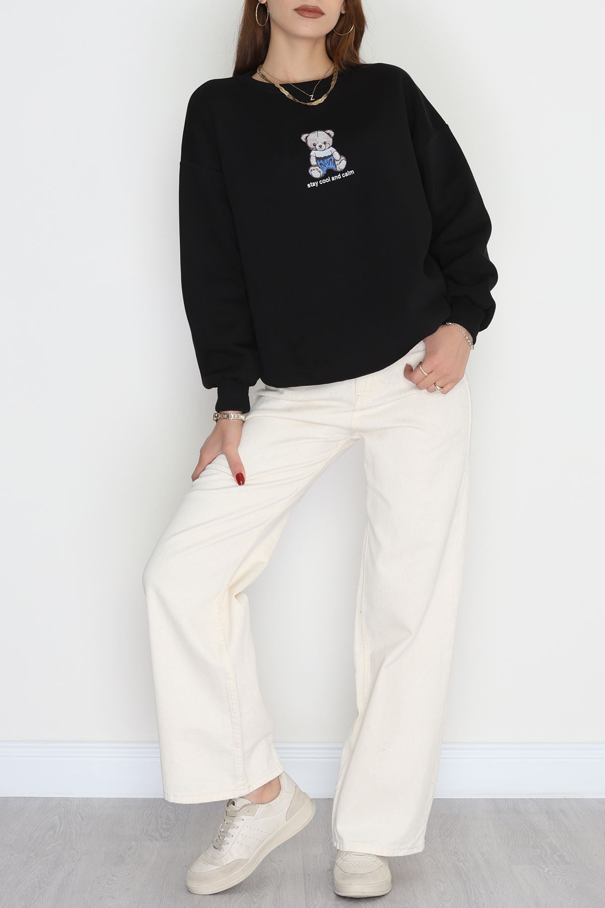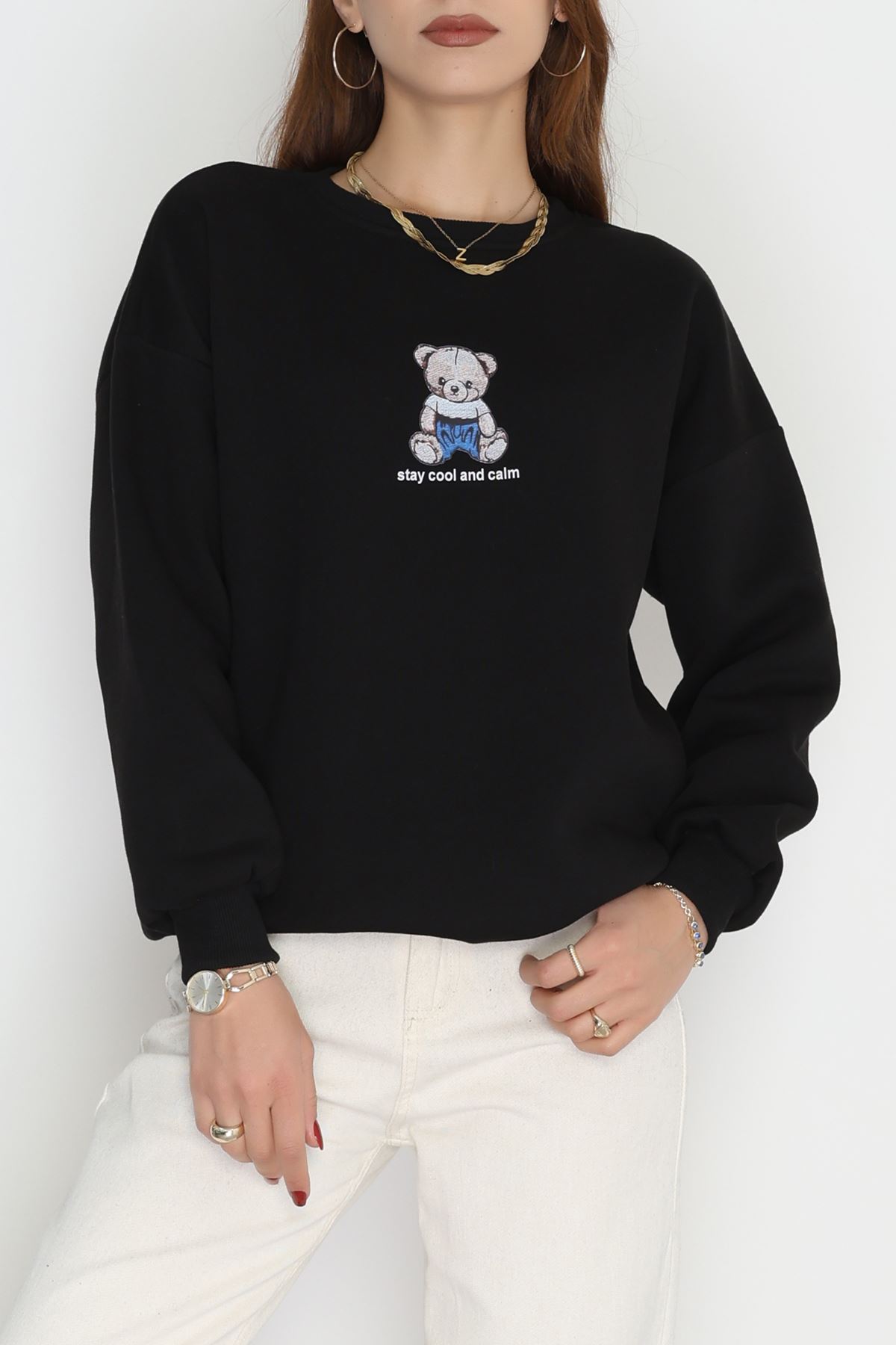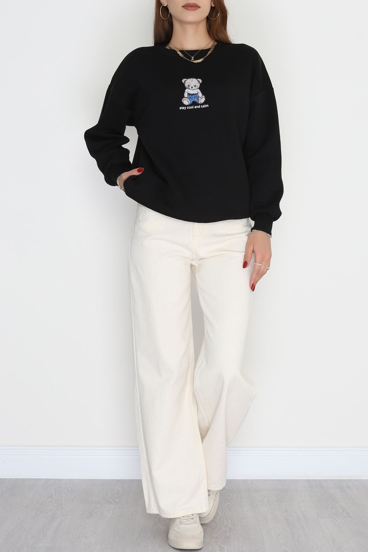 3 İplik Bisiklet Yaka Sweat Siyah - 42237.1878.