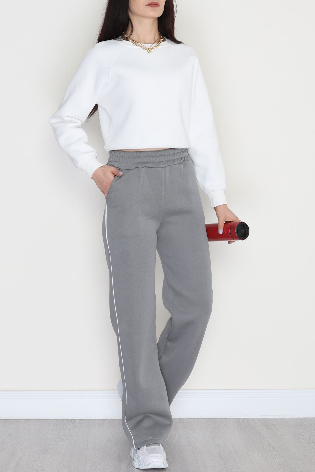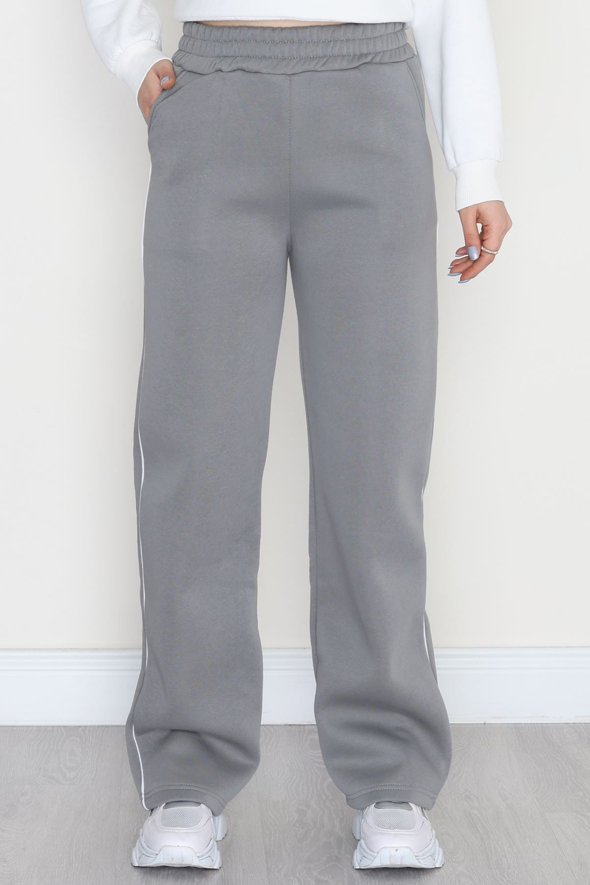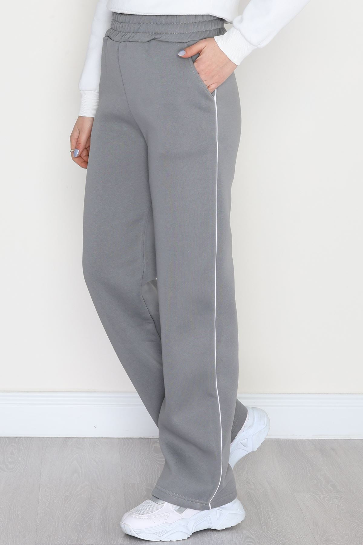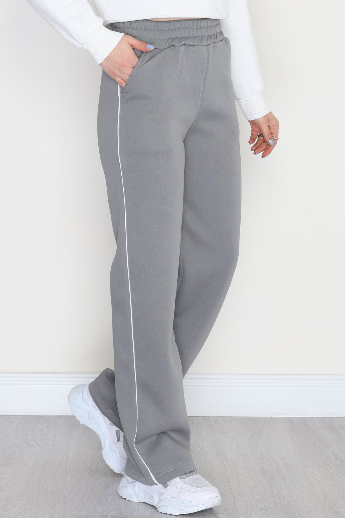 3 İplik Biyeli Palazzo Eşofman Altı Antrasit - 30104.1878.