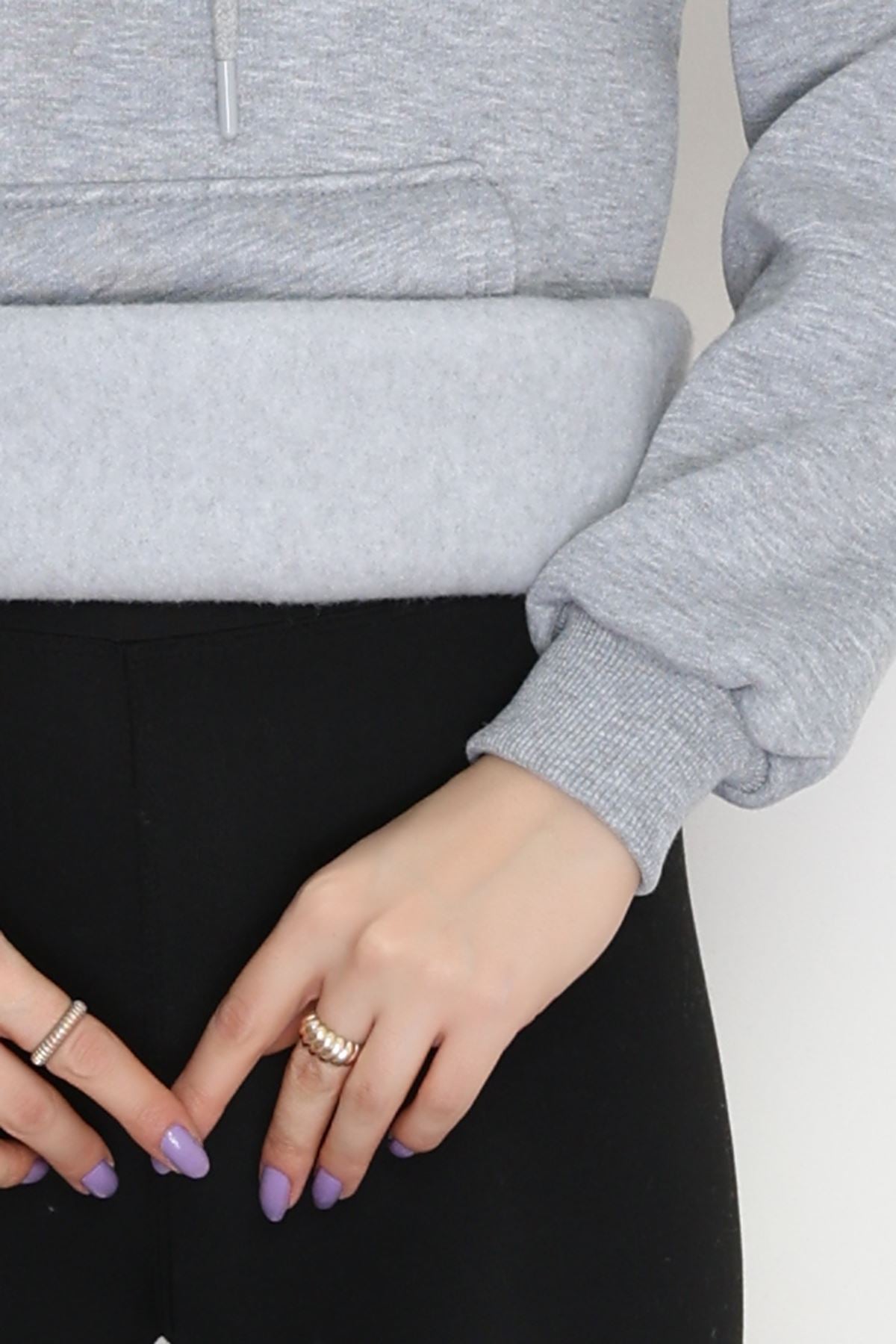 3 İplik Kanguru Cepli Kapşonlu Sweat Gri - 42257.1878.