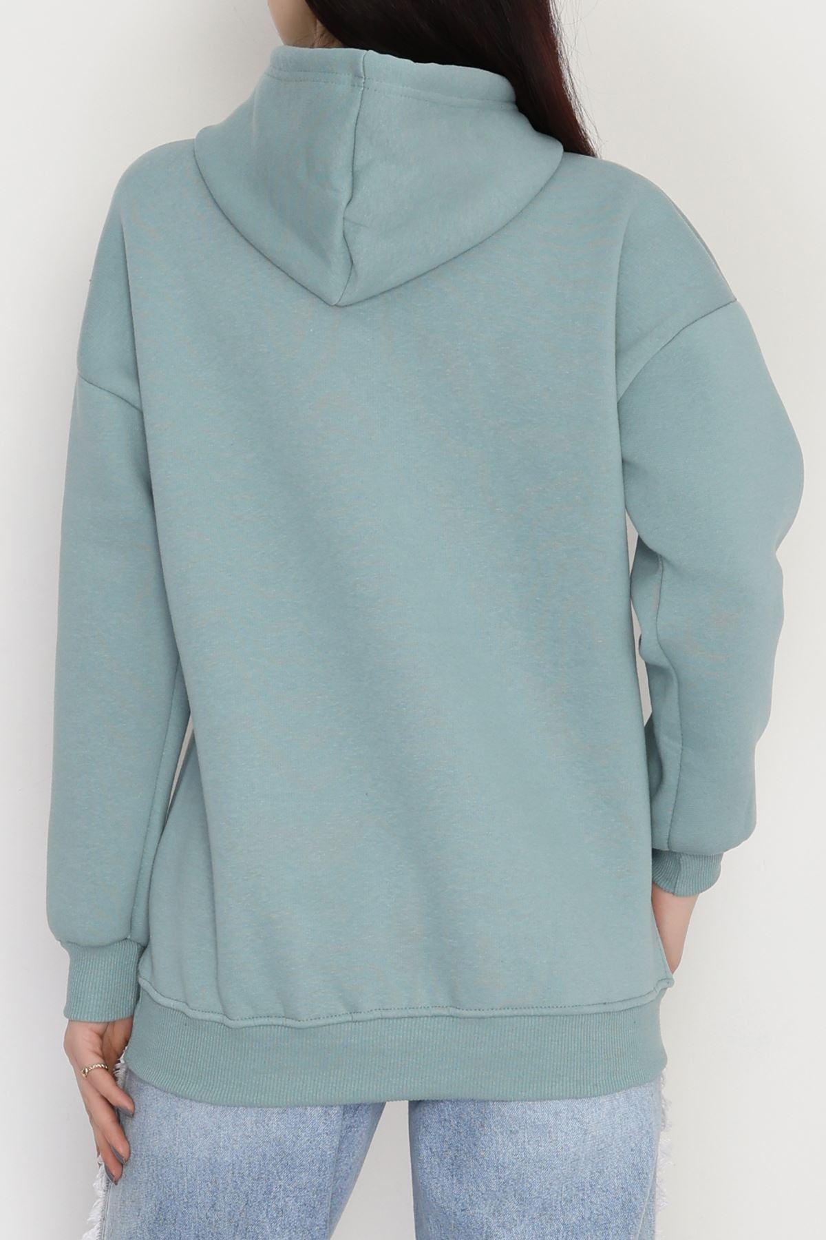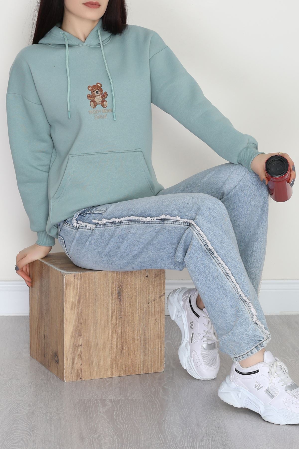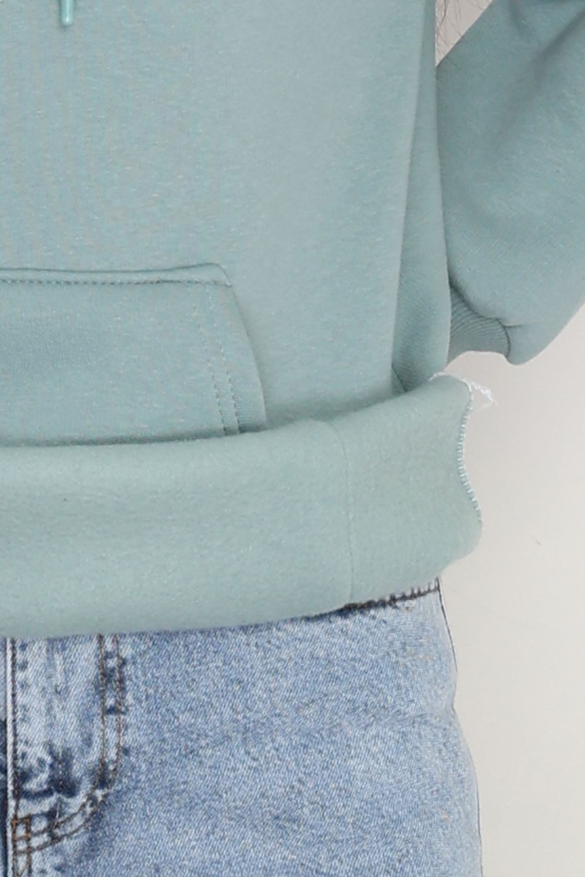 3 İplik Kanguru Cepli Kapşonlu Sweat Mint - 42254.1878.