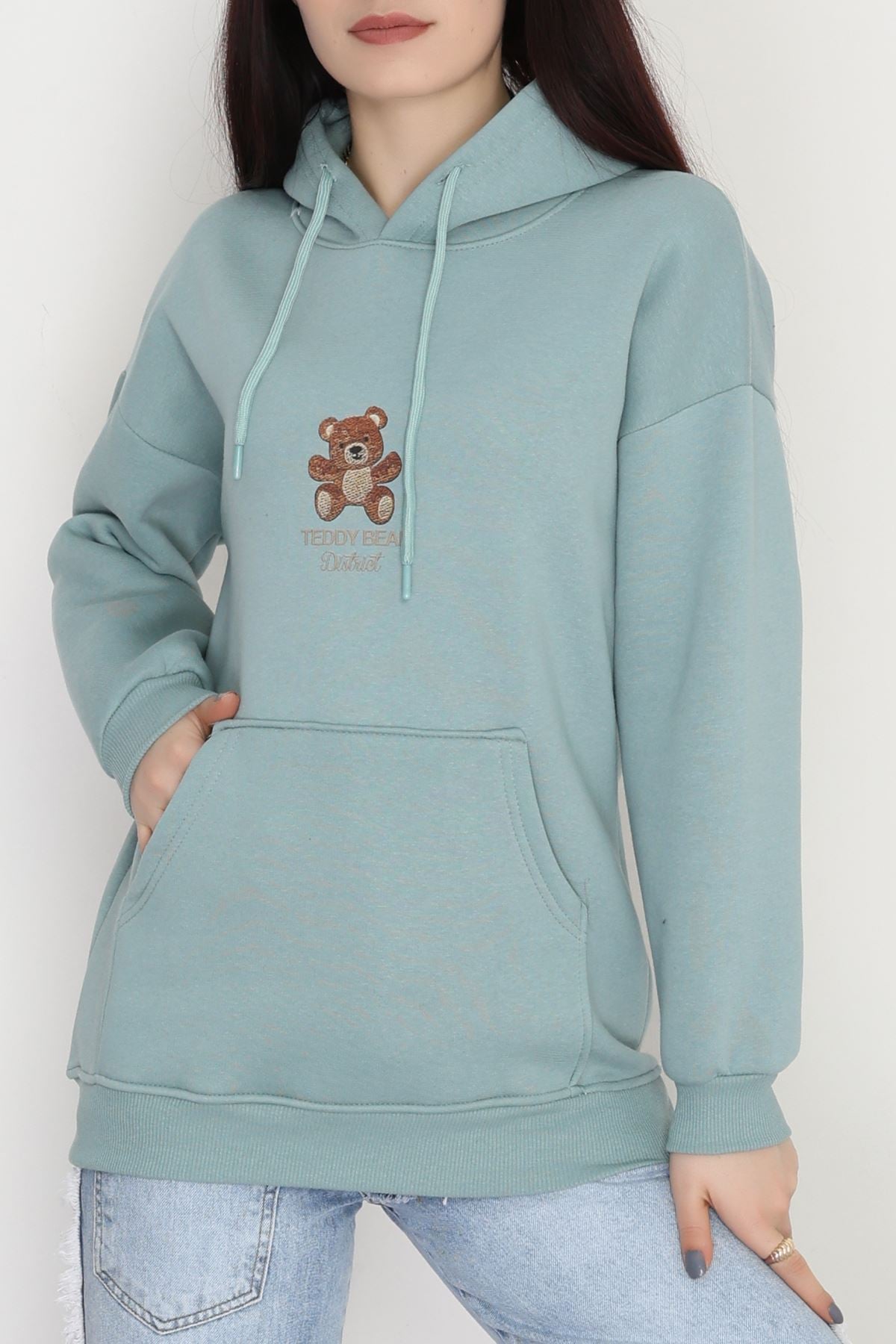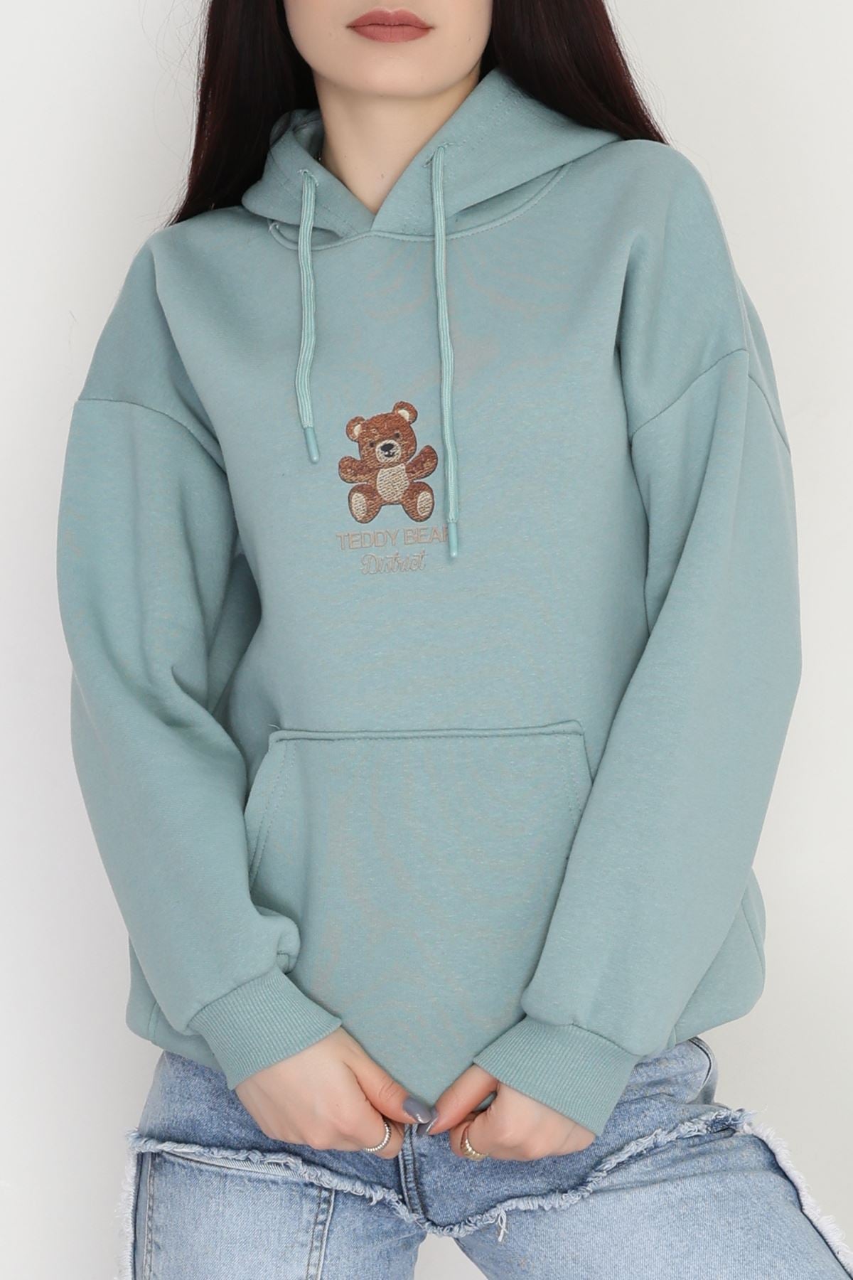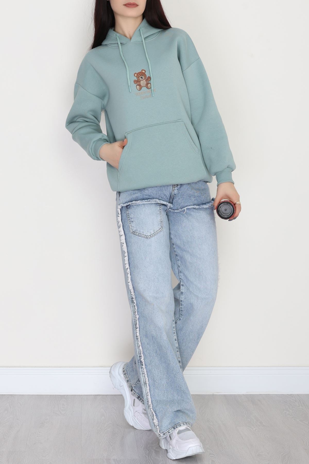 3 İplik Kanguru Cepli Kapşonlu Sweat Mint - 42254.1878.