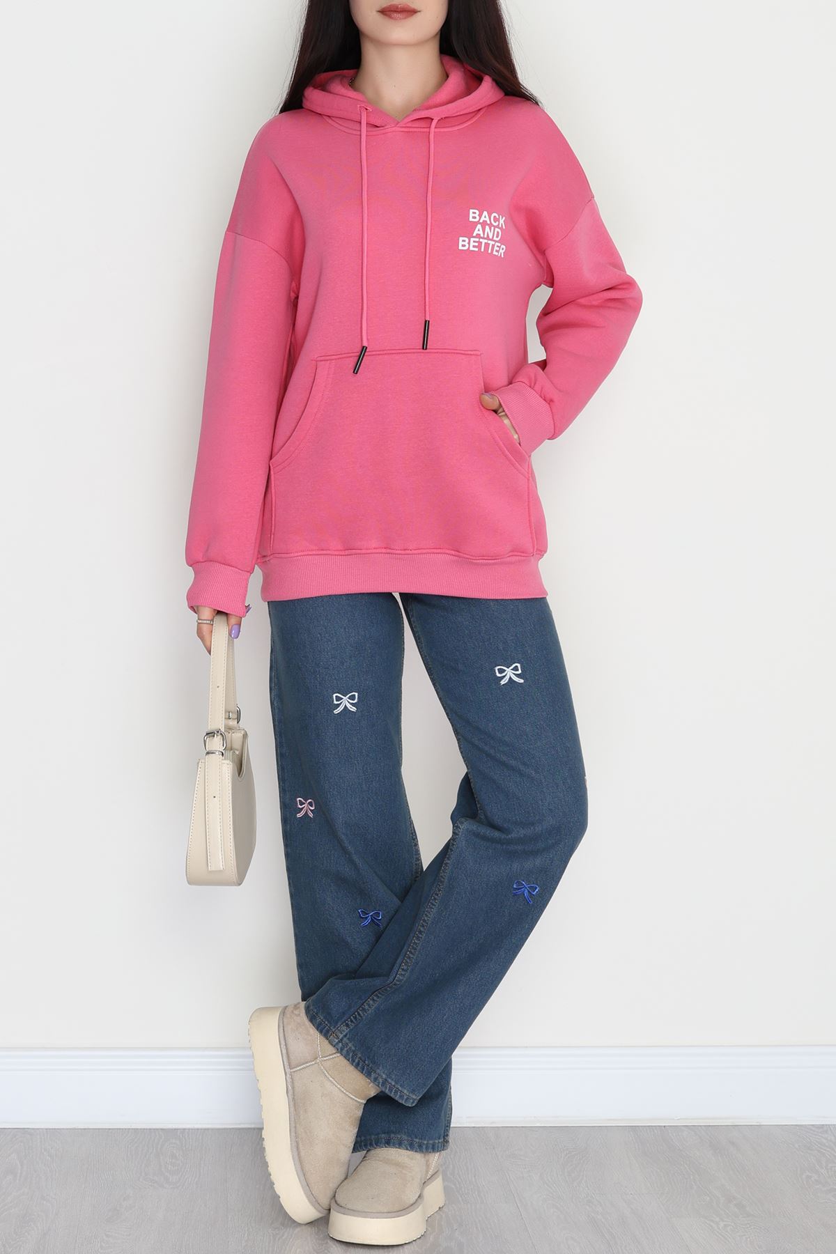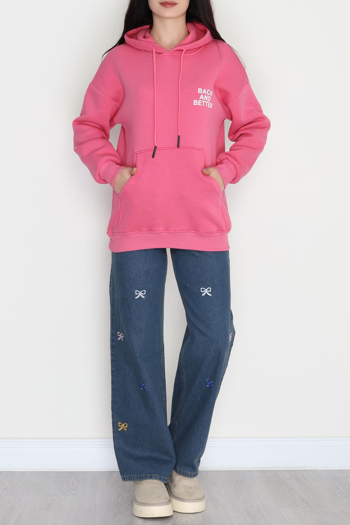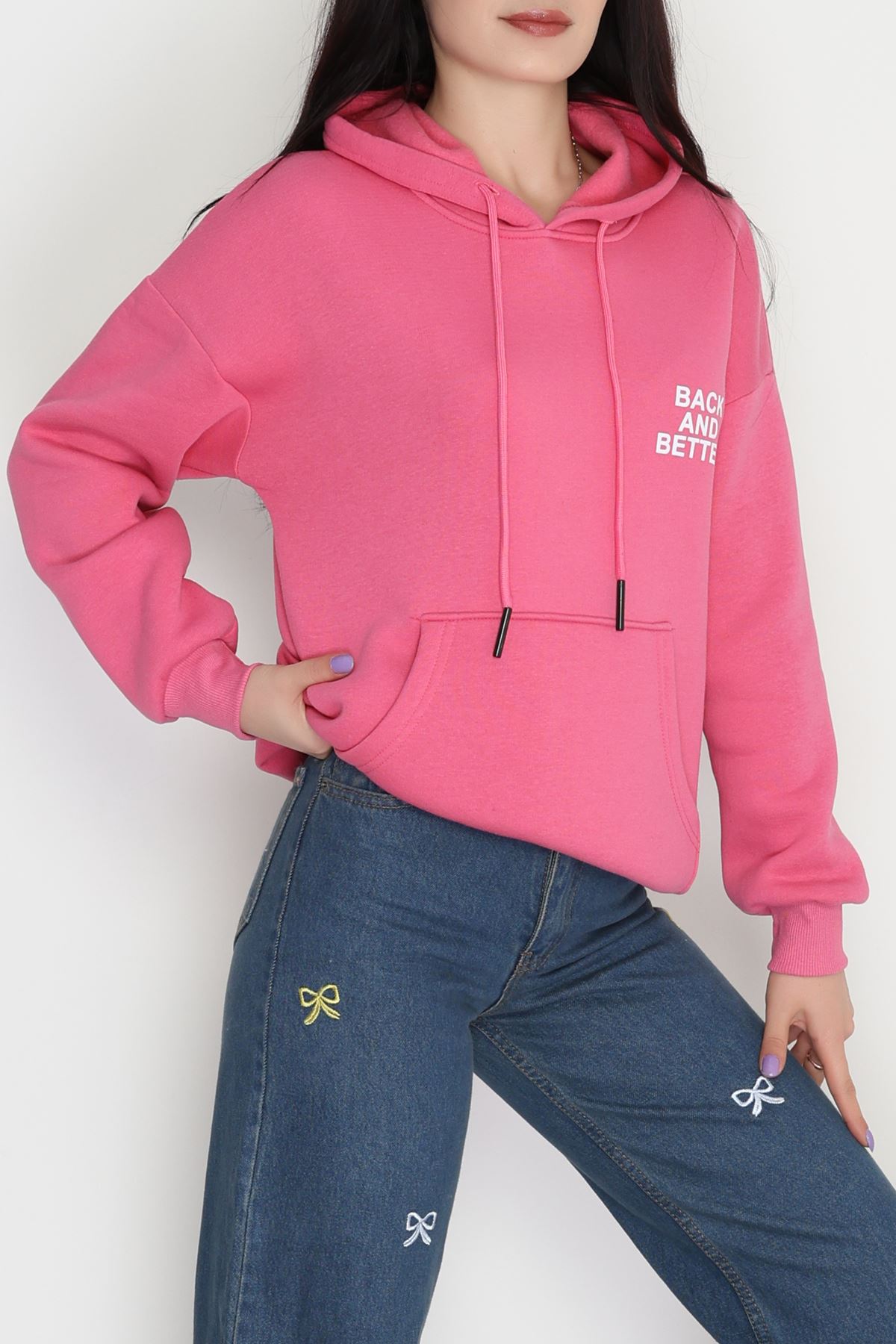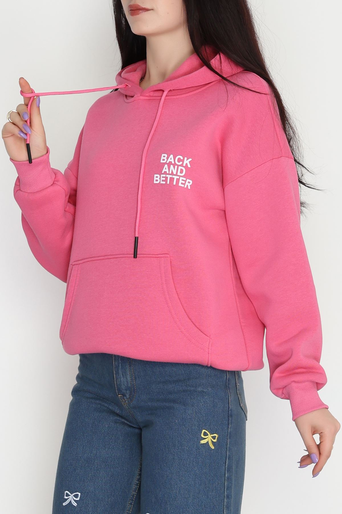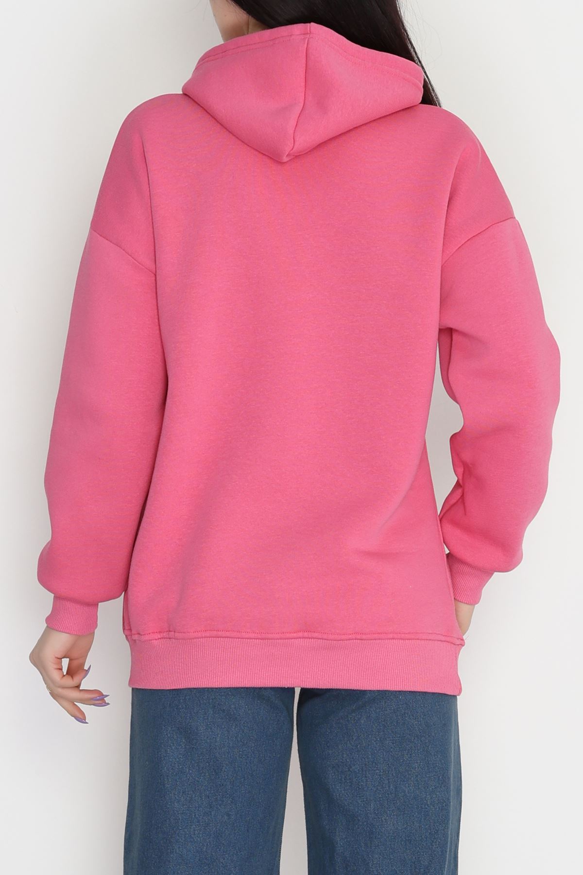 3 İplik Kanguru Cepli Kapşonlu Sweat Pembe - 42257.1878.