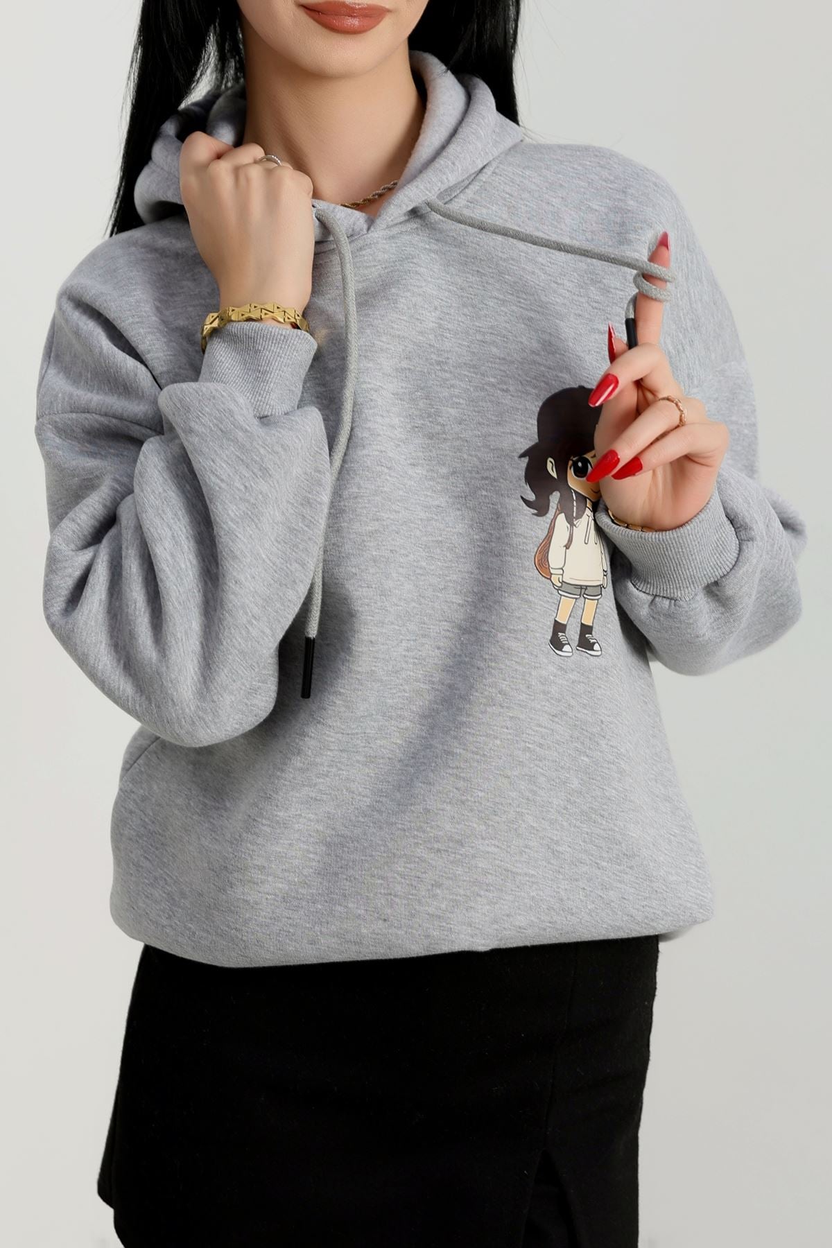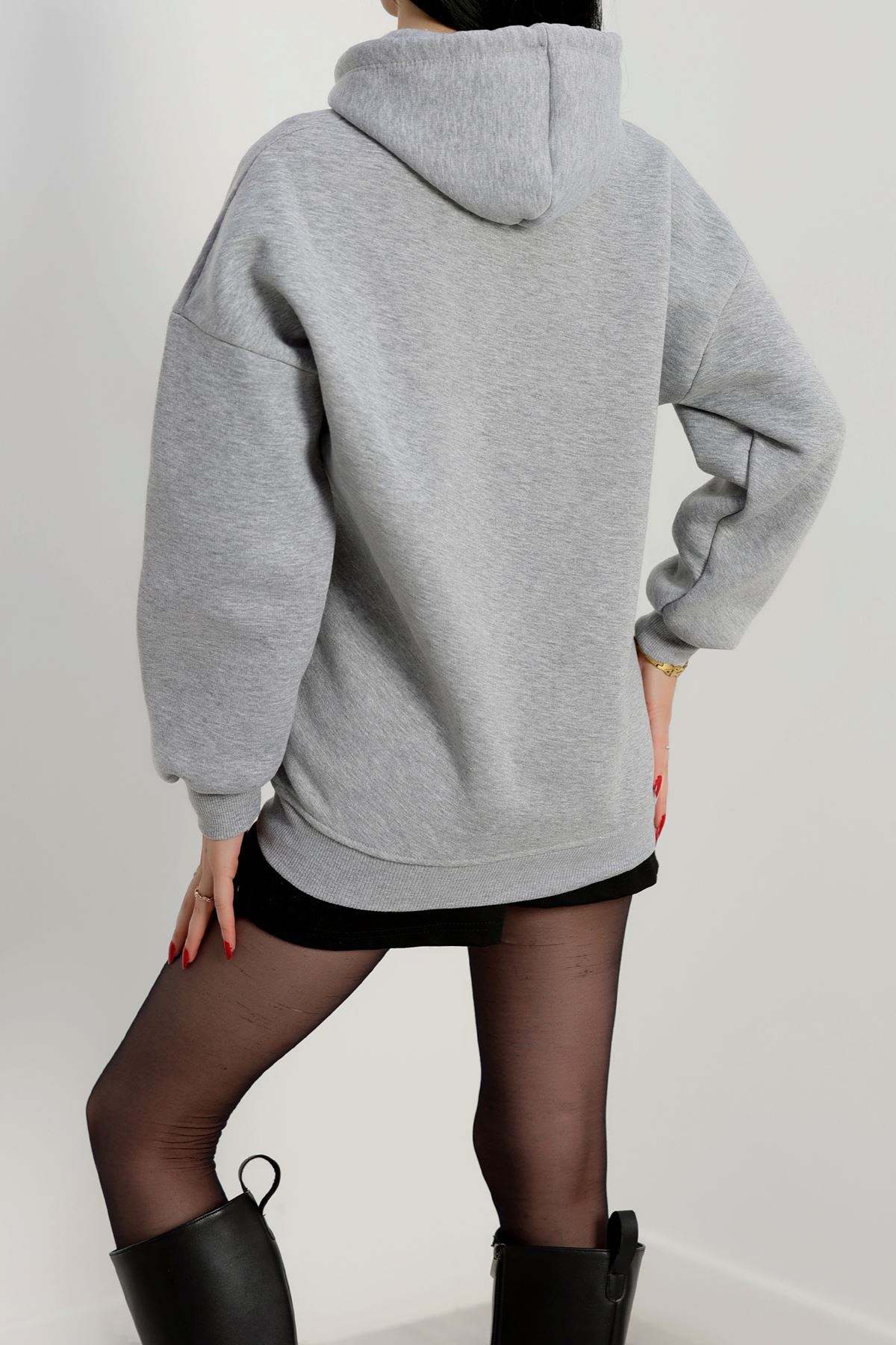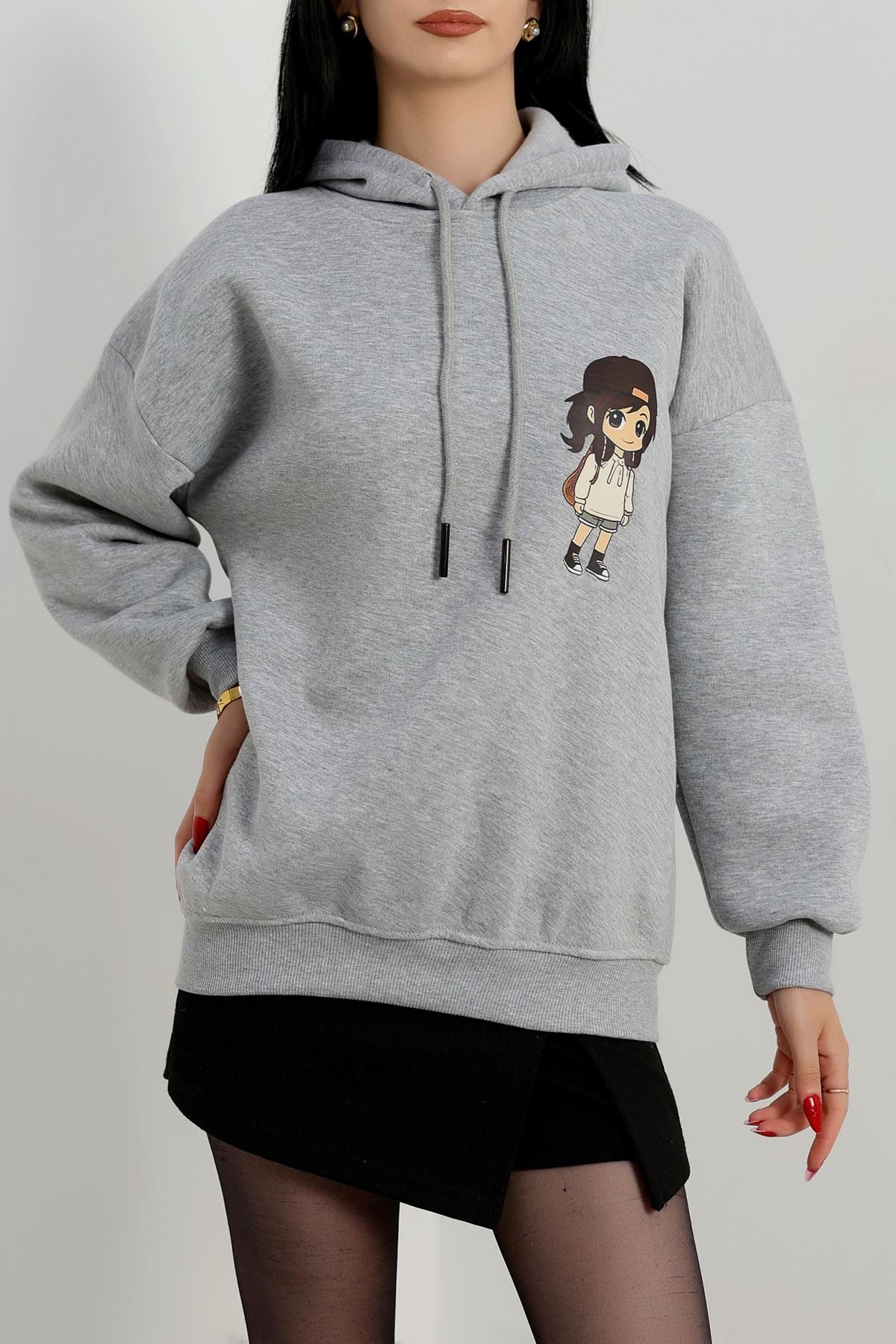 3 İplik Kapşonlu Baskılı Sweat Gri - 42222.1878.