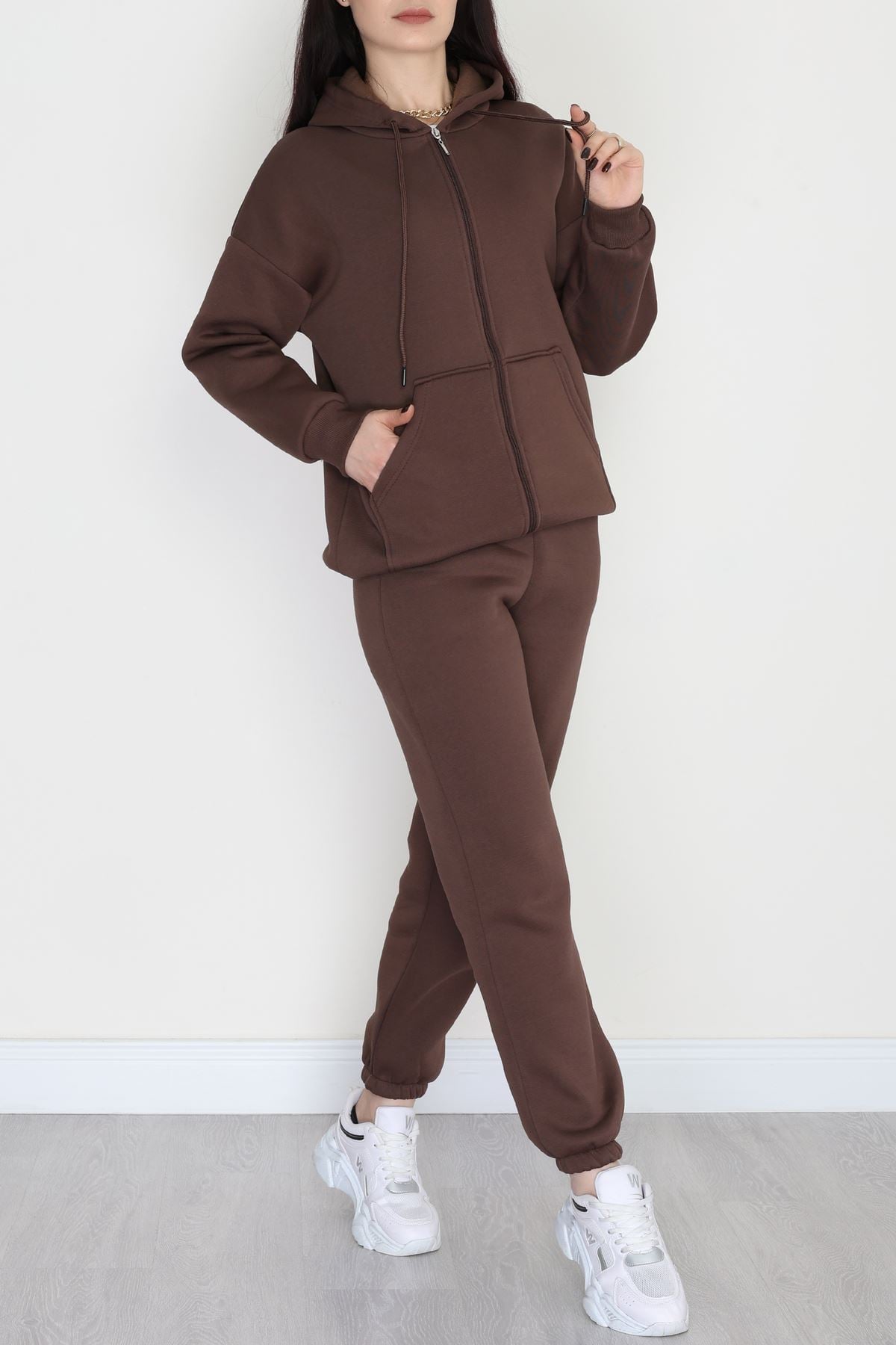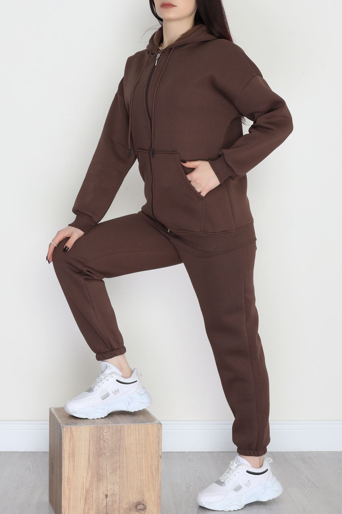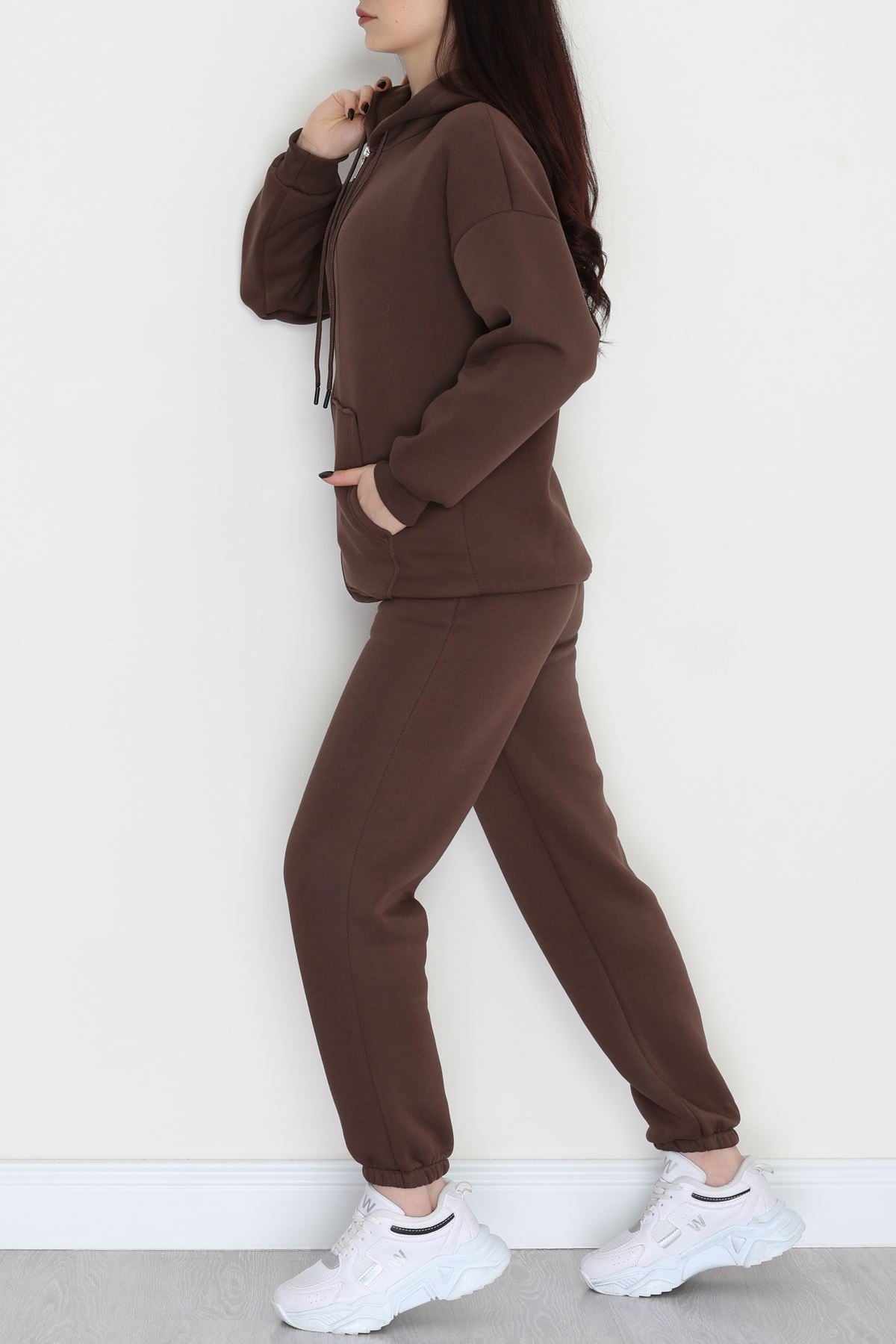 3 İplik Kapşonlu Eşofman Takımı Acıkahve - 20255.1878.
