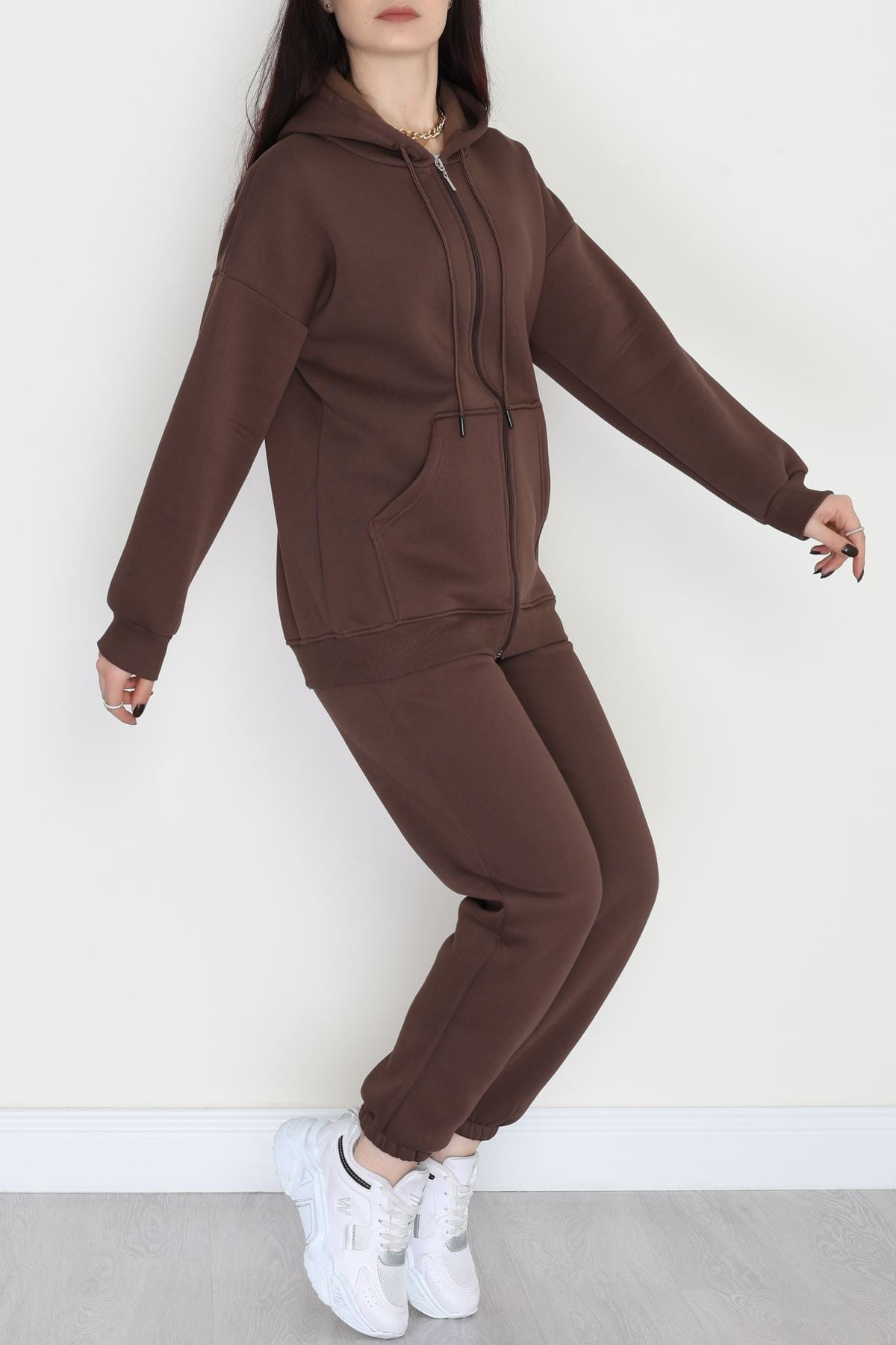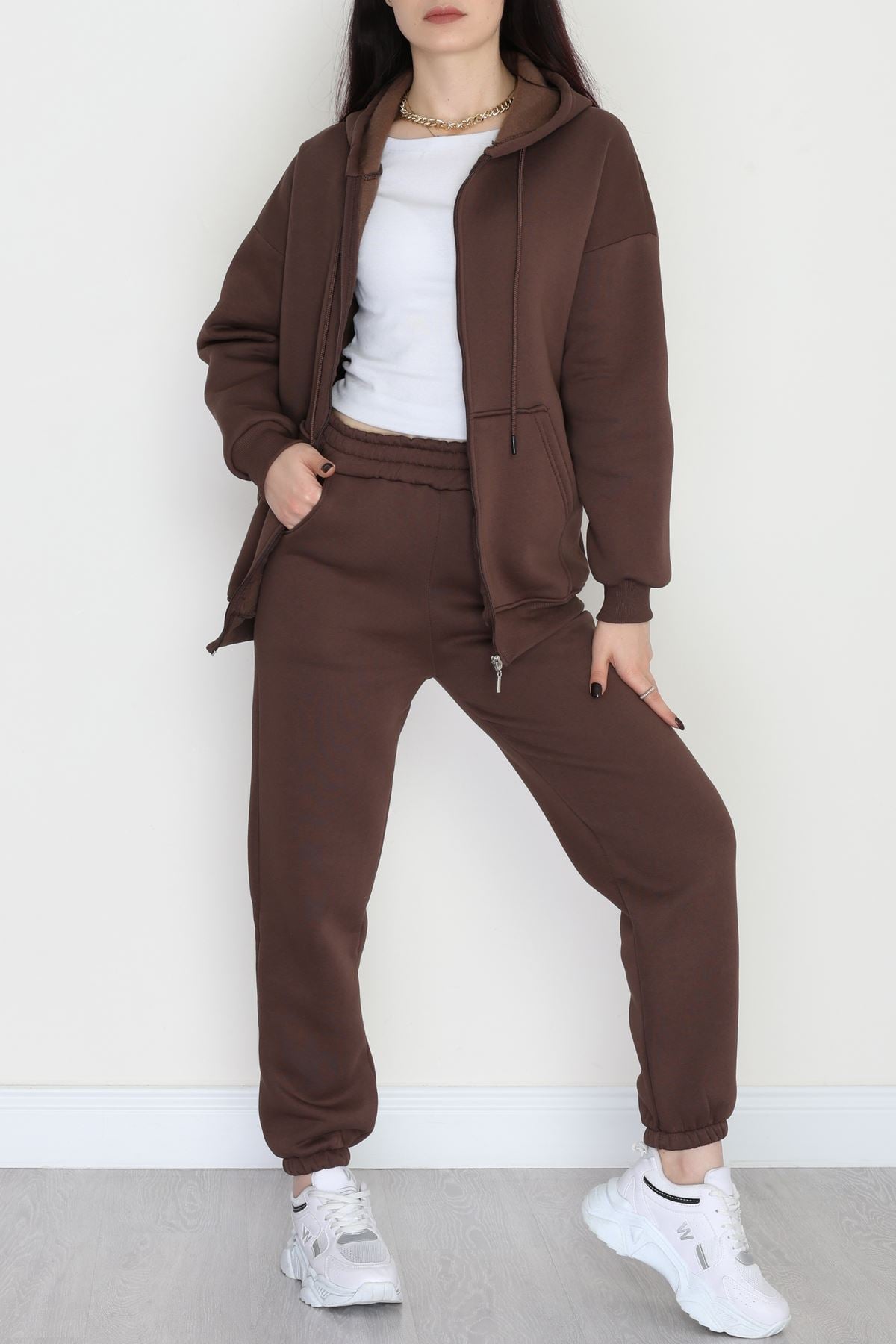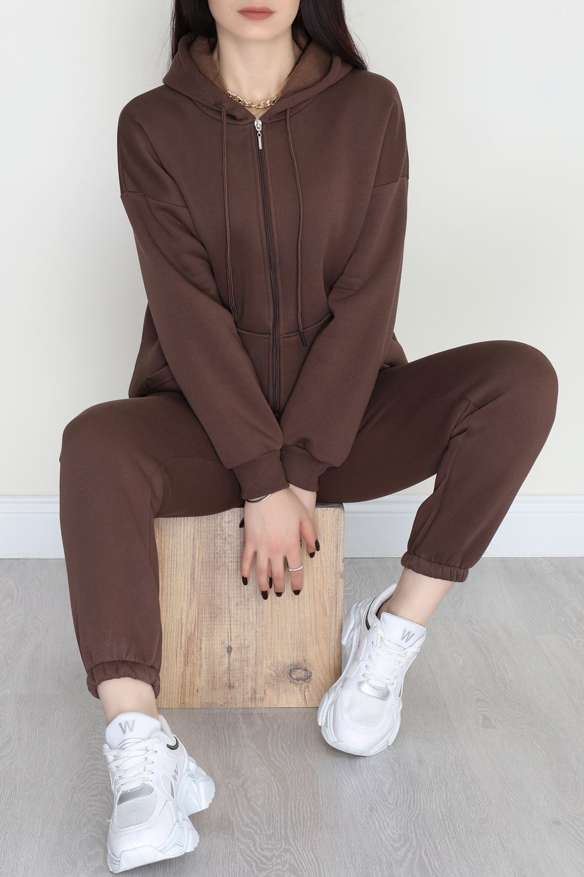 3 İplik Kapşonlu Eşofman Takımı Acıkahve - 20255.1878.