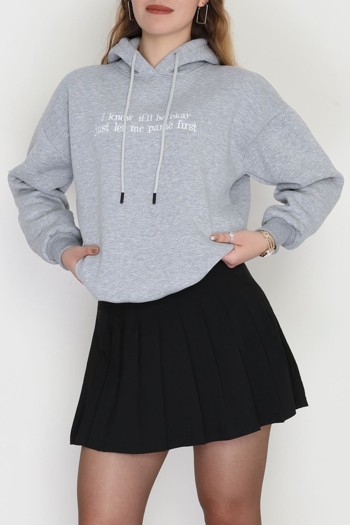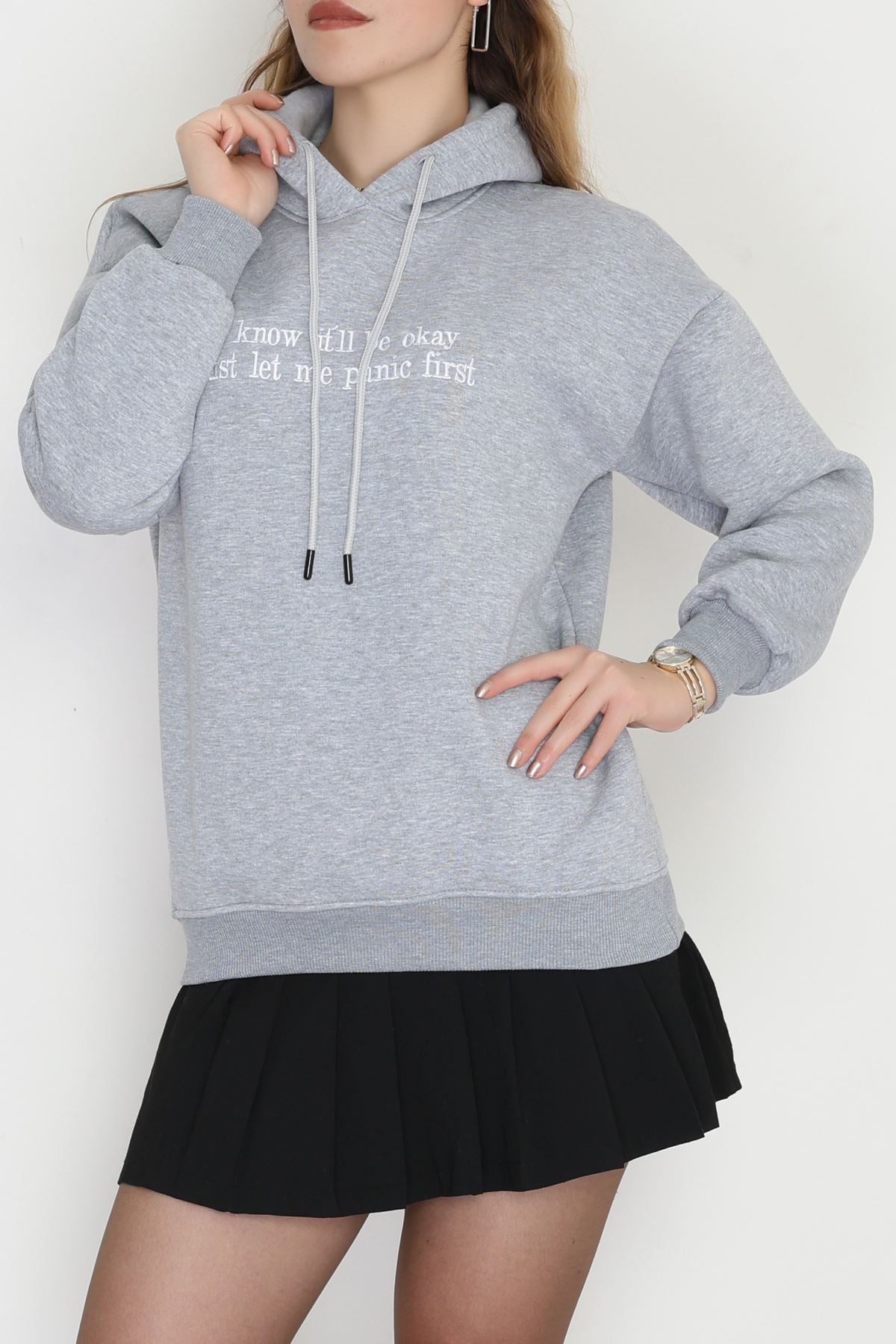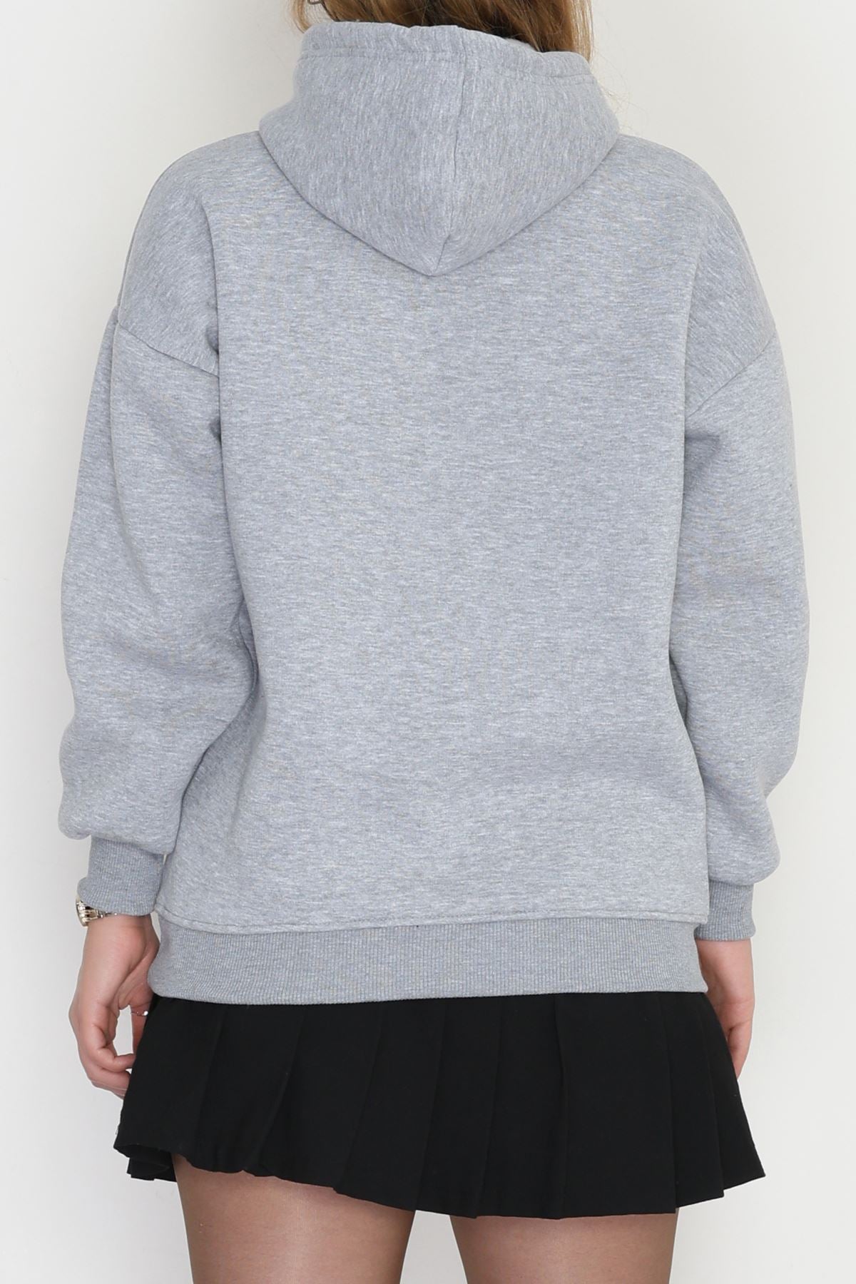 3 İplik Kapşonlu Nakışlı Sweat Gribeyaz - 42231.1878.