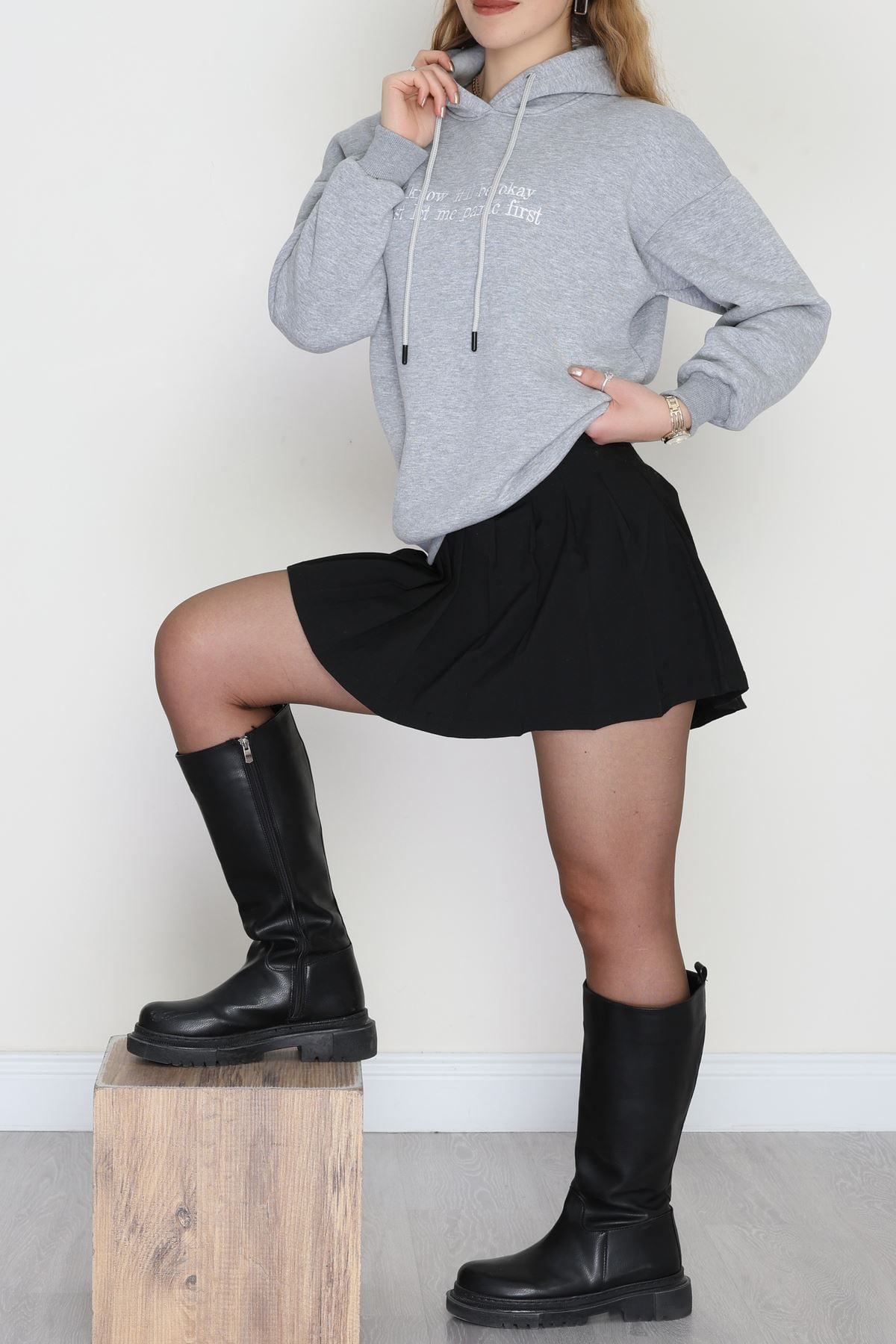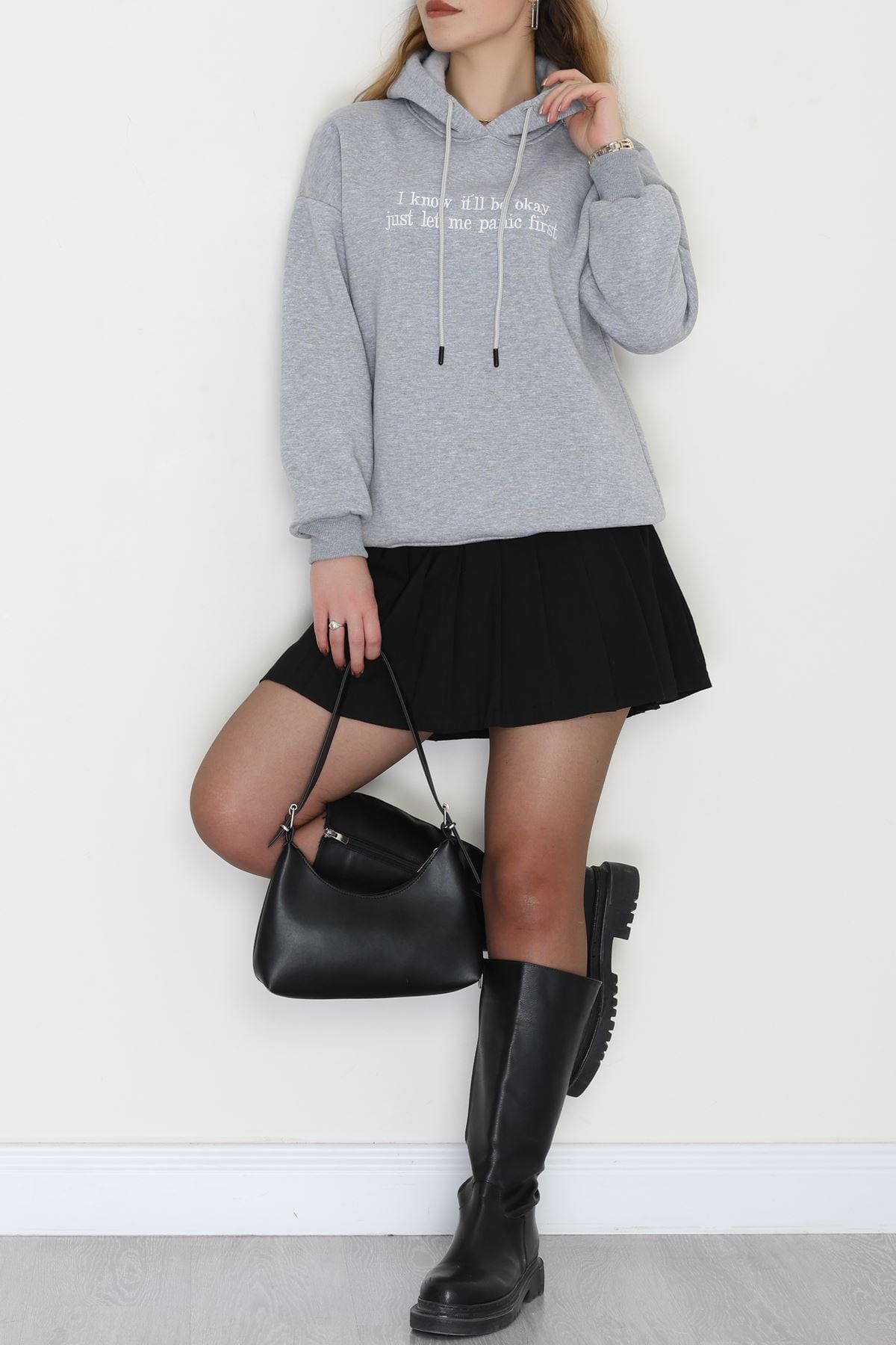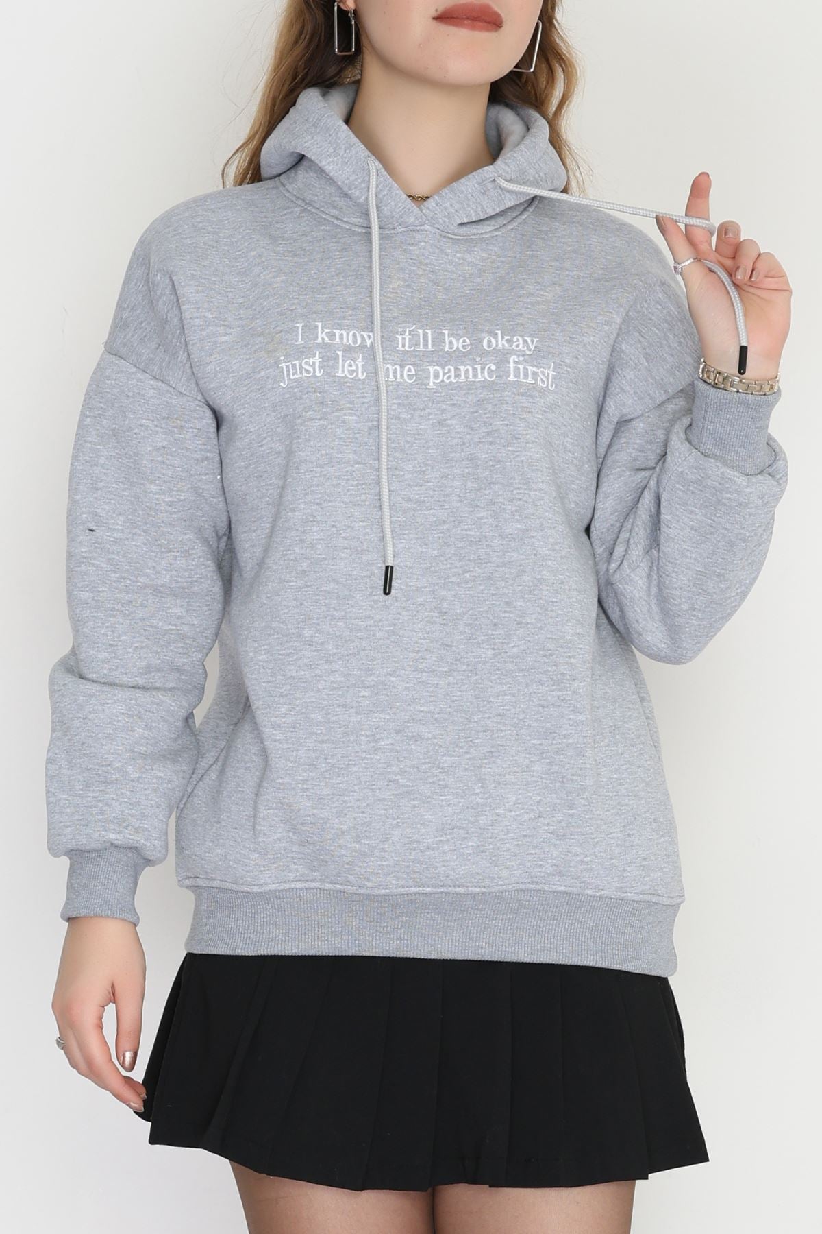 3 İplik Kapşonlu Nakışlı Sweat Gribeyaz - 42231.1878.