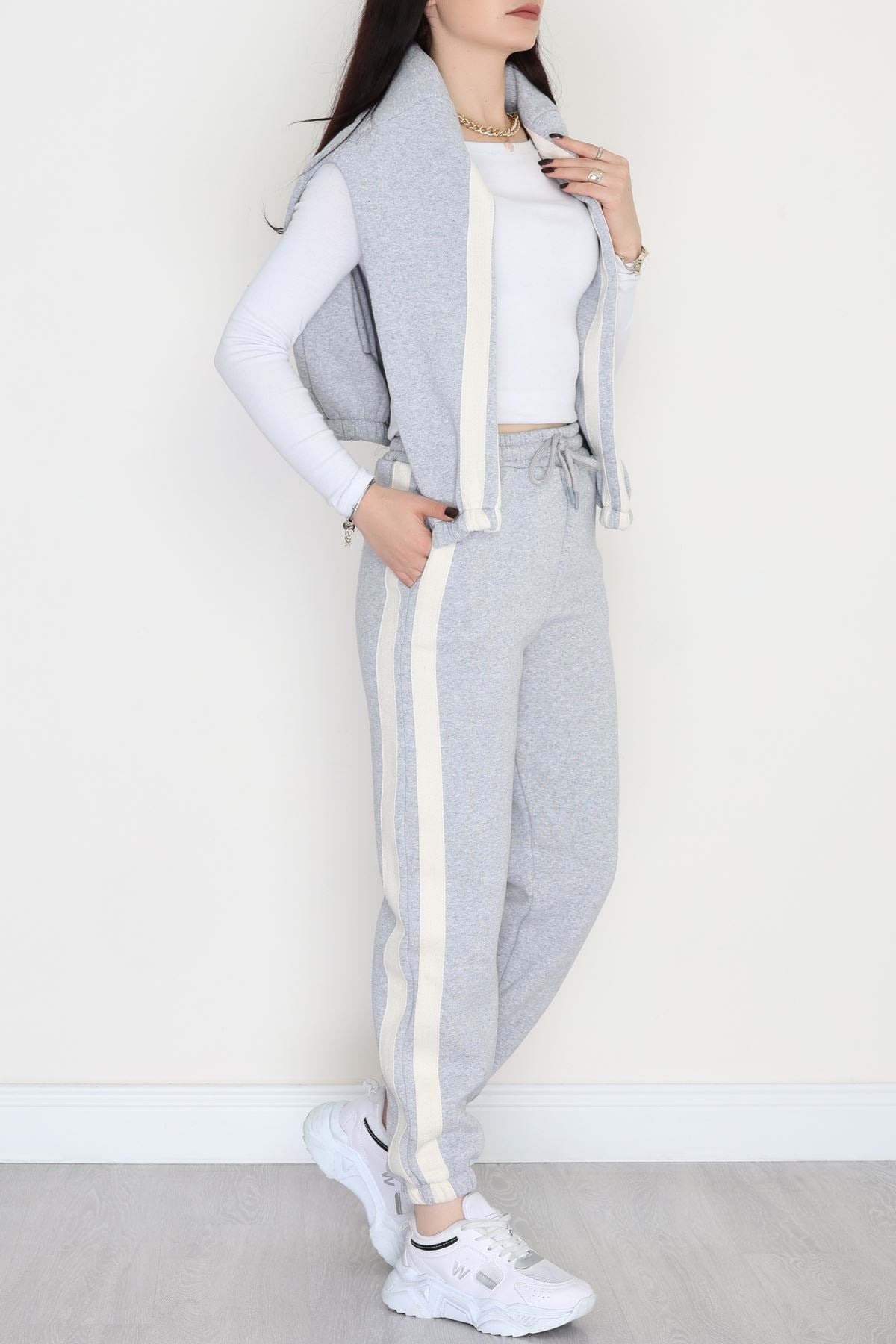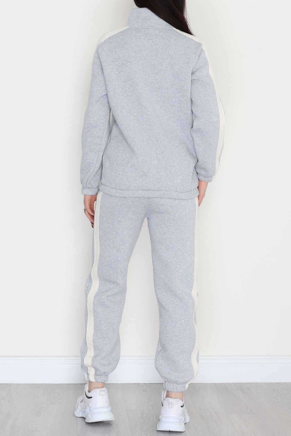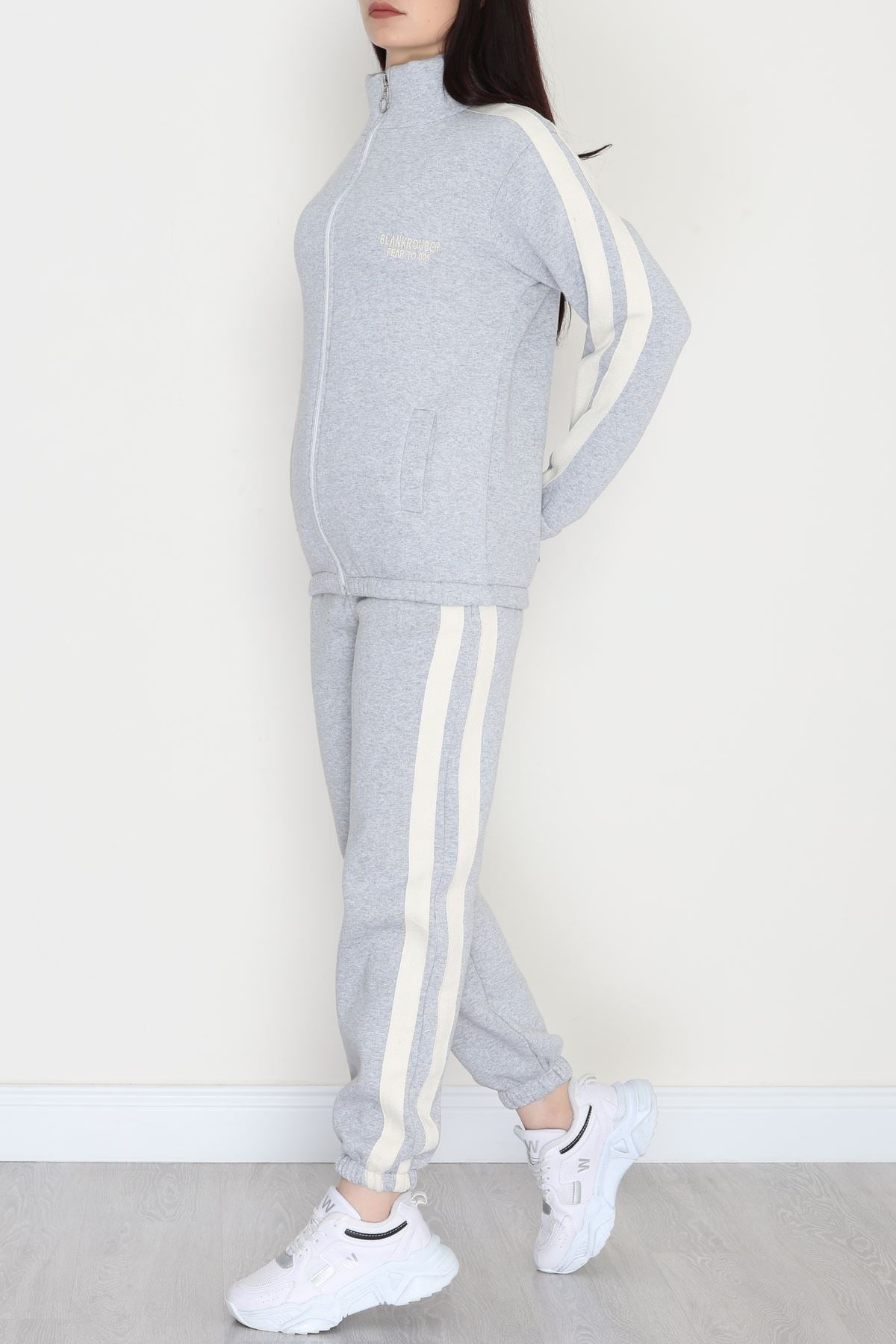 3 İplik Keten Şeritli Eşofman Takım Gri - 40017.1857.