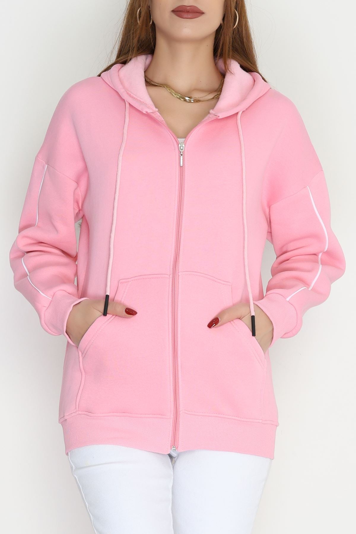 3 İplik Kompakt Oversize Biyeli Sweat Pembe - 42503.1878.