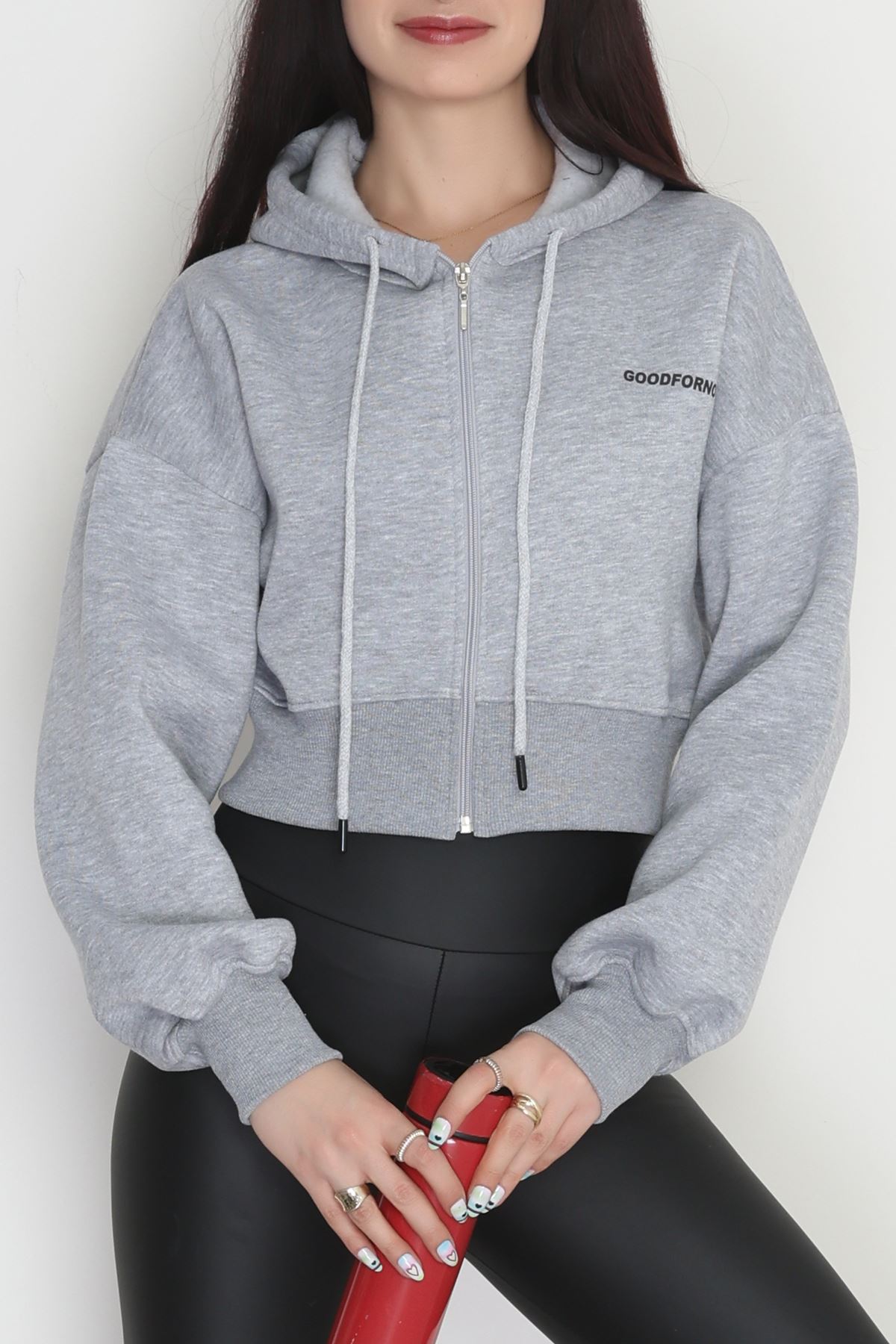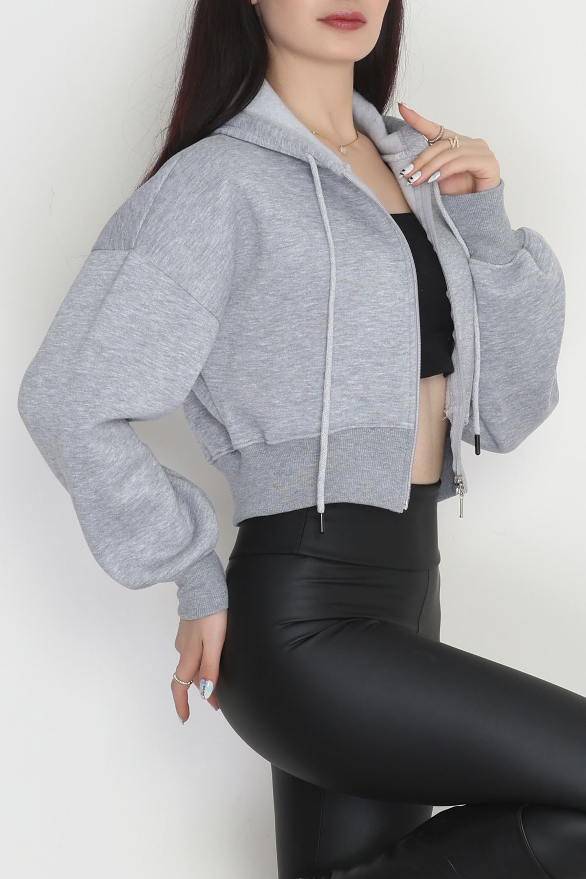 3 İplik Kompakt Oversize Fermuarlı Sweat Gri - 42501.1878.