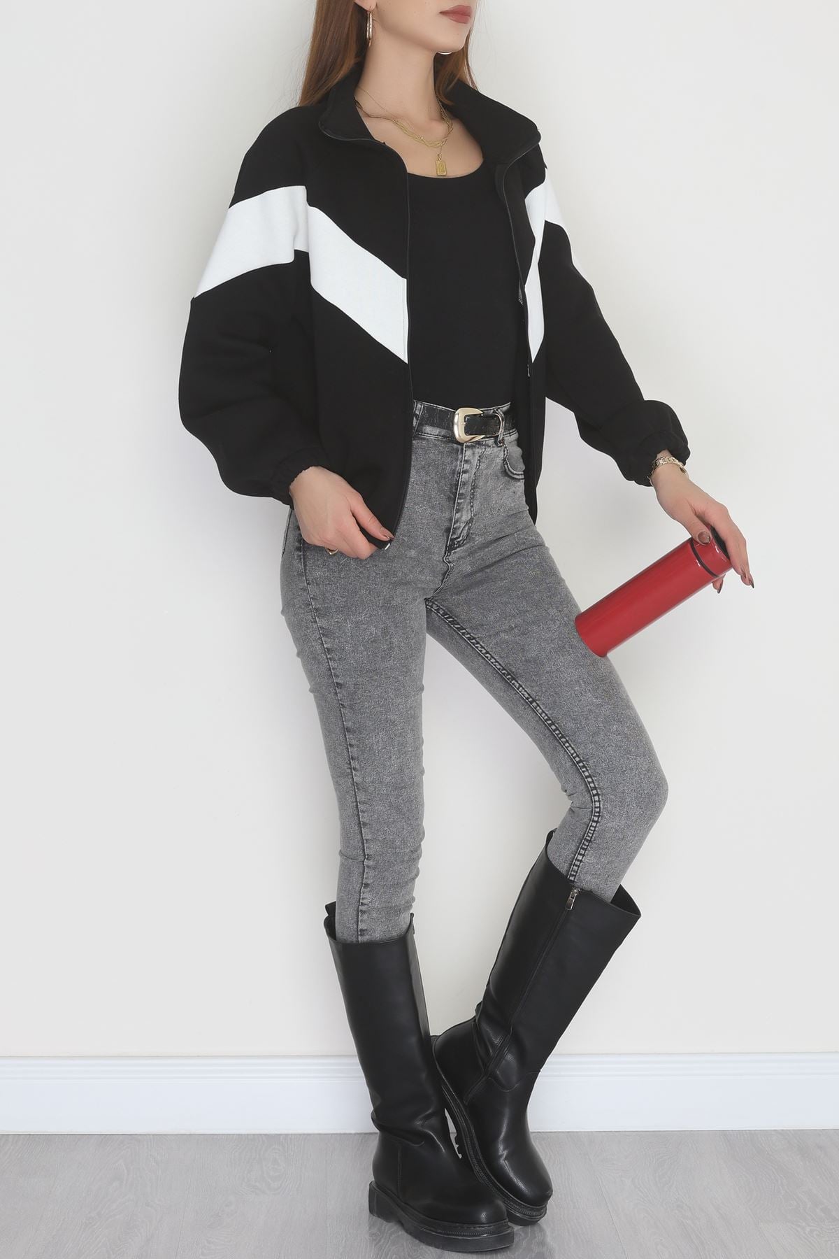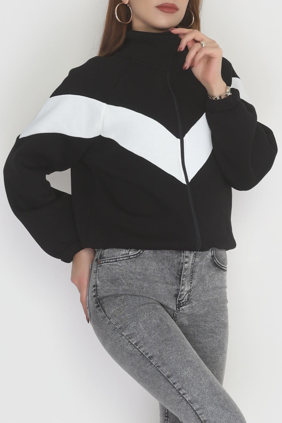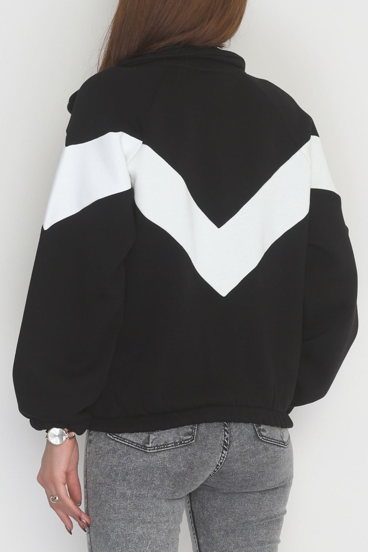 3 İplik Kompakt Oversize Fermuarlı Sweat Siyahekru - 42504.1878.