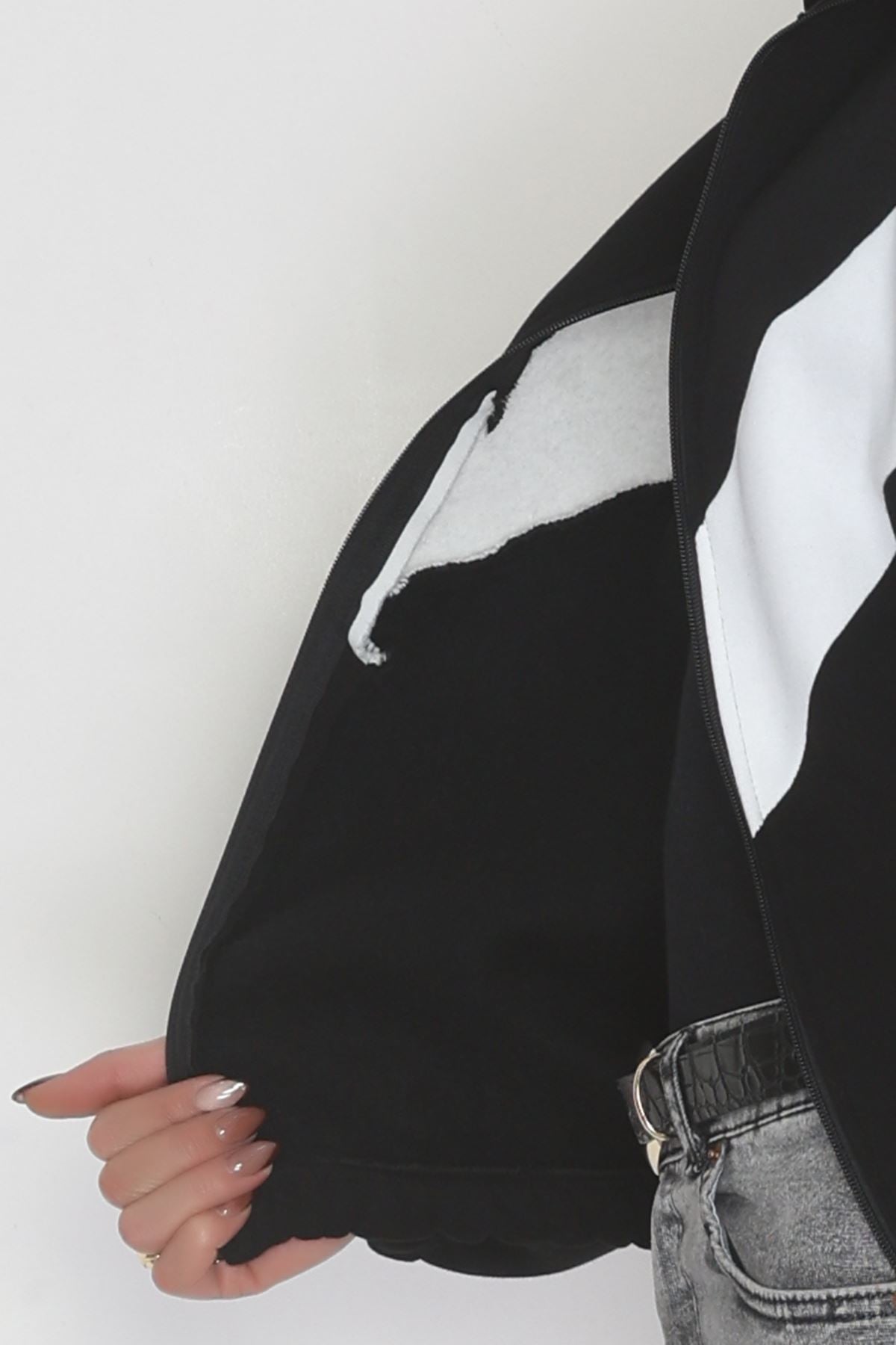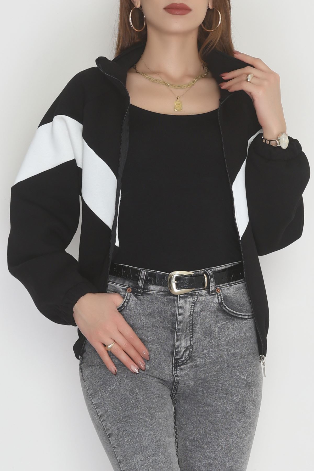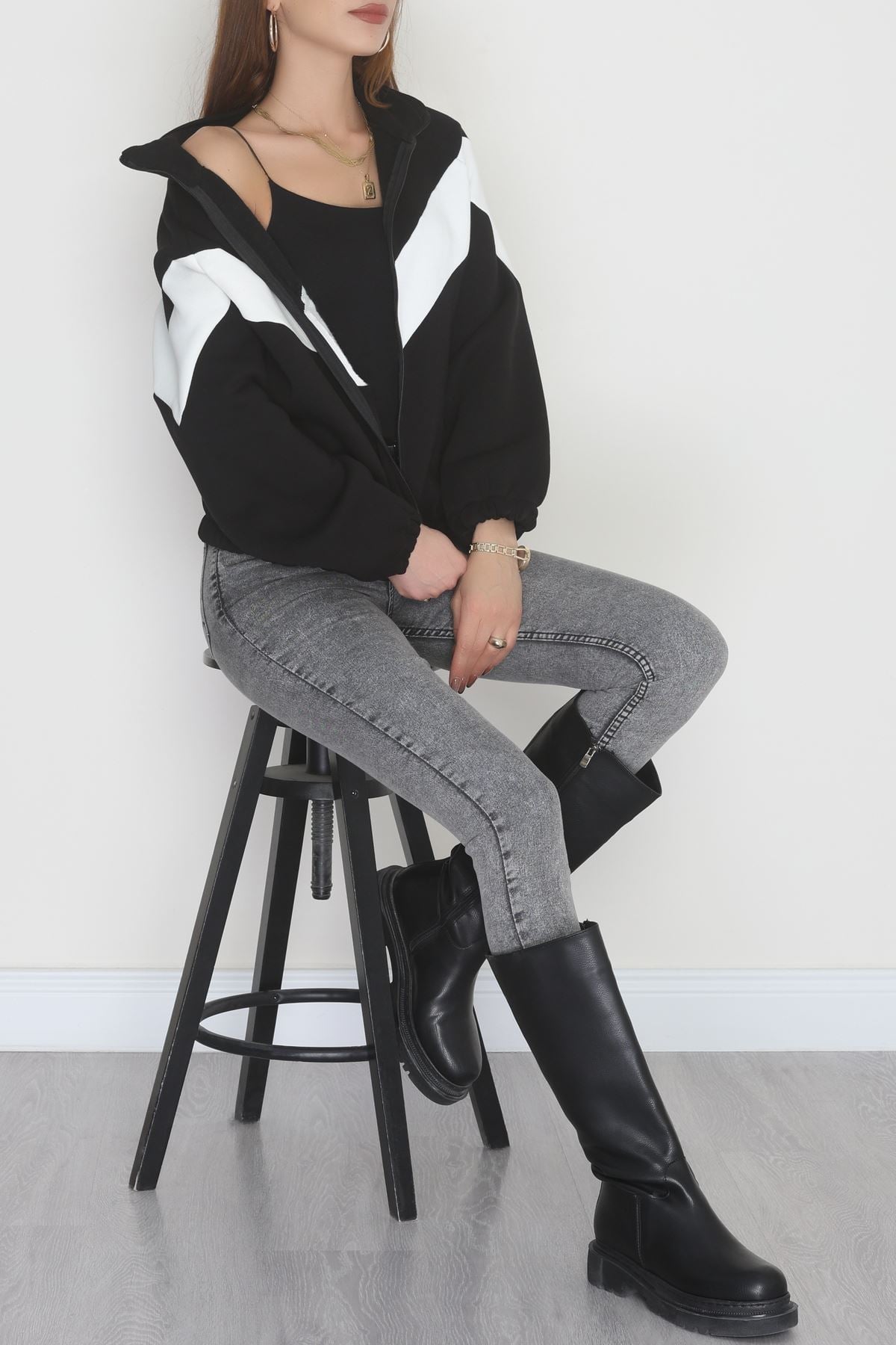 3 İplik Kompakt Oversize Fermuarlı Sweat Siyahekru - 42504.1878.