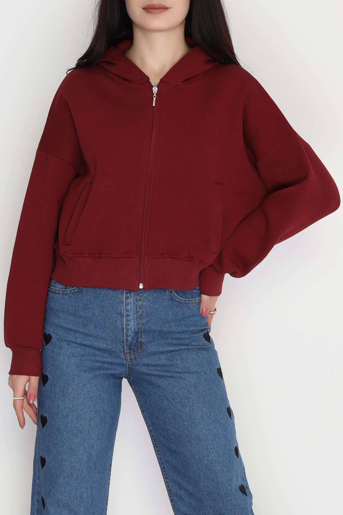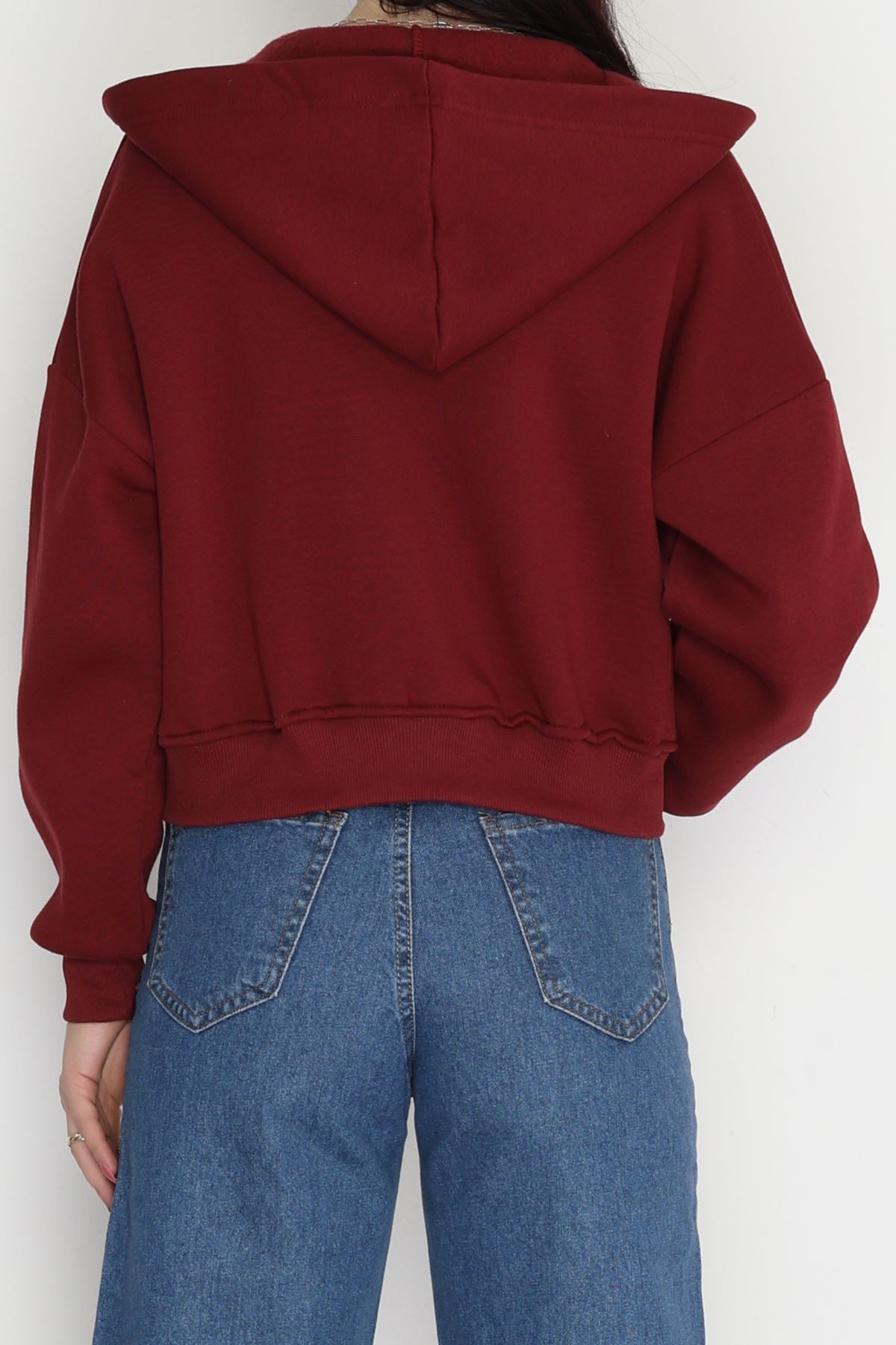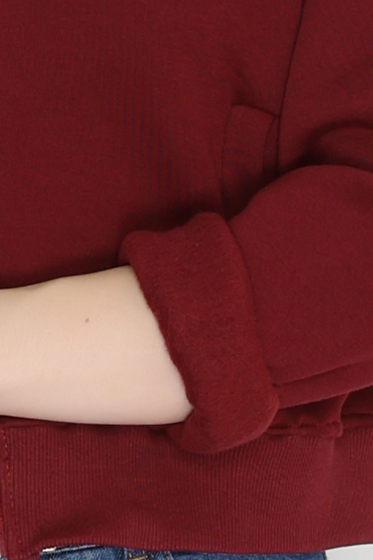 3 İplik Kompakt Oversize Fleto Cepli Sweat Bordo - 42506.1878.