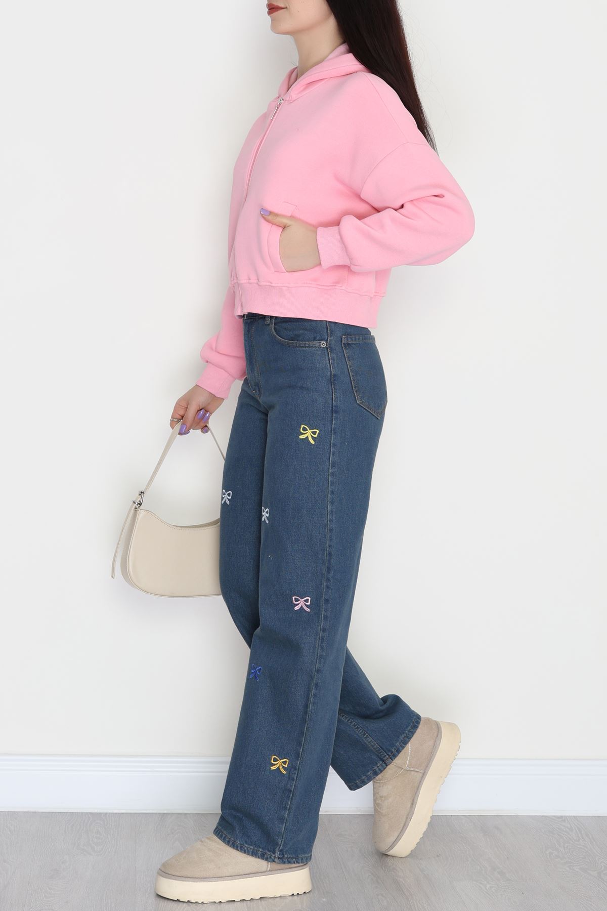 3 İplik Kompakt Oversize Fleto Cepli Sweat Pembe - 42506.1878.