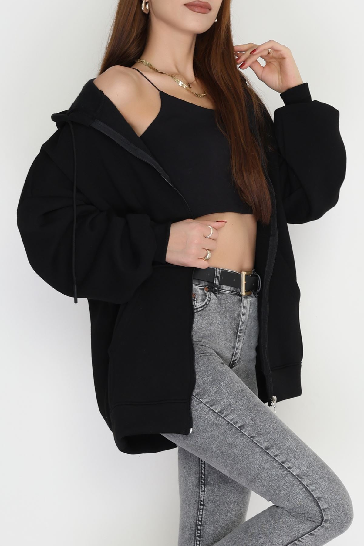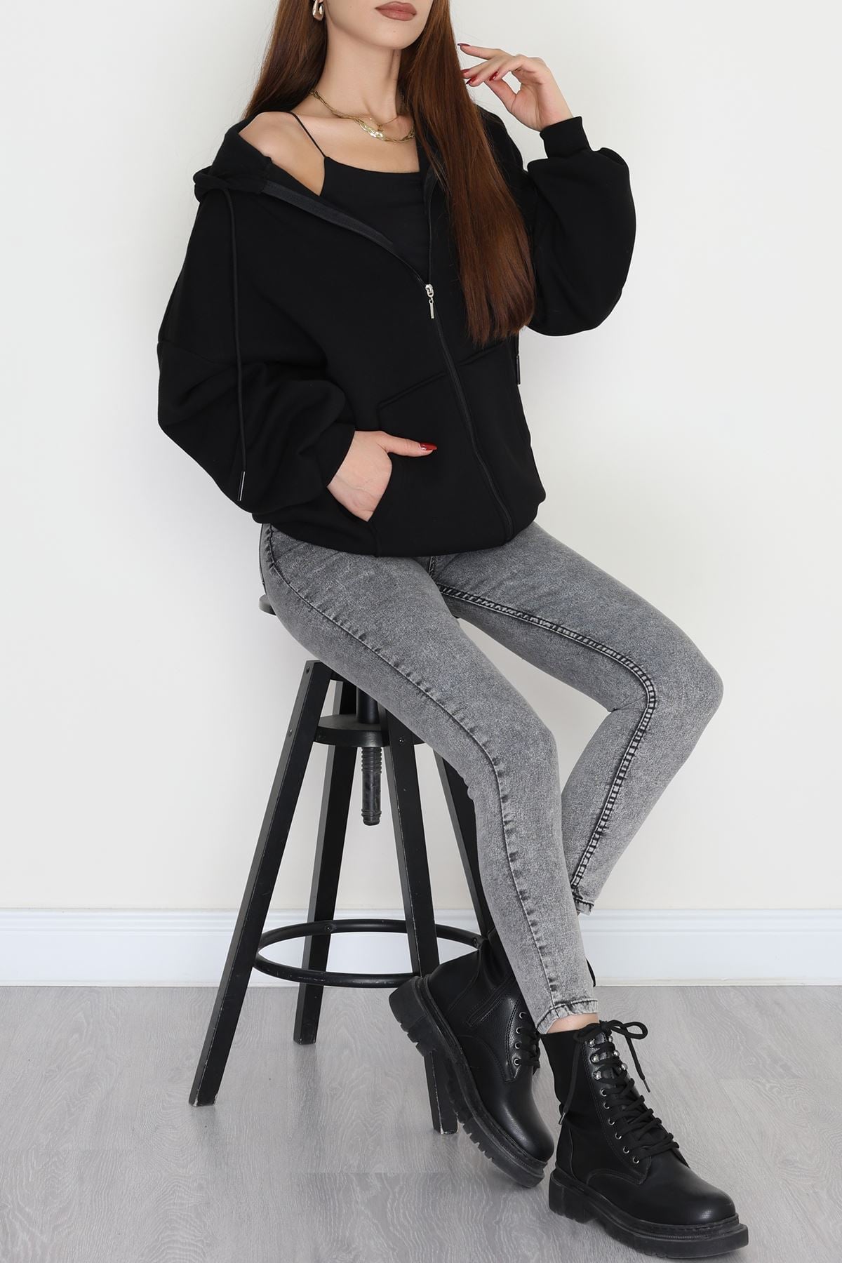 3 İplik Kompakt Oversize Sweat Siyah - 42502.1878.