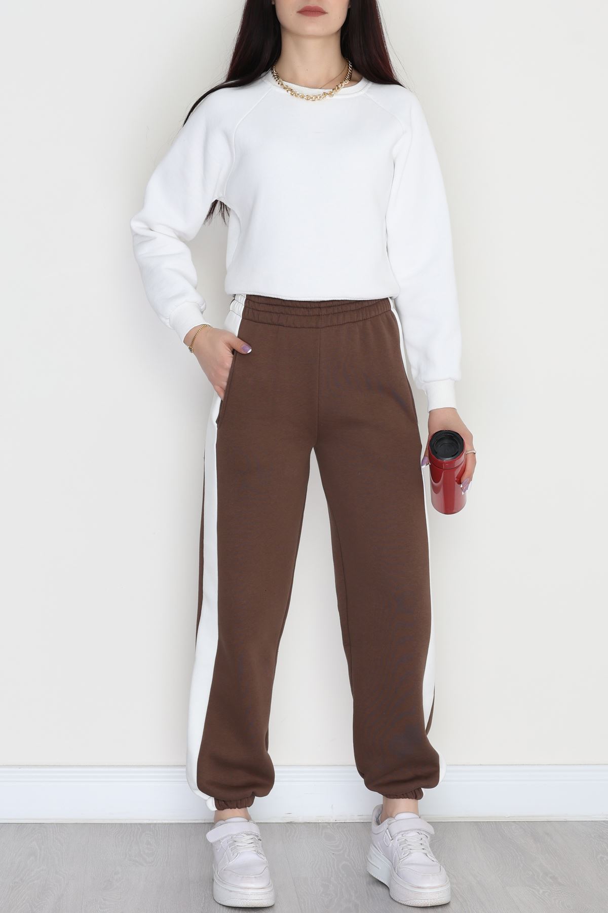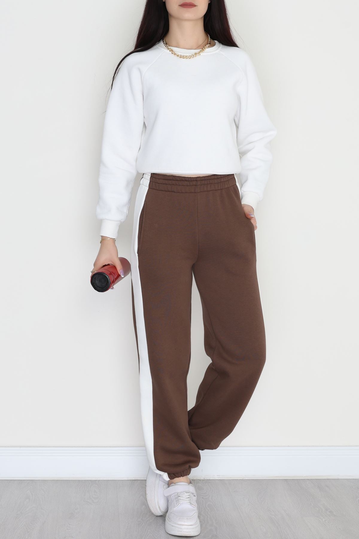 3 İplik Paça Lastikli Eşofman Altı Acıkahve - 42521.1878.