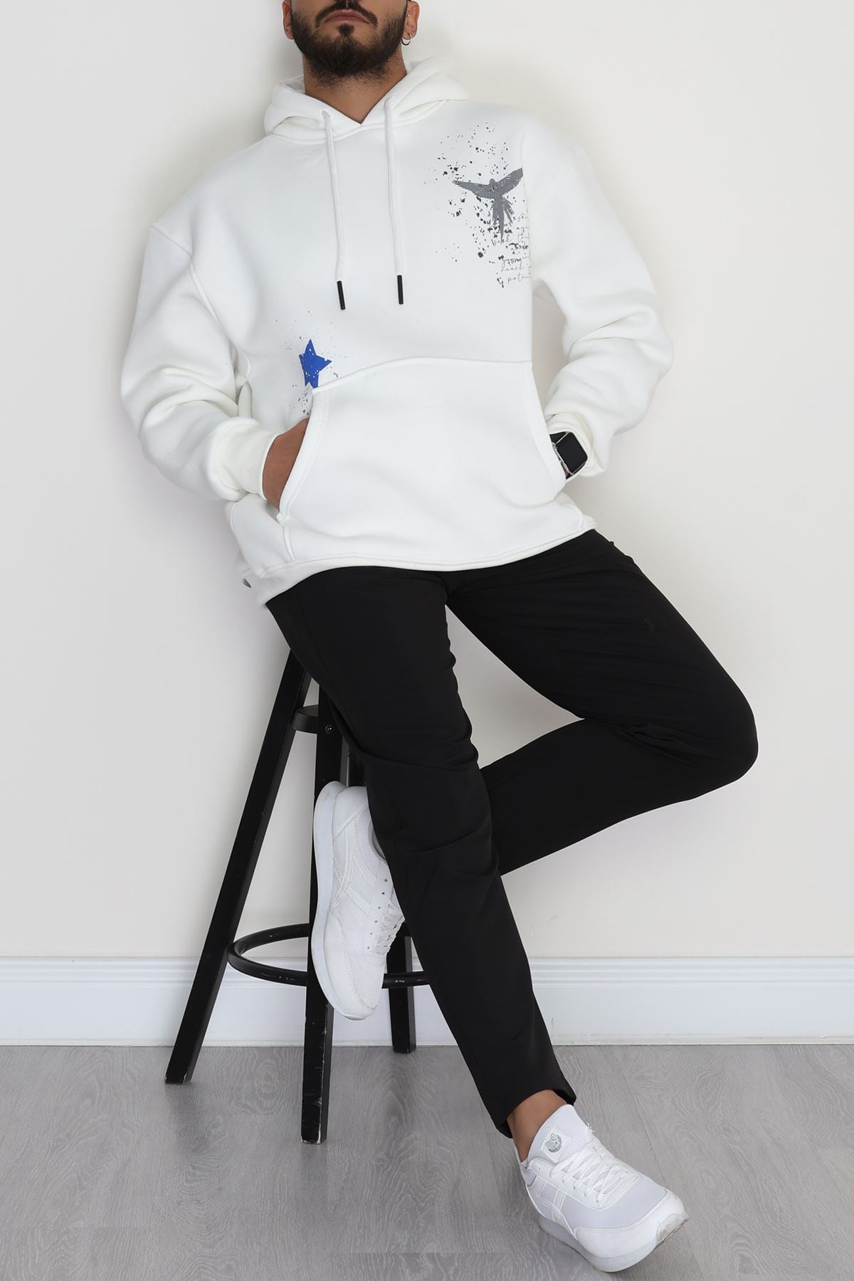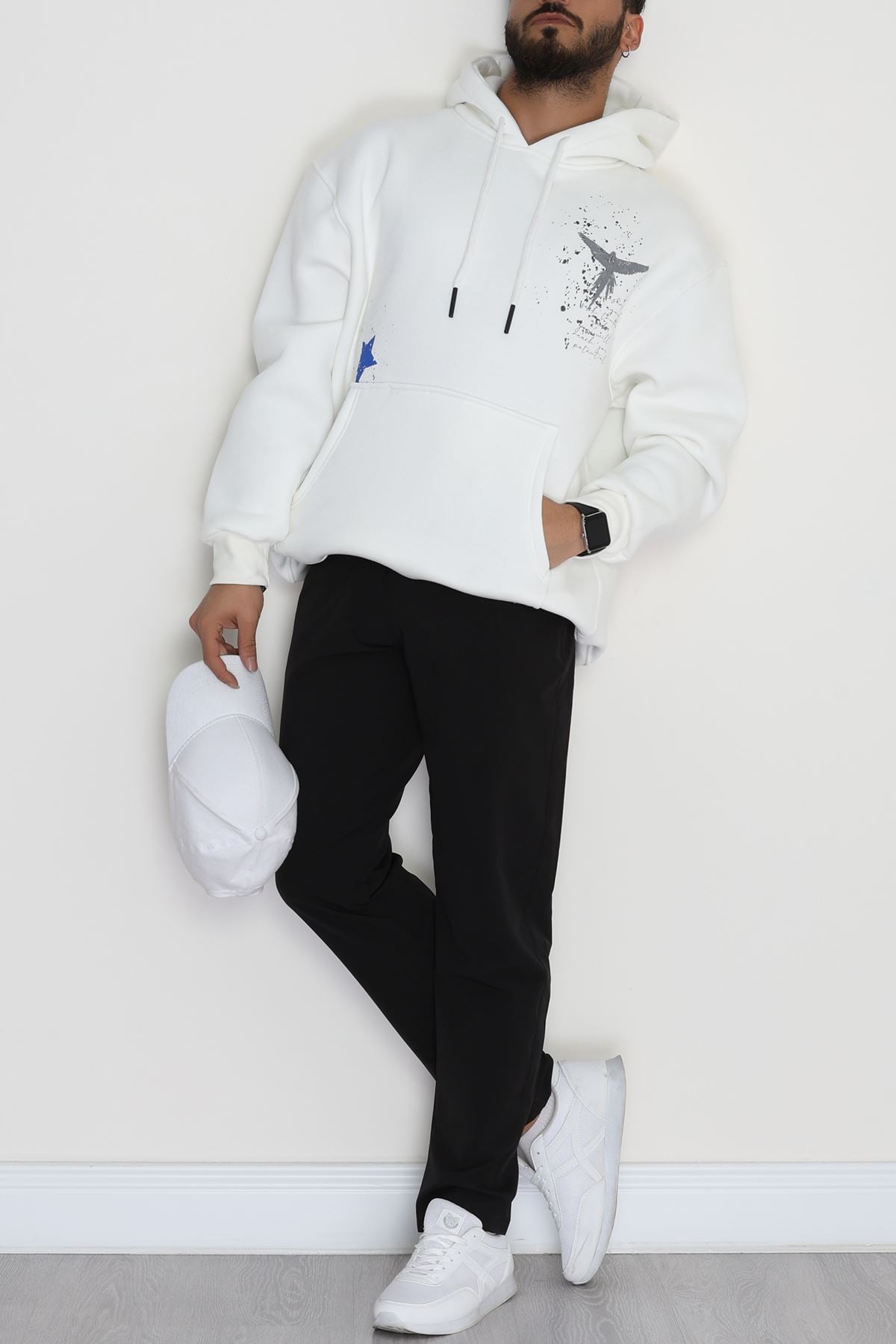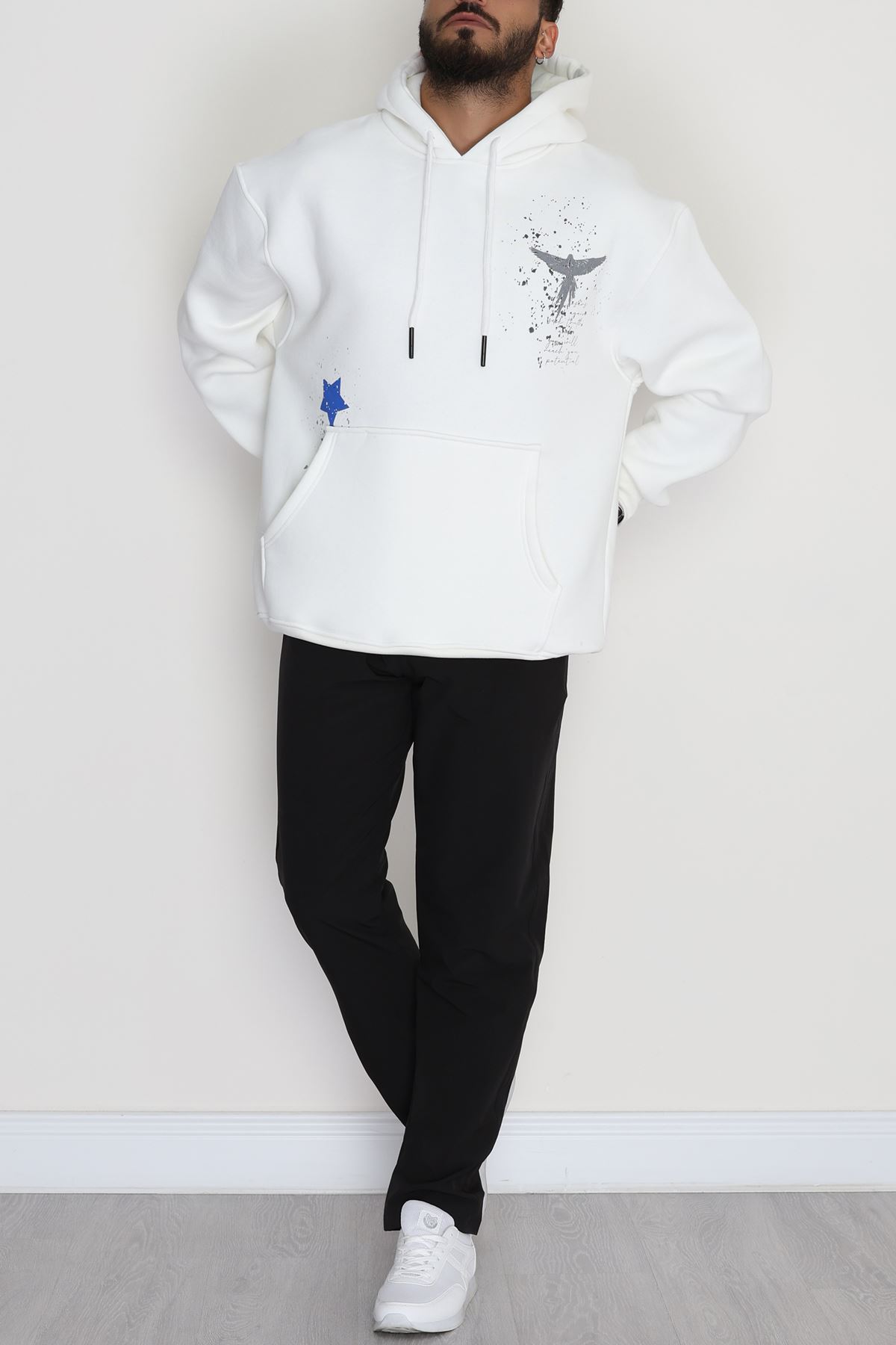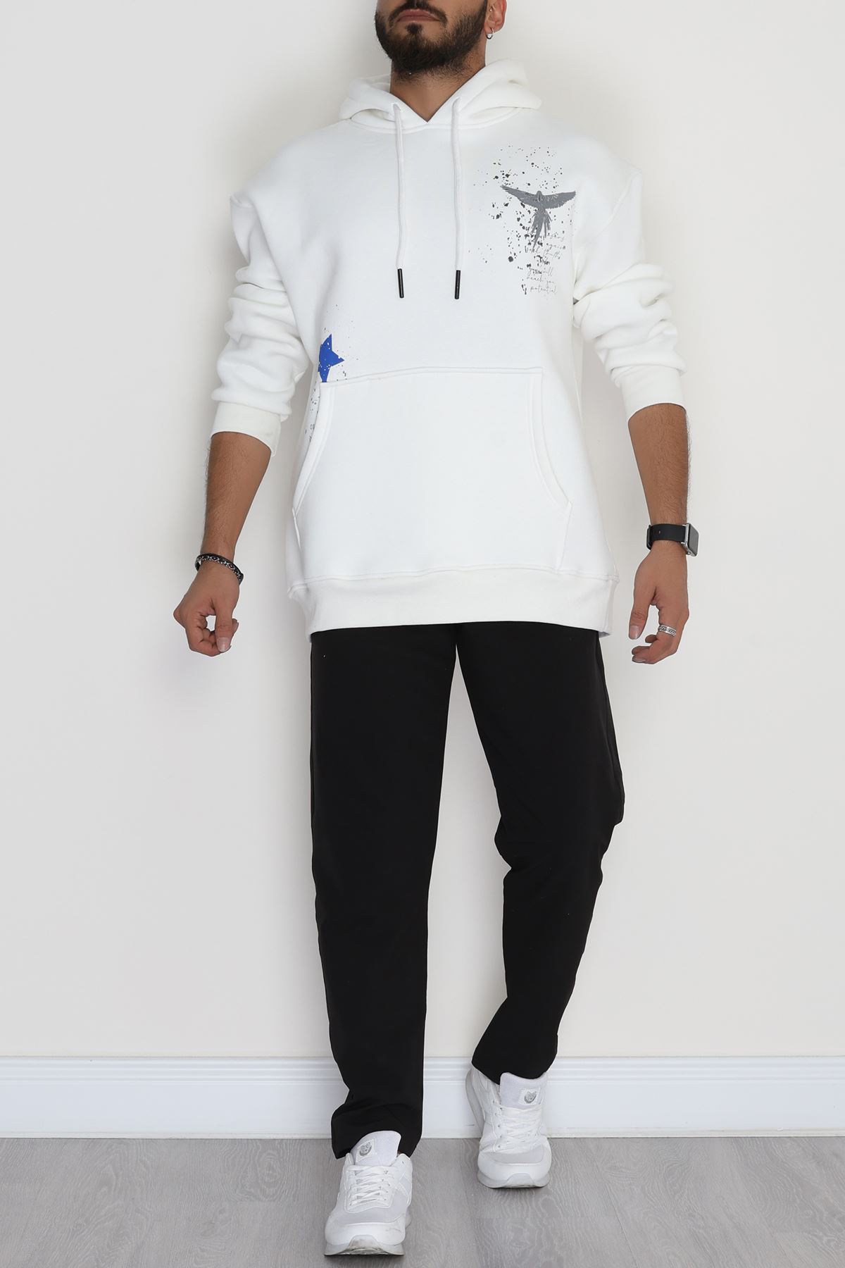 3 İplik Şardonlu Baskılı Erkek Sweat Beyaz - 42588.2086.