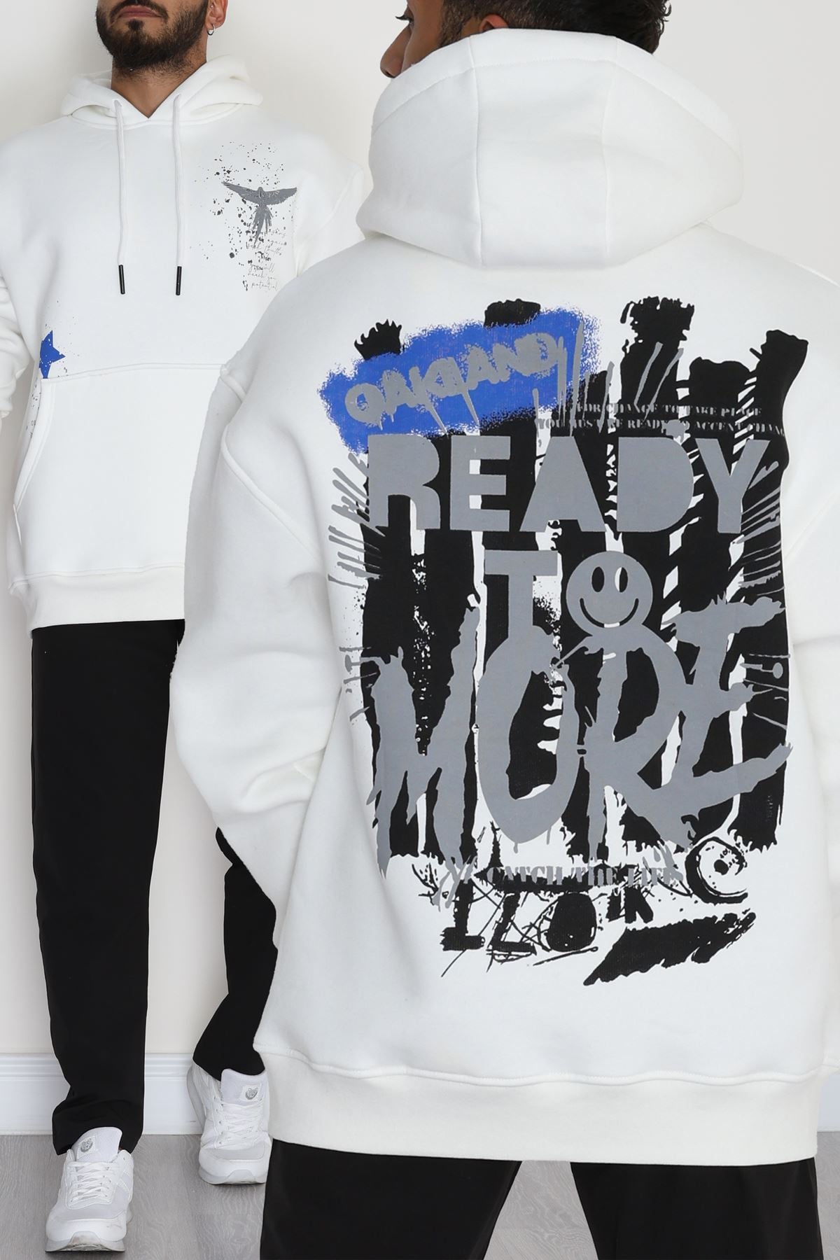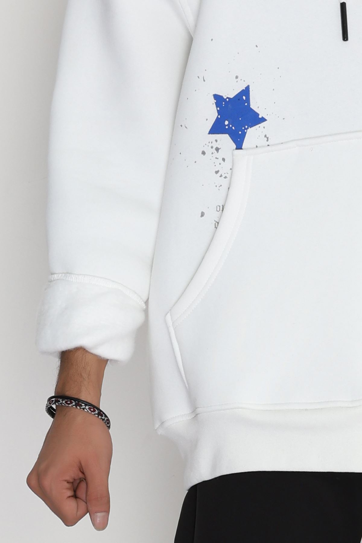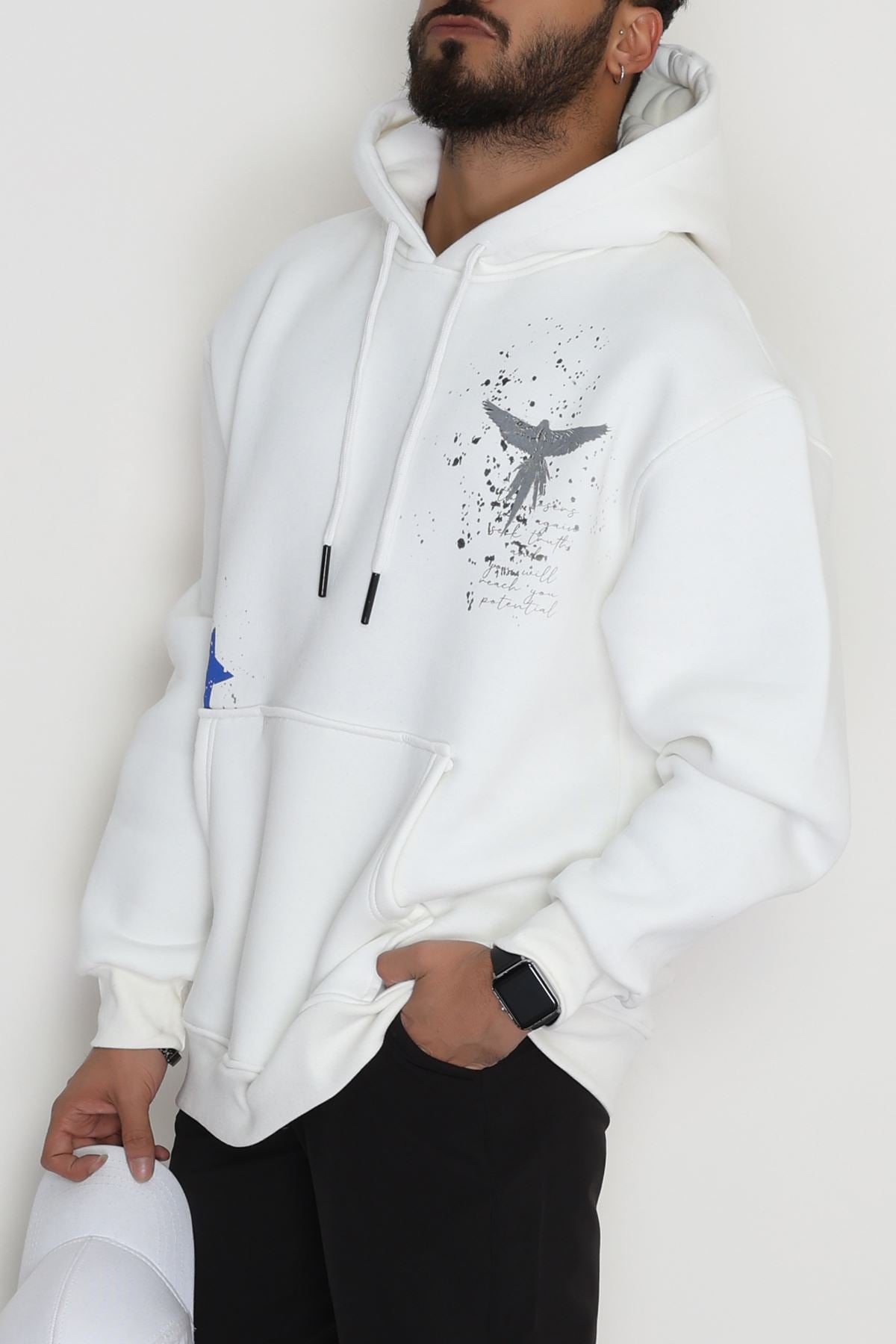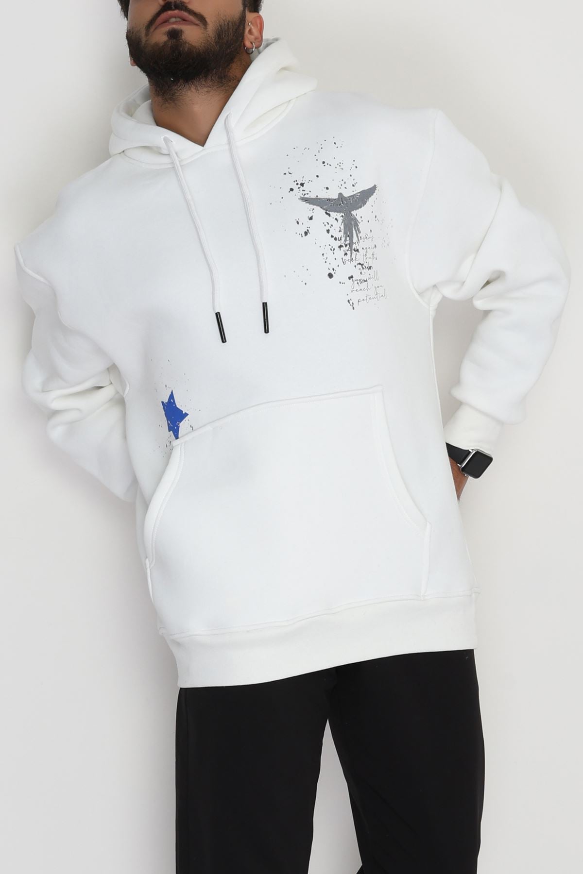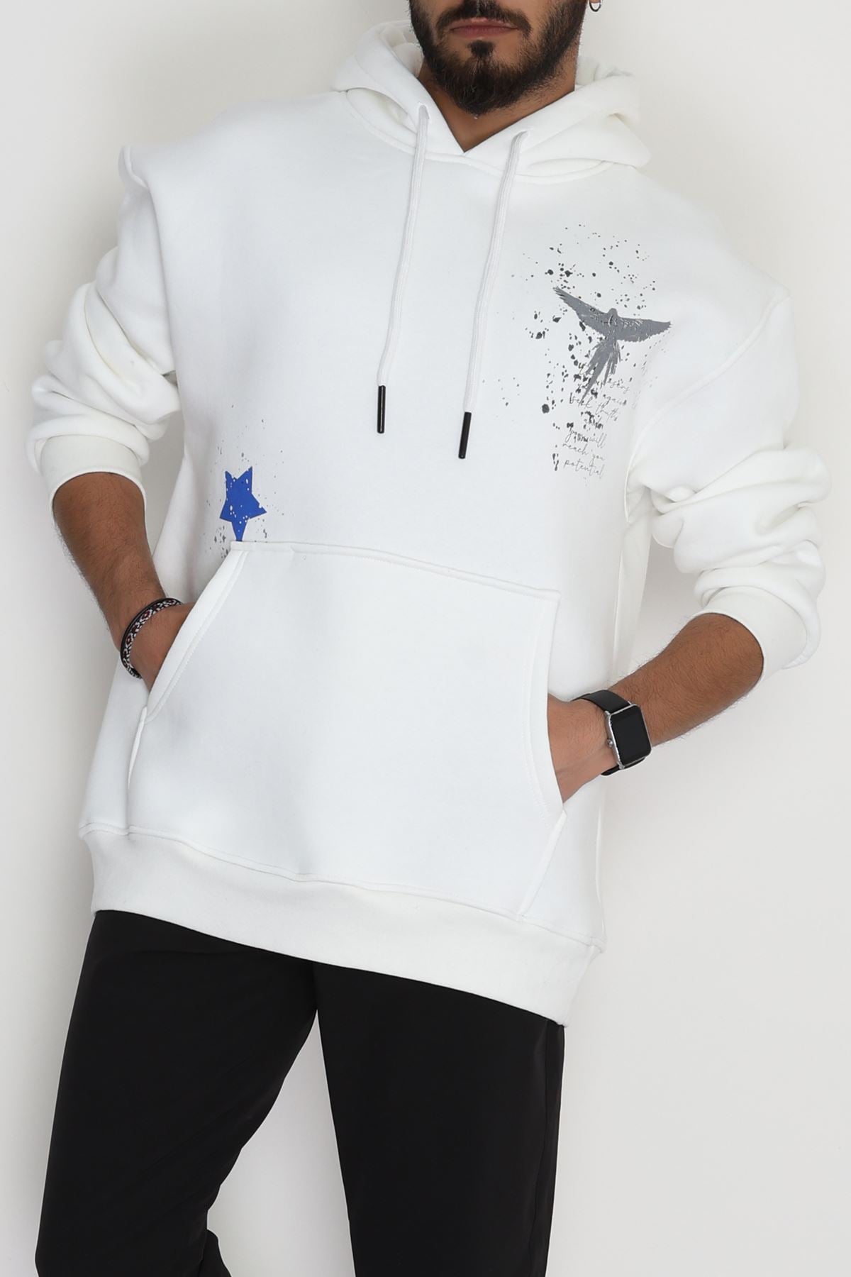 3 İplik Şardonlu Baskılı Erkek Sweat Beyaz - 42588.2086.