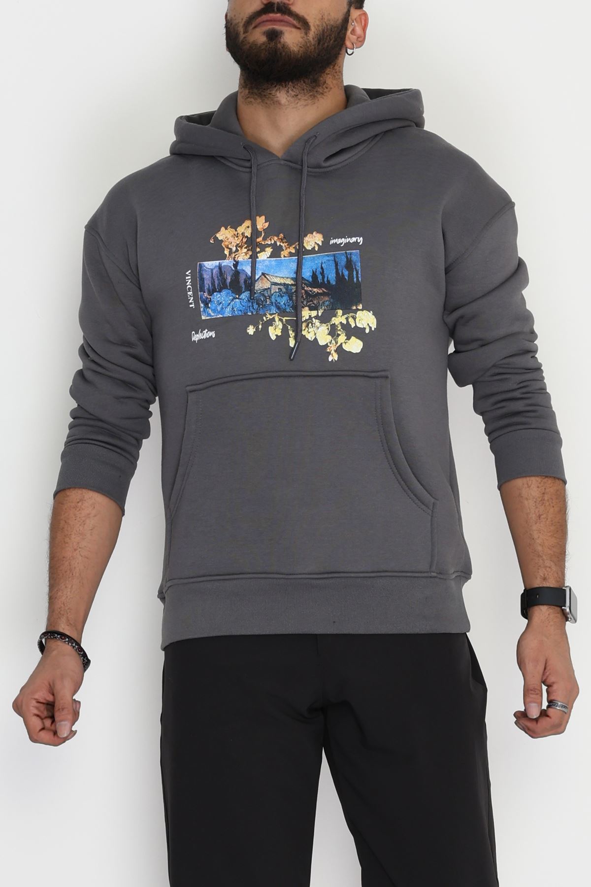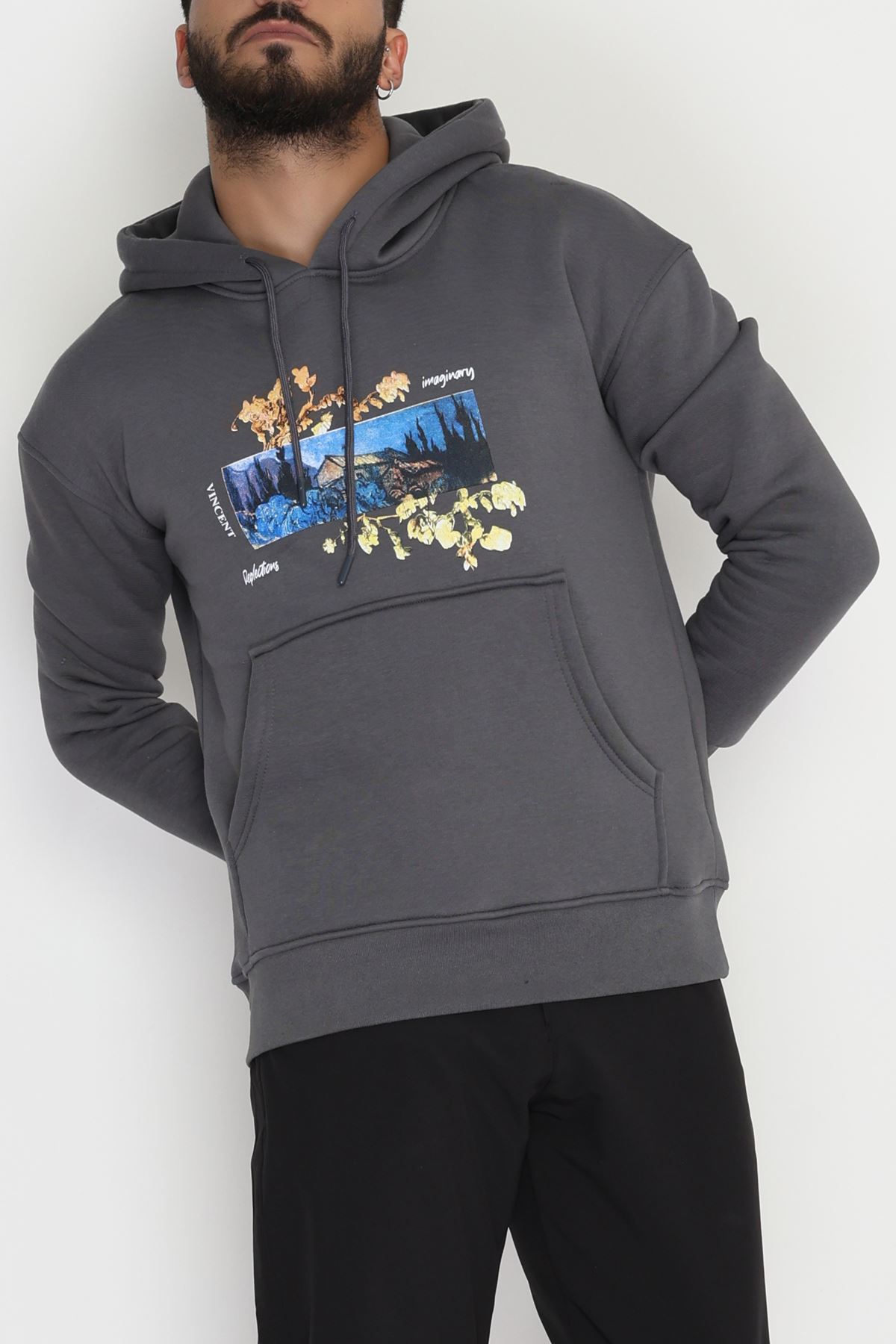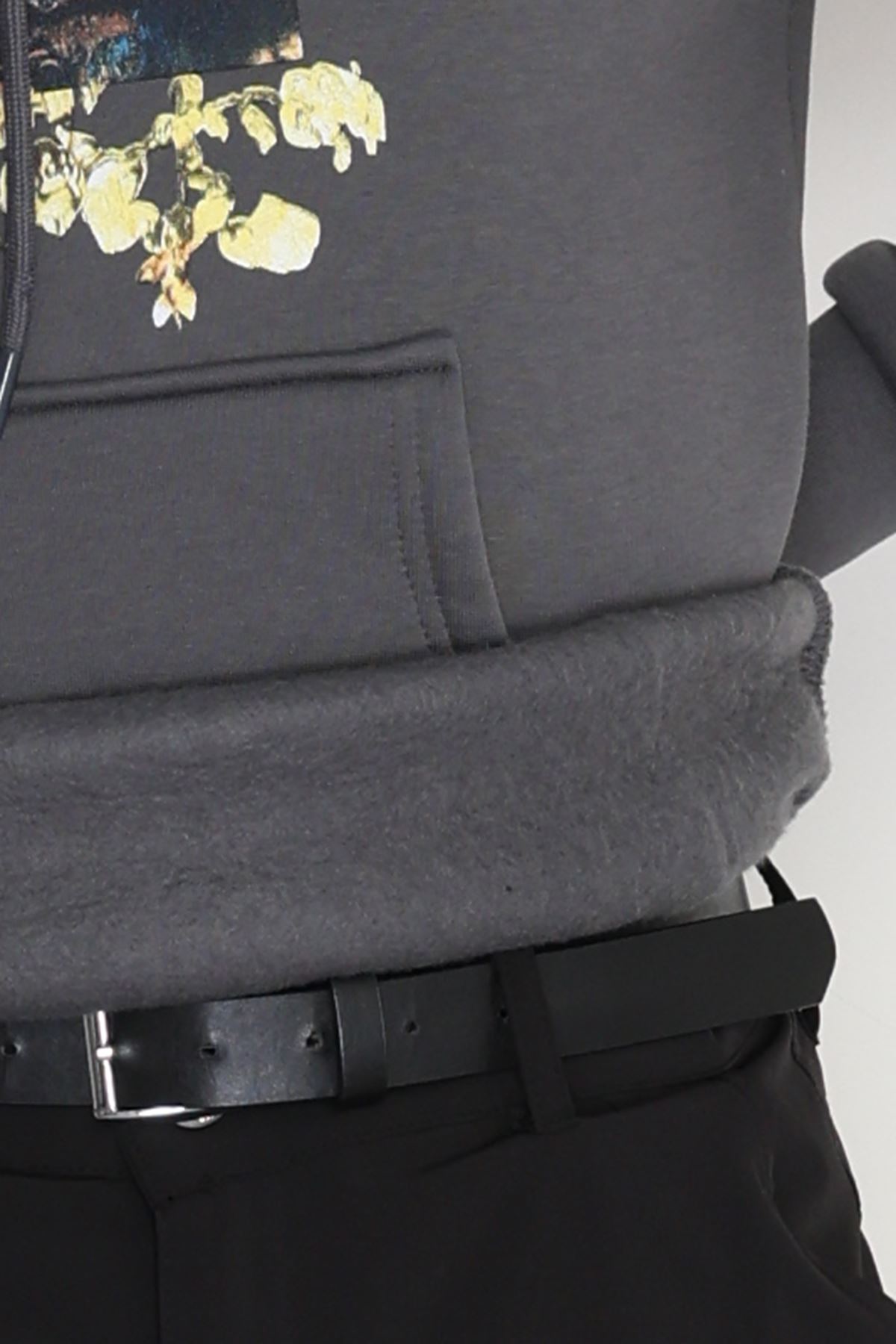3 İplik Şardonlu Baskılı Erkek Sweat Füme - 42594.2086.