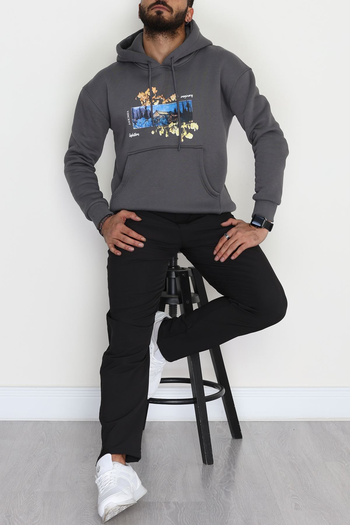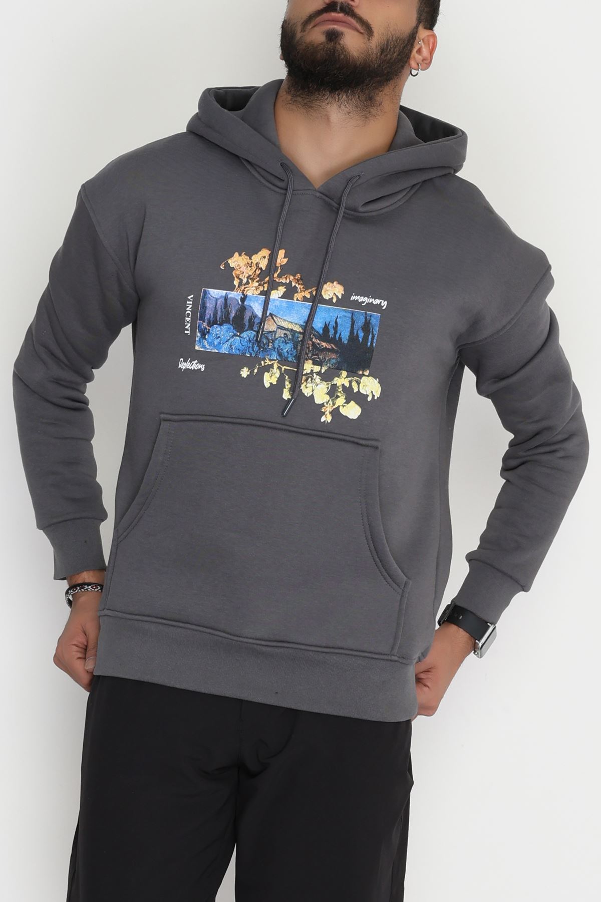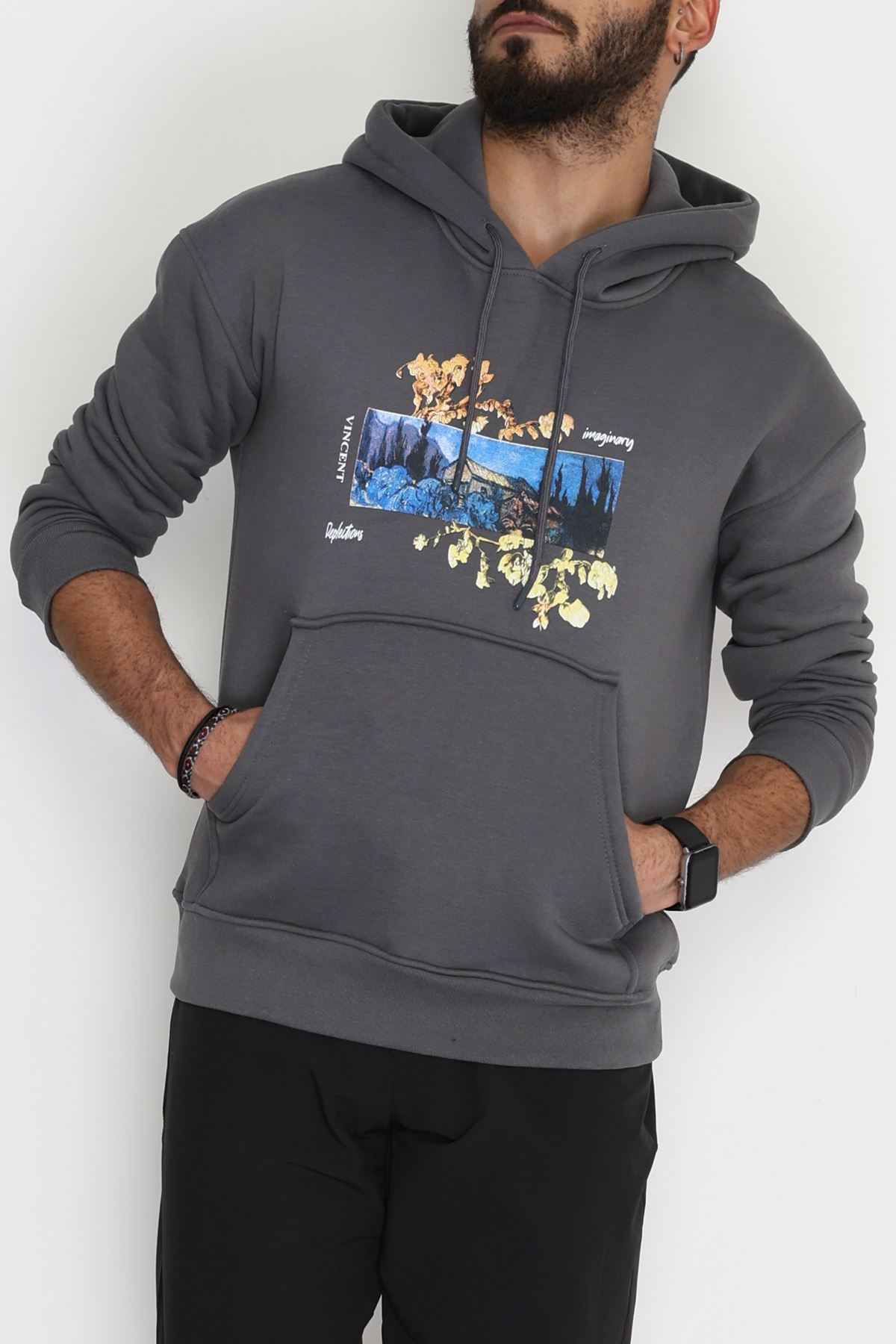 3 İplik Şardonlu Baskılı Erkek Sweat Füme - 42594.2086.