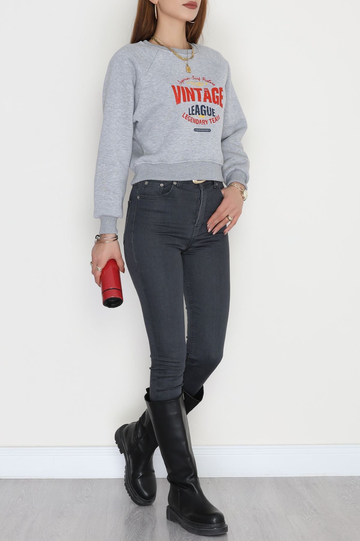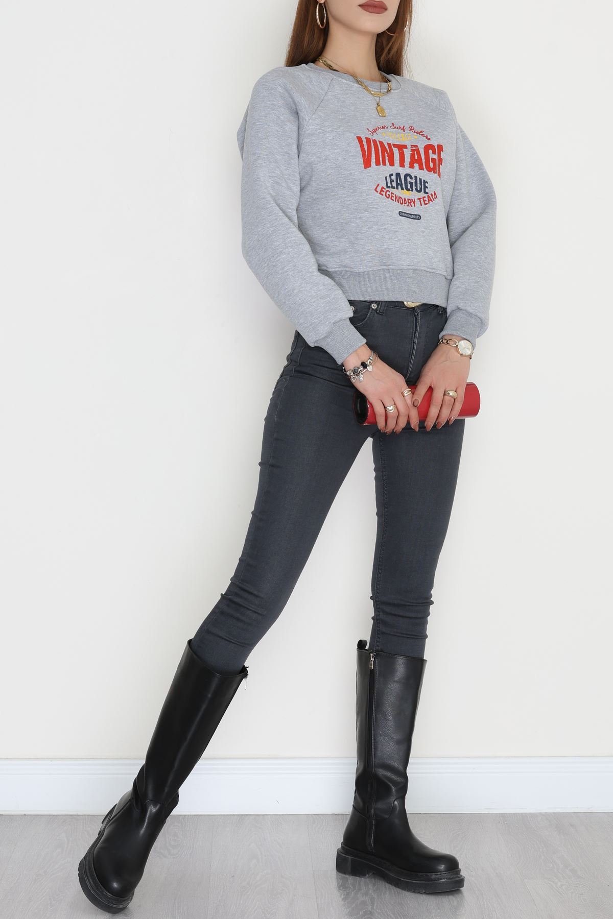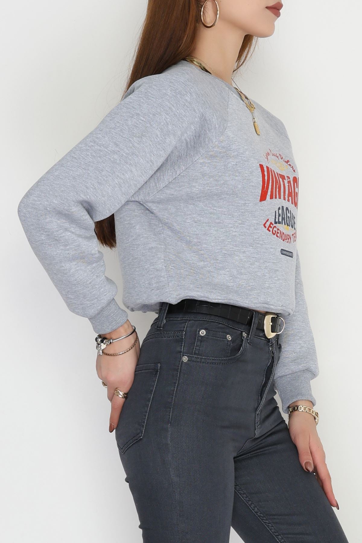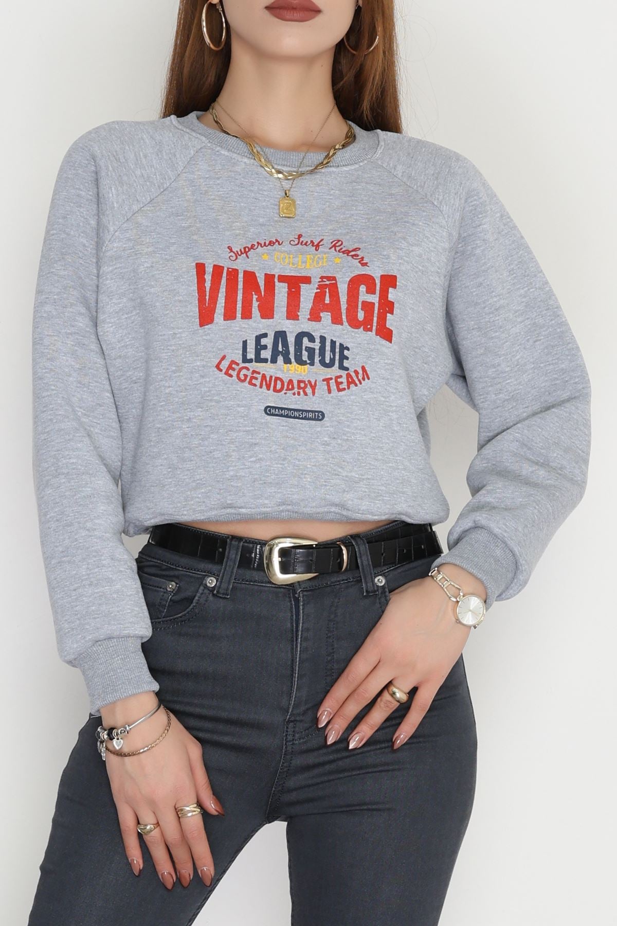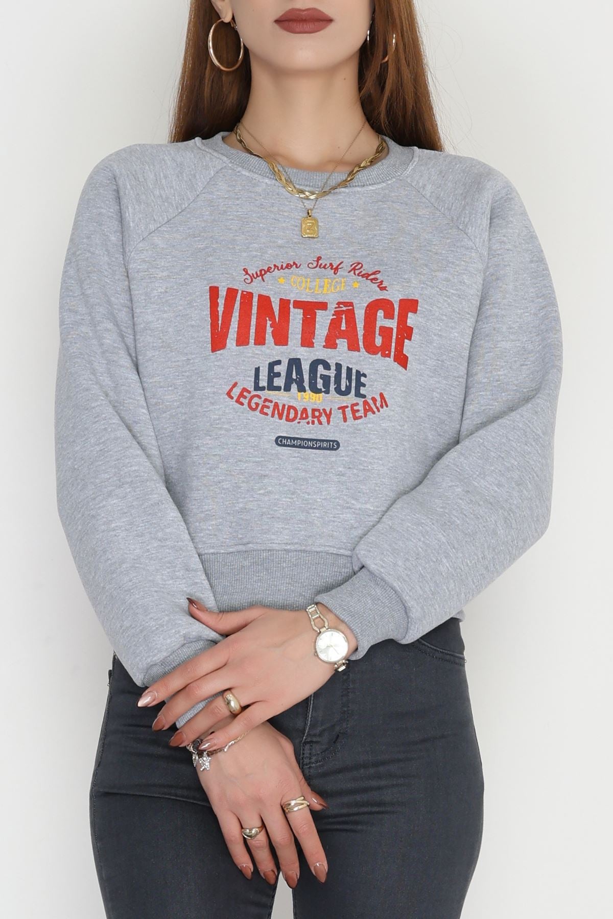 3 İplik Şardonlu Baskılı Sweat Gri - 42605.1878.