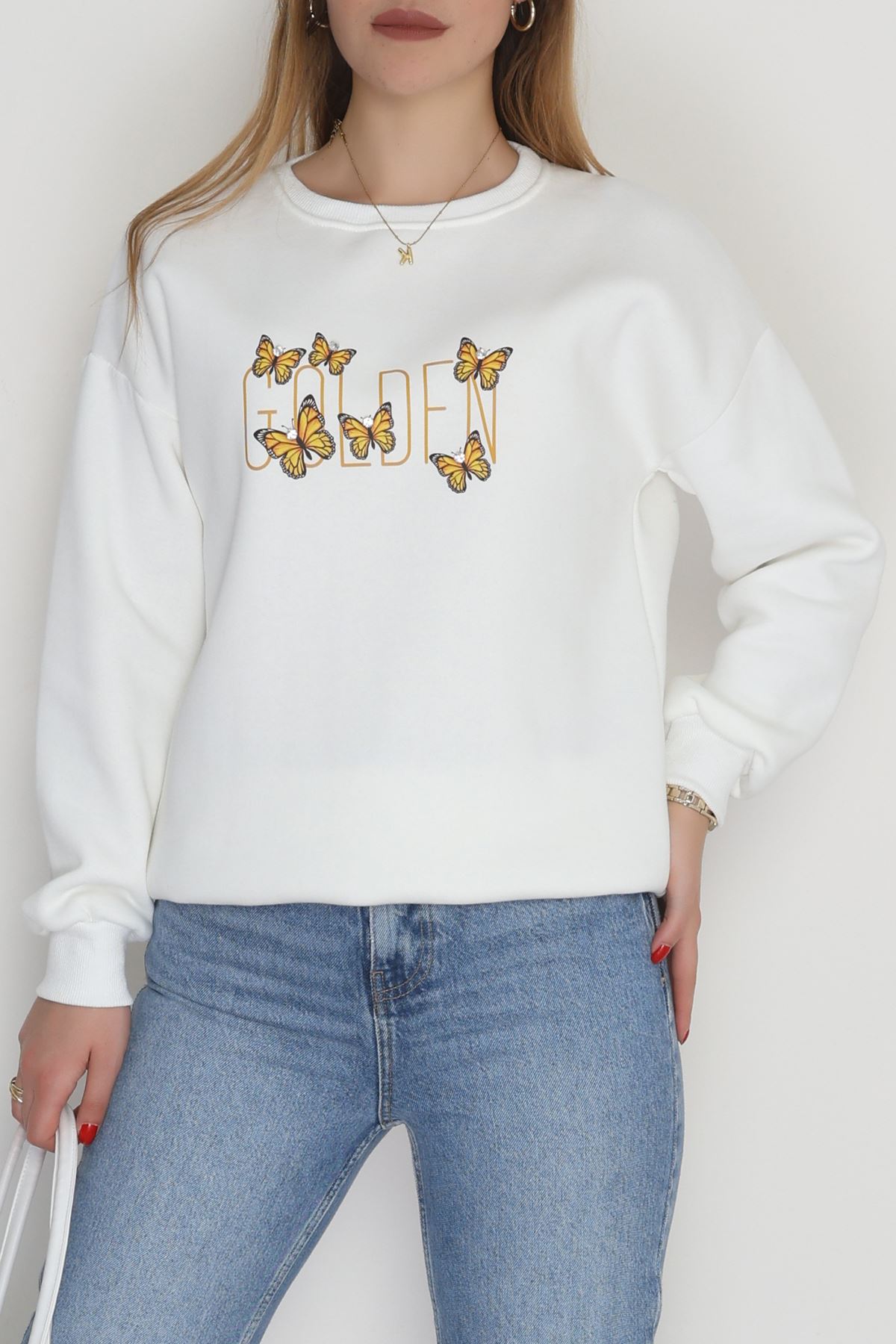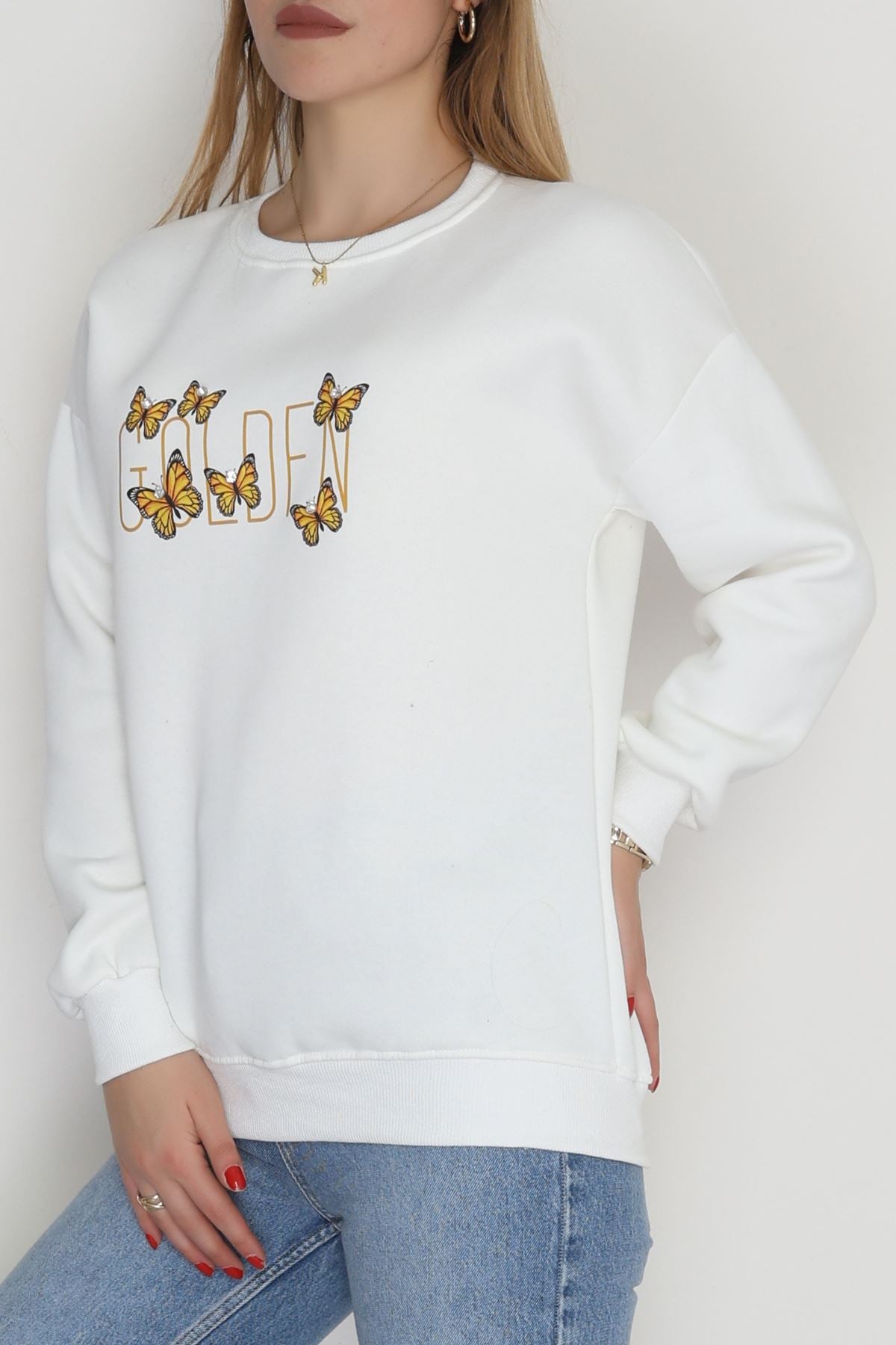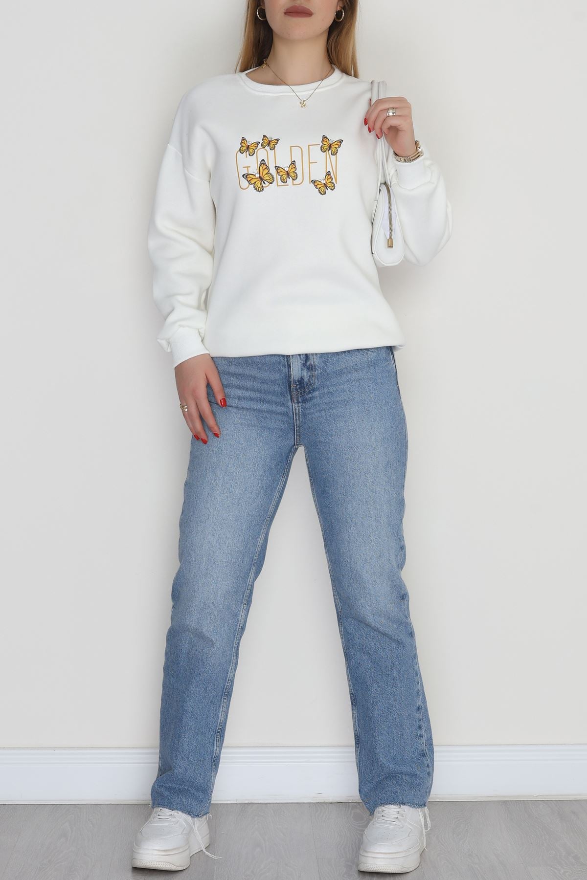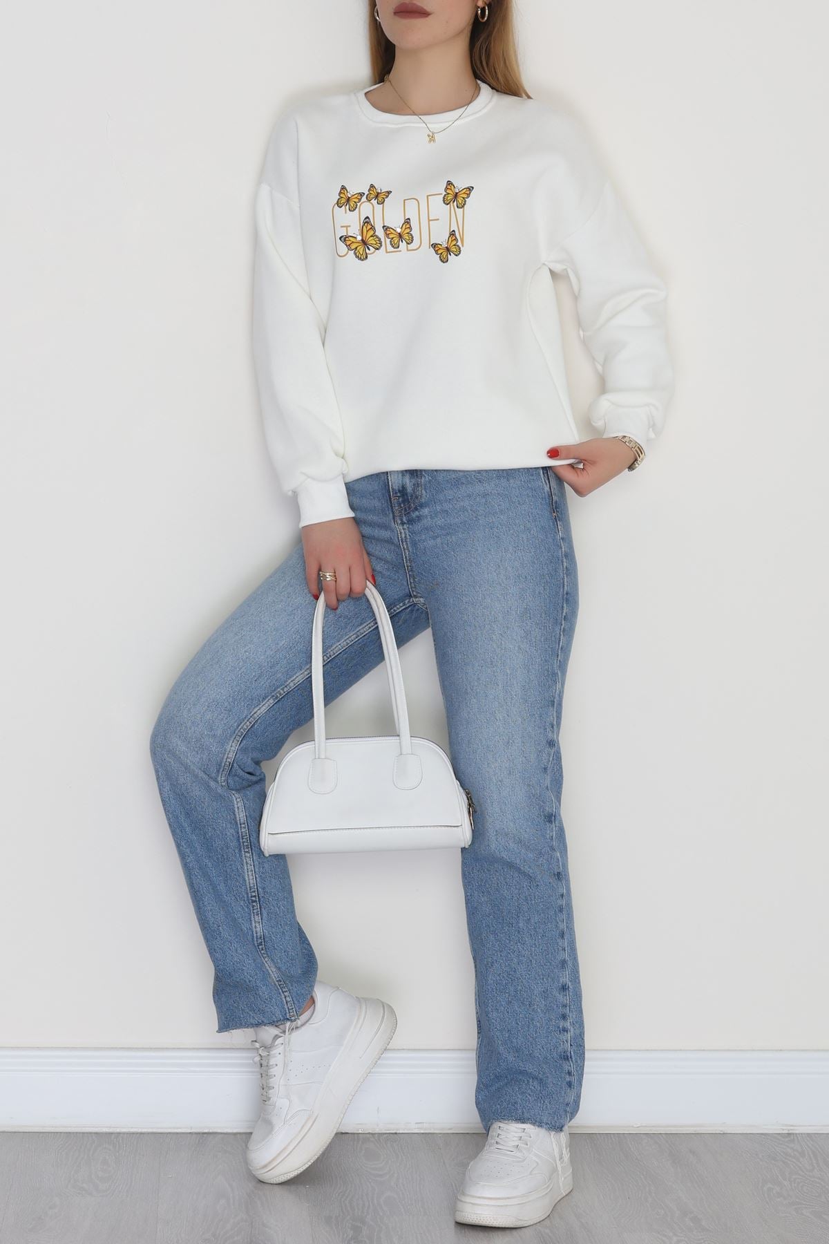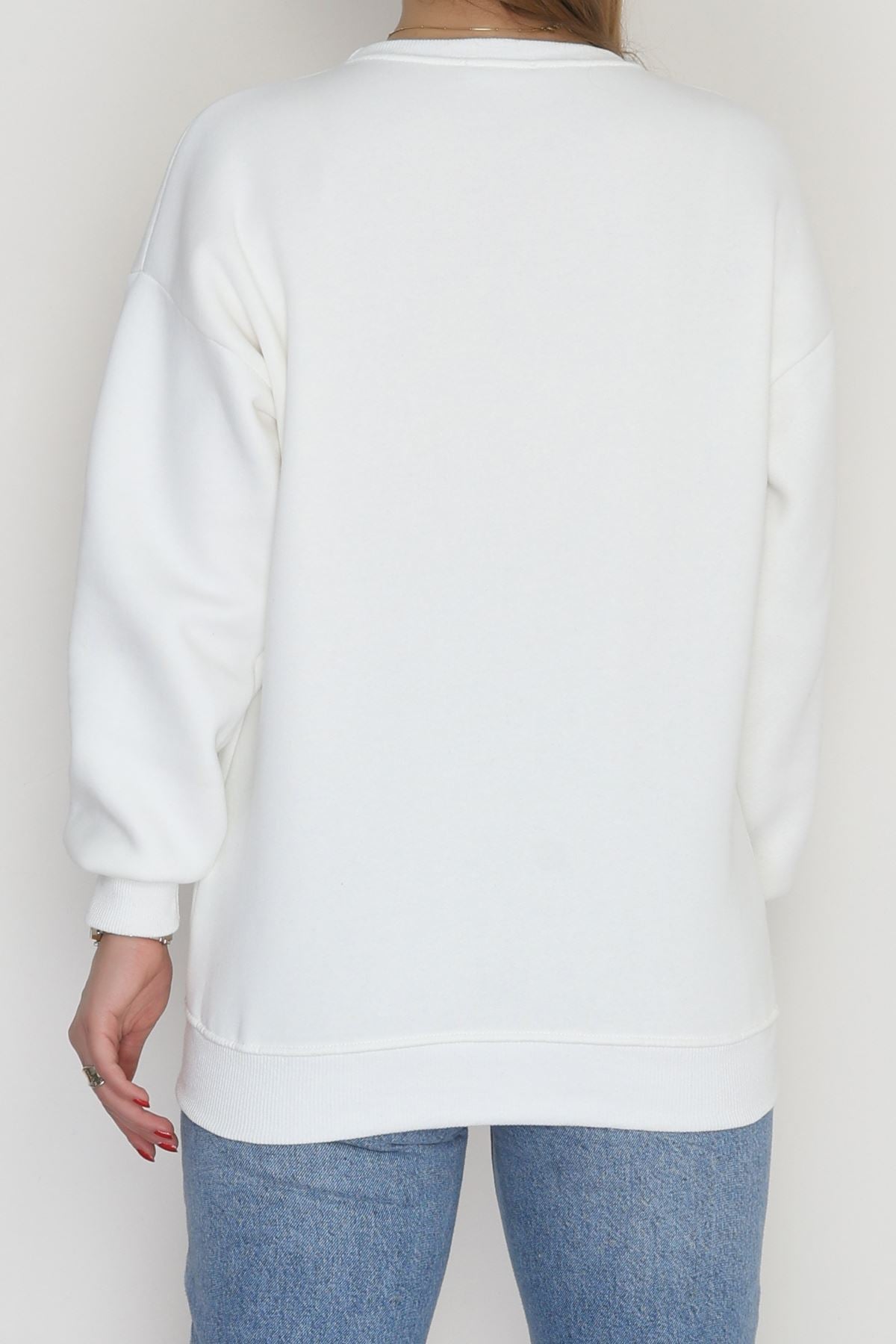 3 İplik Şardonlu Baskılı Taşlı Sweat Ekrusarı - 42604.1878.