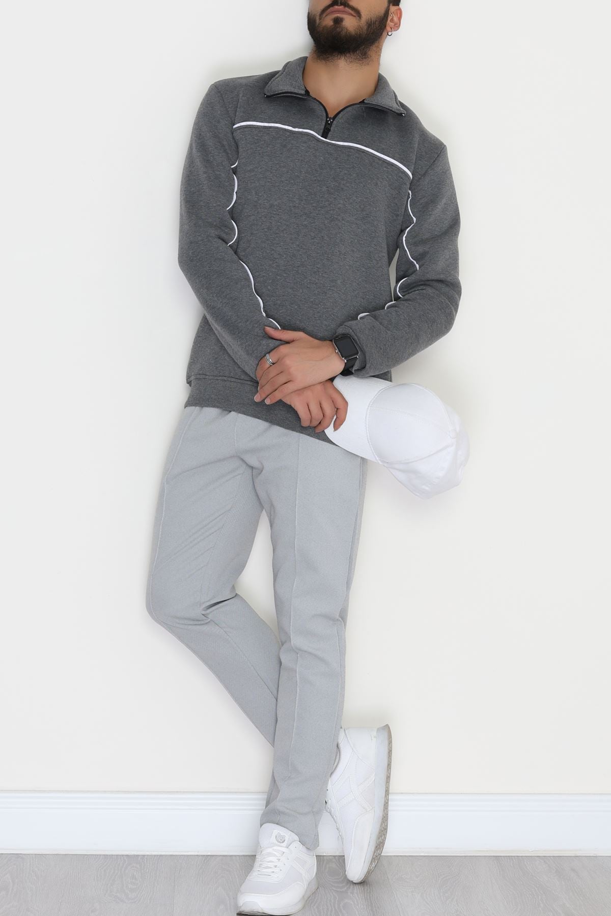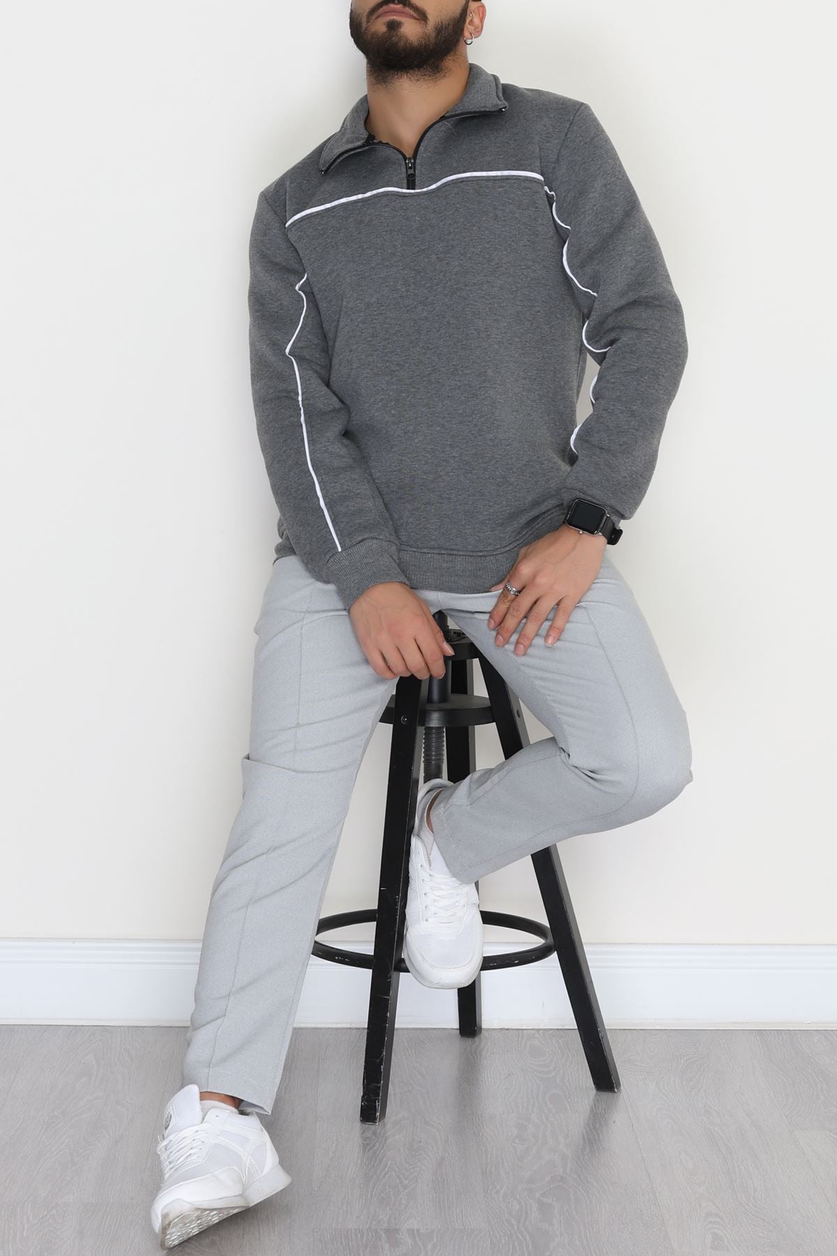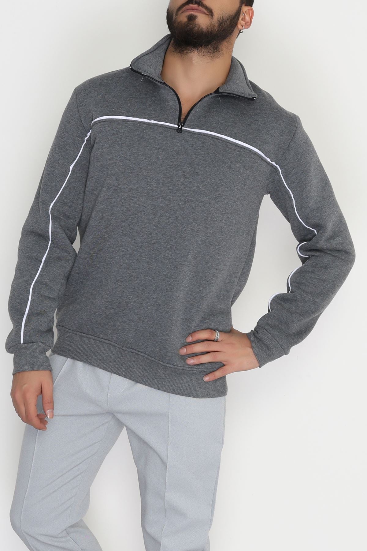 3 İplik Şardonlu Biyeli Erkek Sweat Füme - 42561.1937.