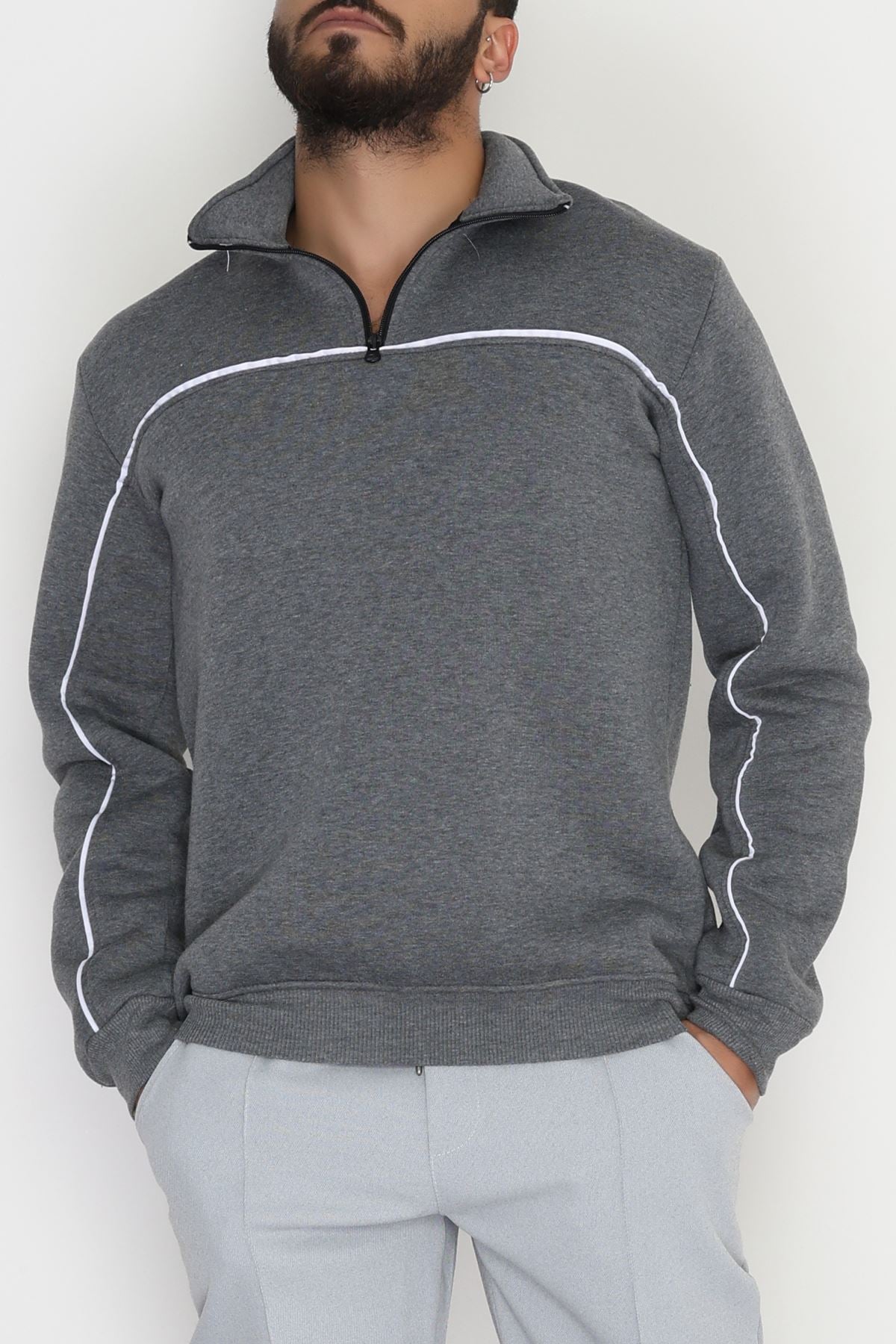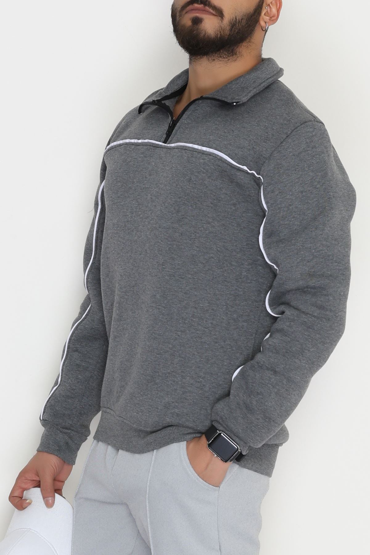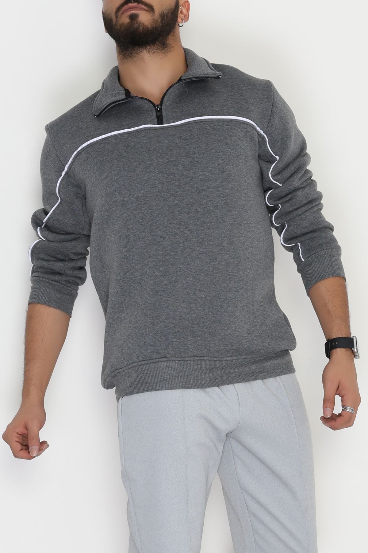3 İplik Şardonlu Biyeli Erkek Sweat Füme - 42561.1937.