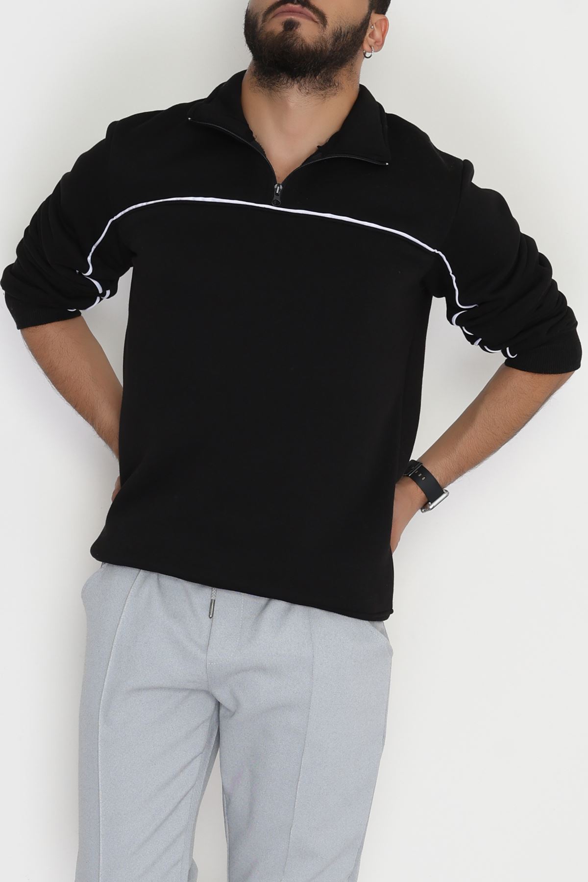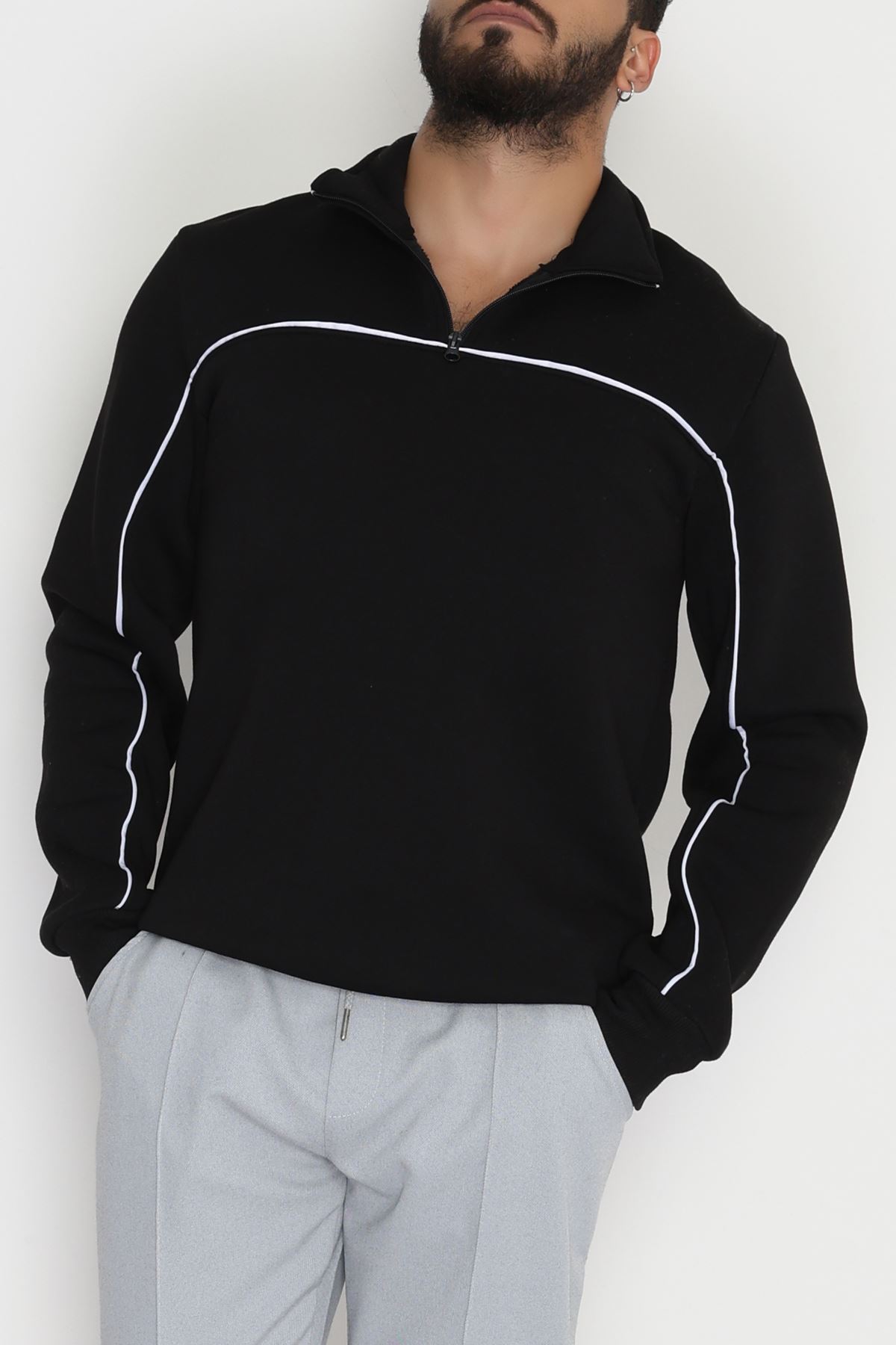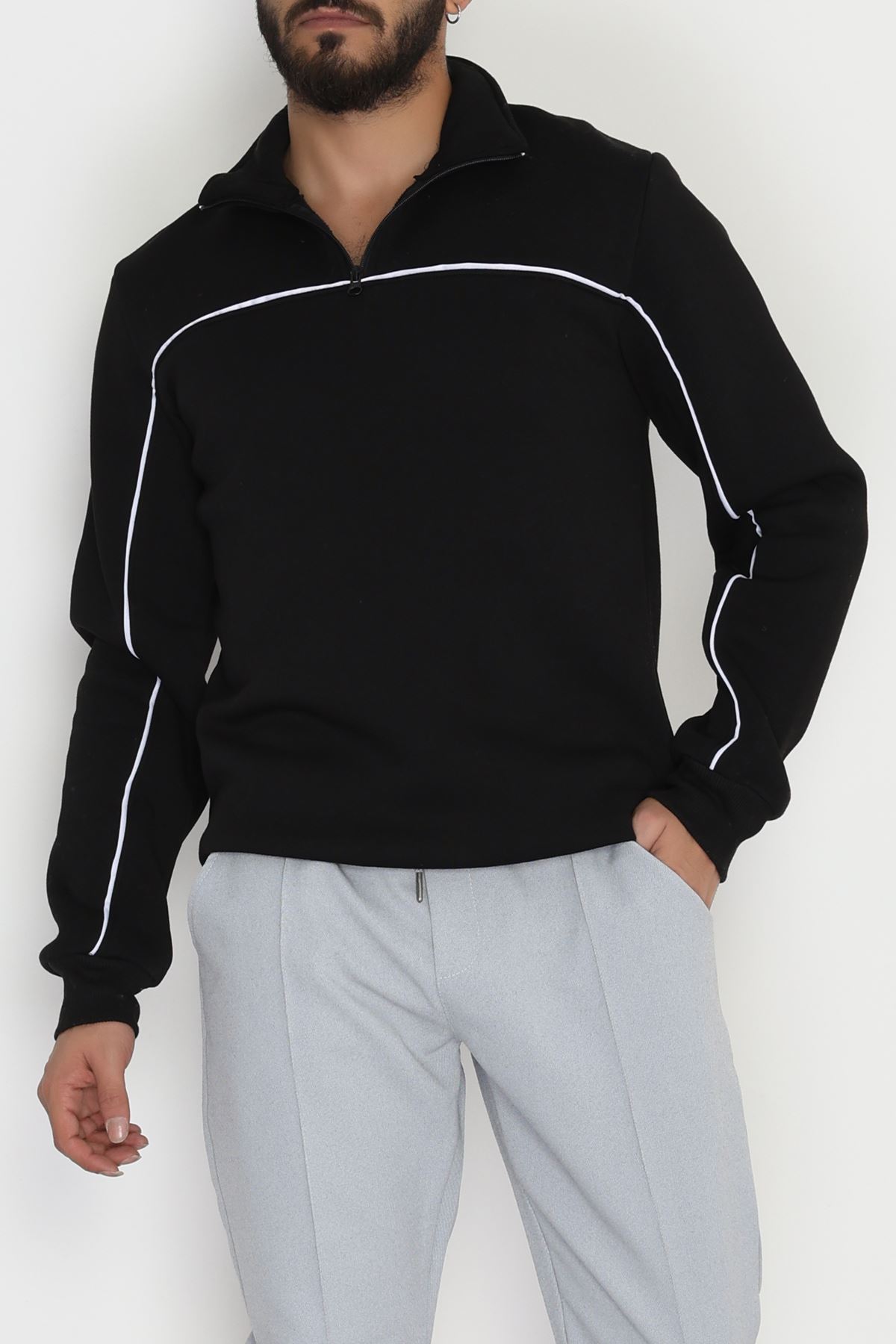 3 İplik Şardonlu Biyeli Erkek Sweat Siyah - 42561.1937.