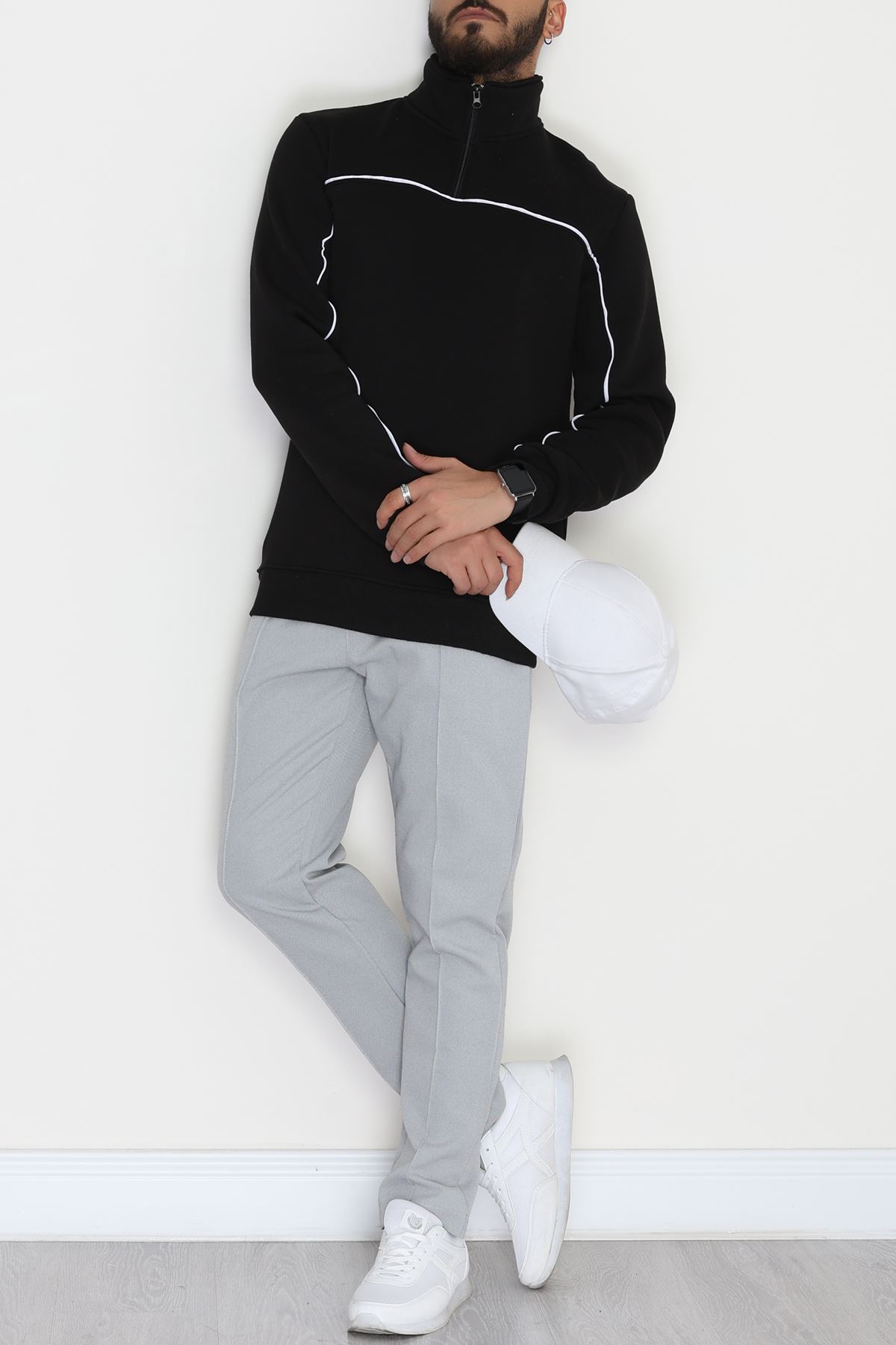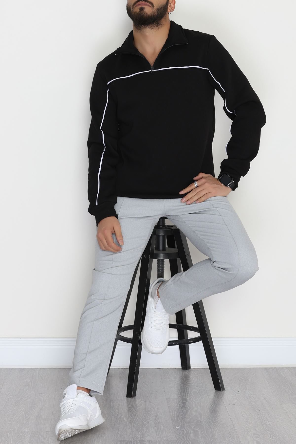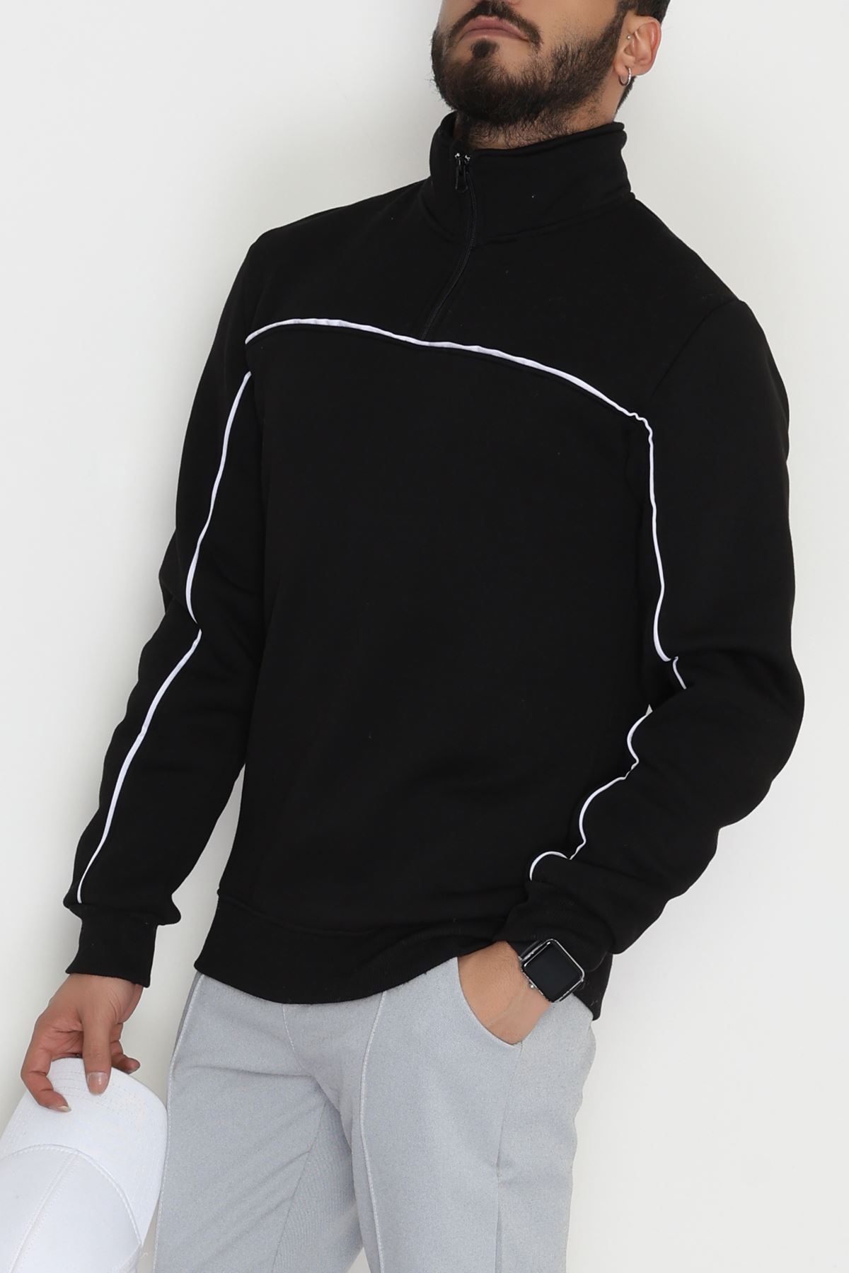 3 İplik Şardonlu Biyeli Erkek Sweat Siyah - 42561.1937.
