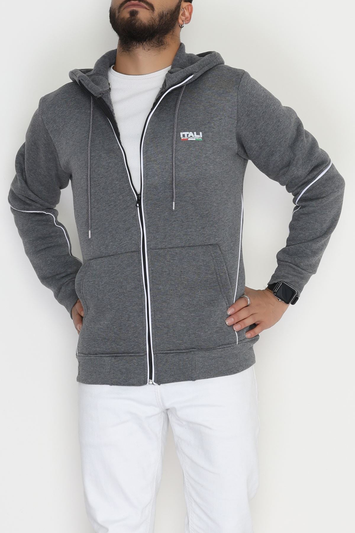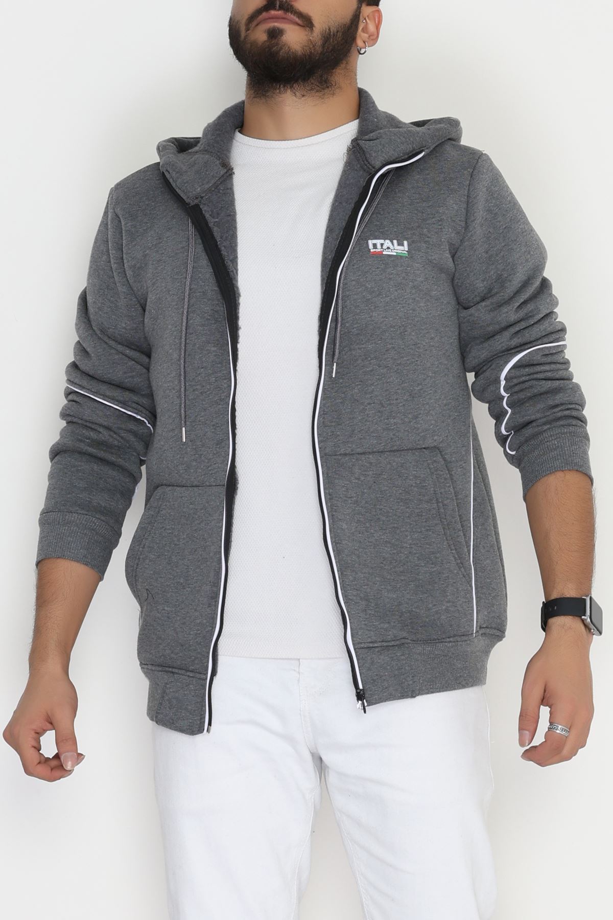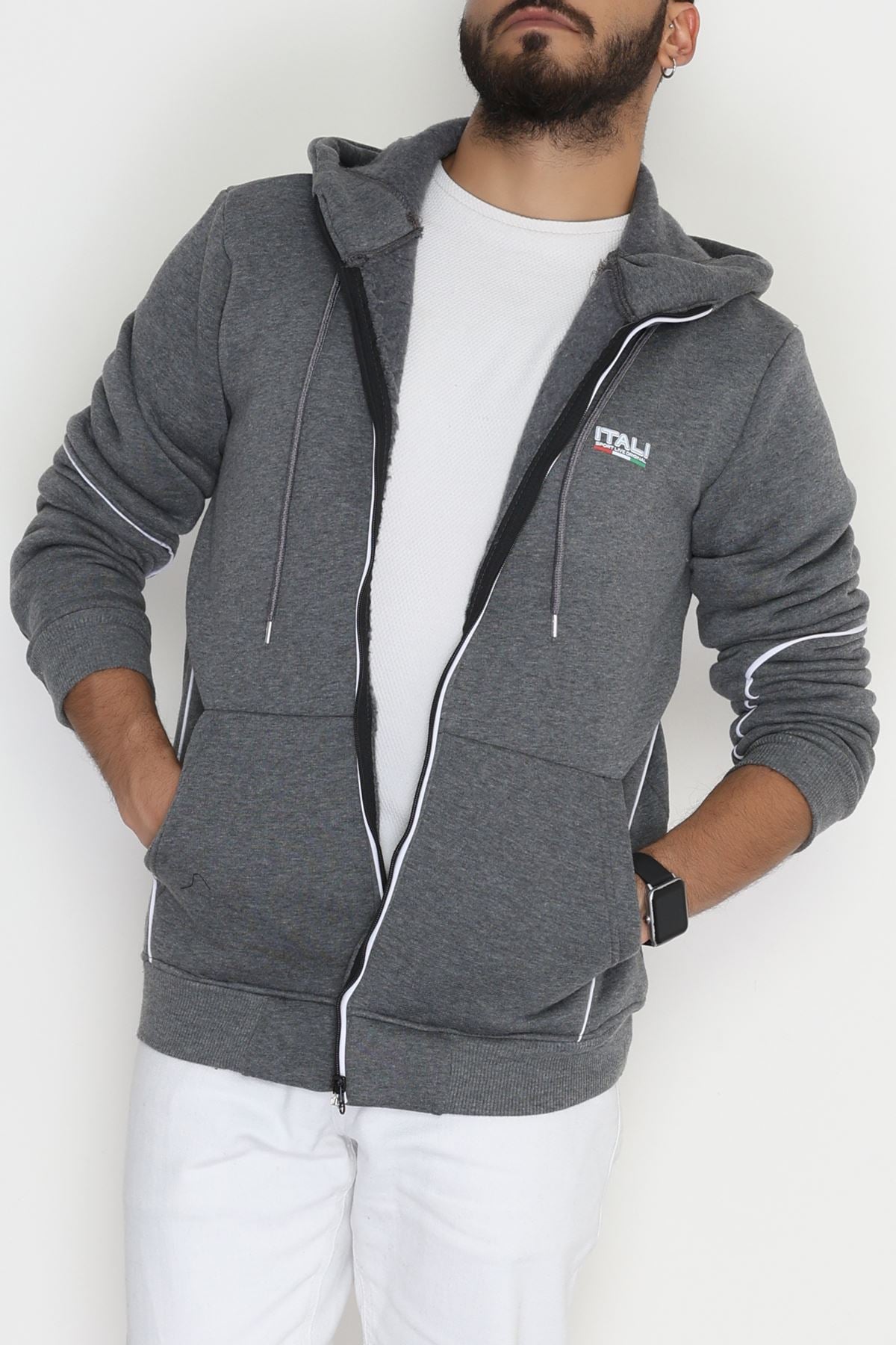 3 İplik Şardonlu Fermuarlı Erkek Sweat Füme - 42566.1937.