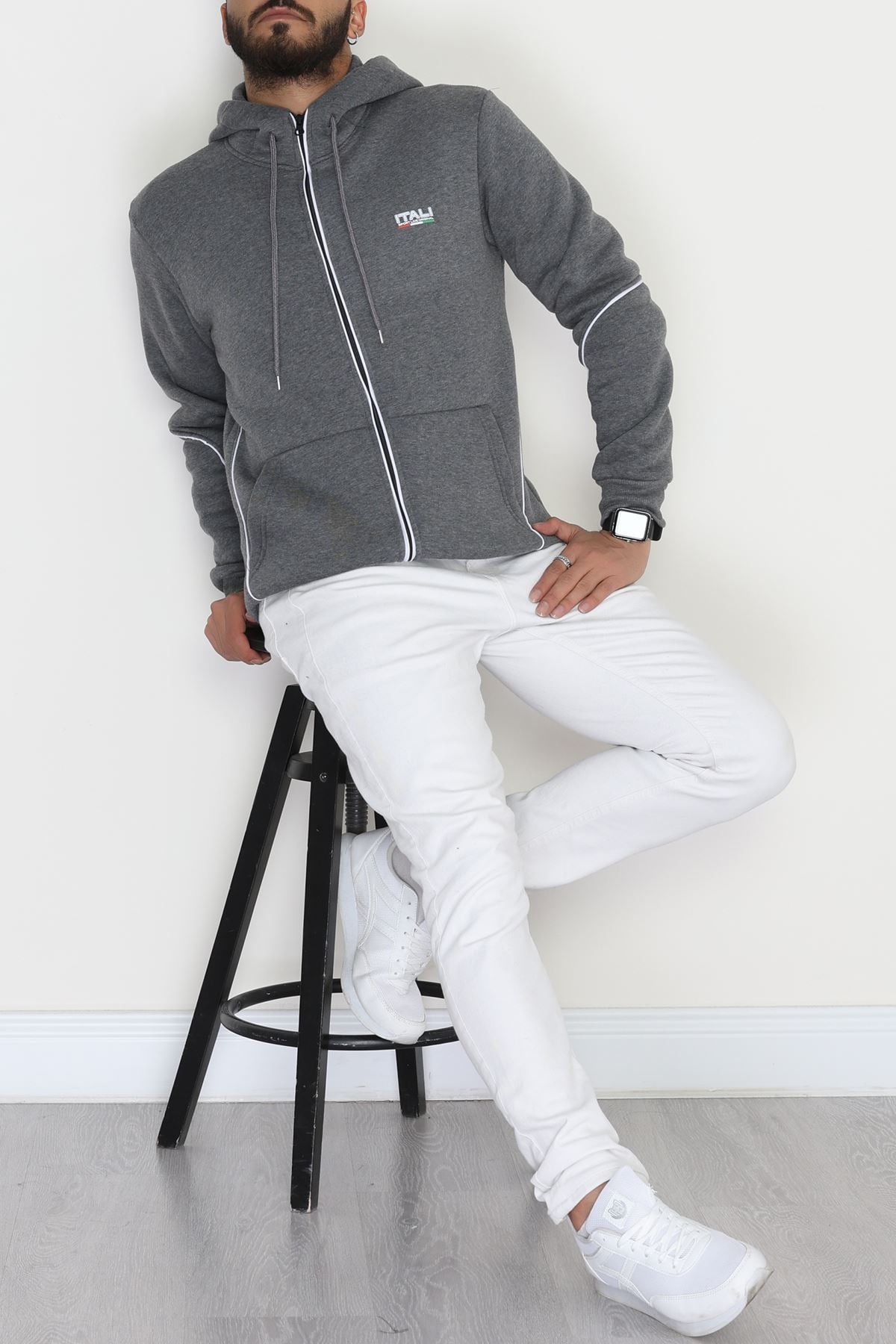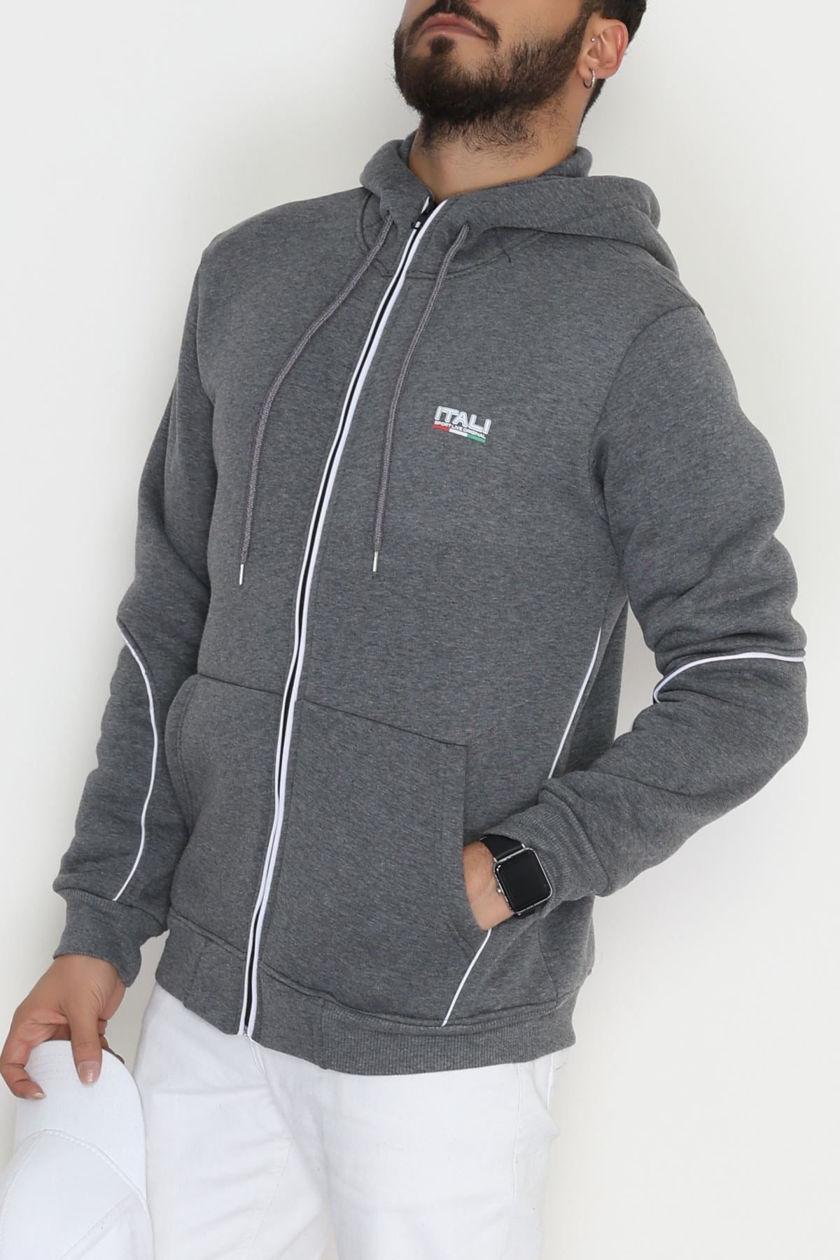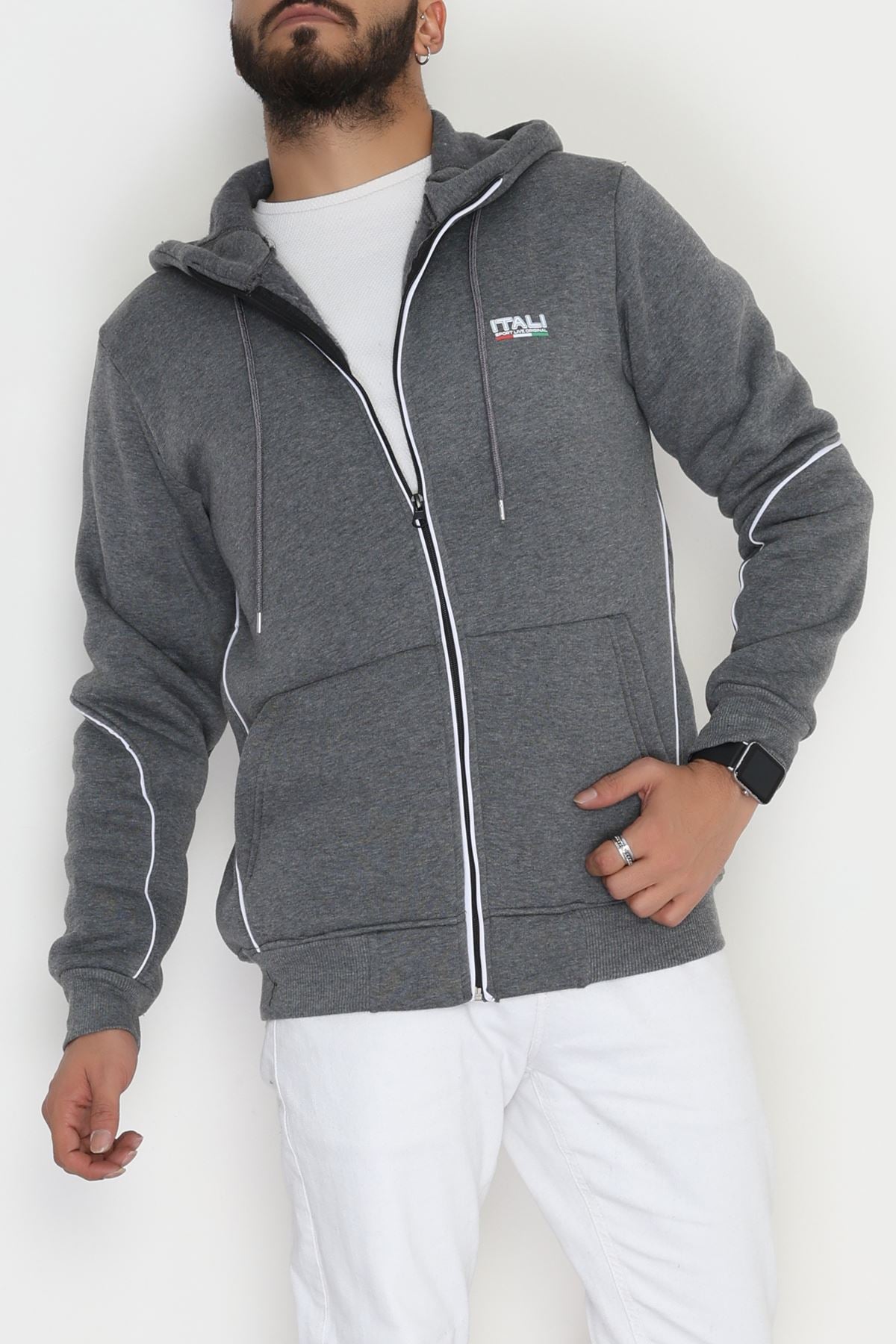 3 İplik Şardonlu Fermuarlı Erkek Sweat Füme - 42566.1937.