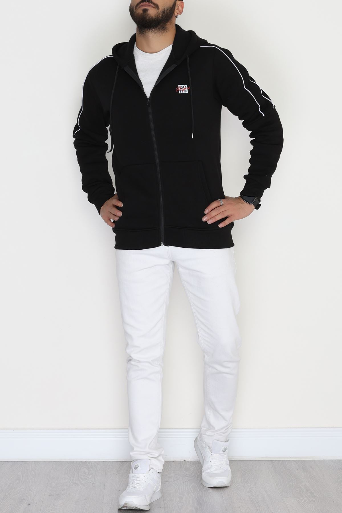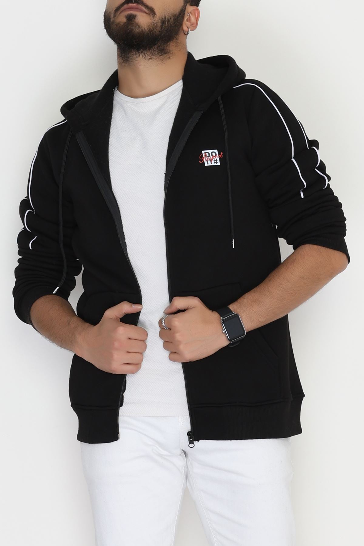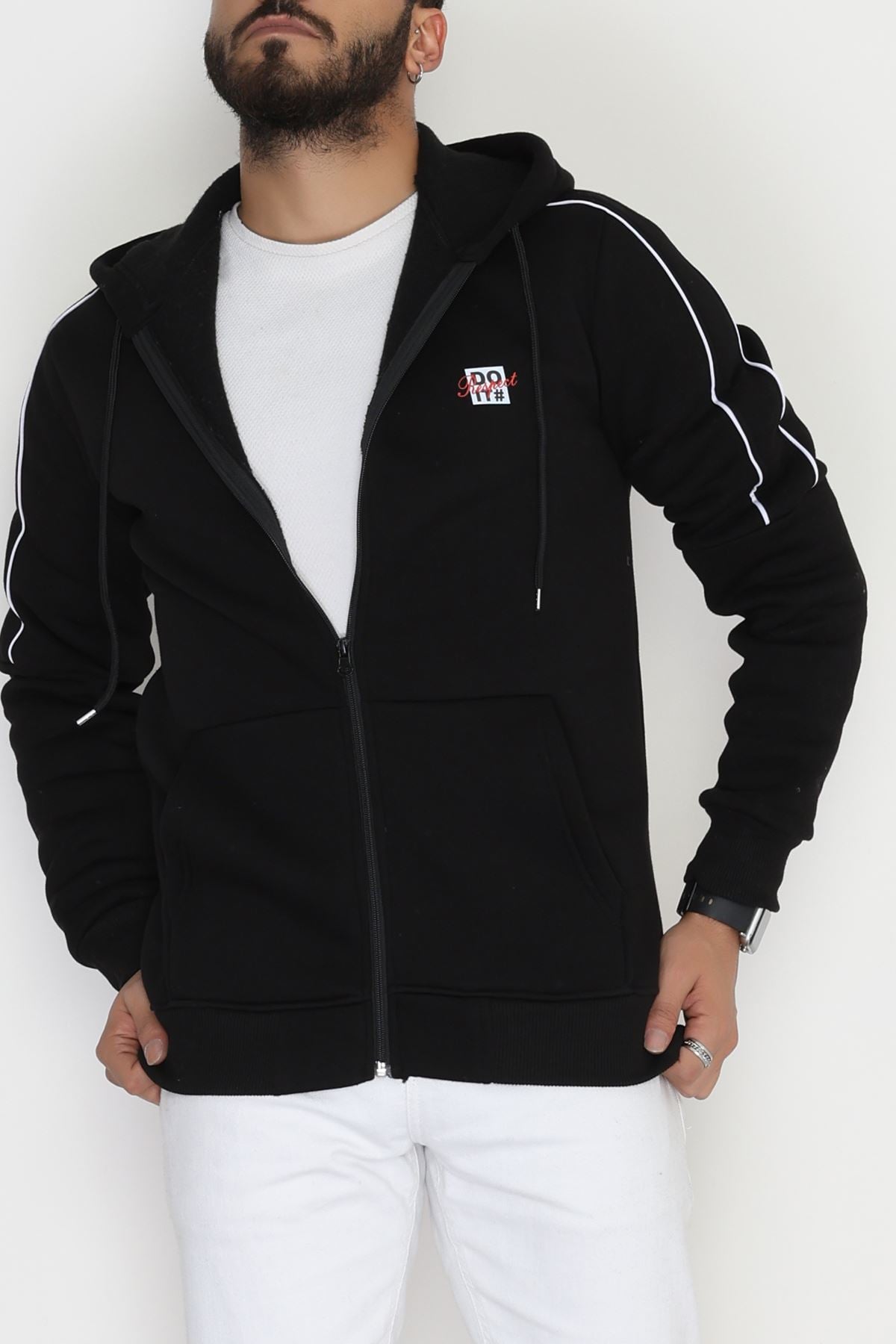 3 İplik Şardonlu Fermuarlı Erkek Sweat Siyah - 42567.1937.