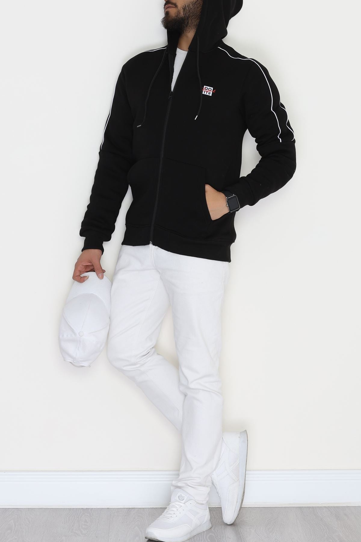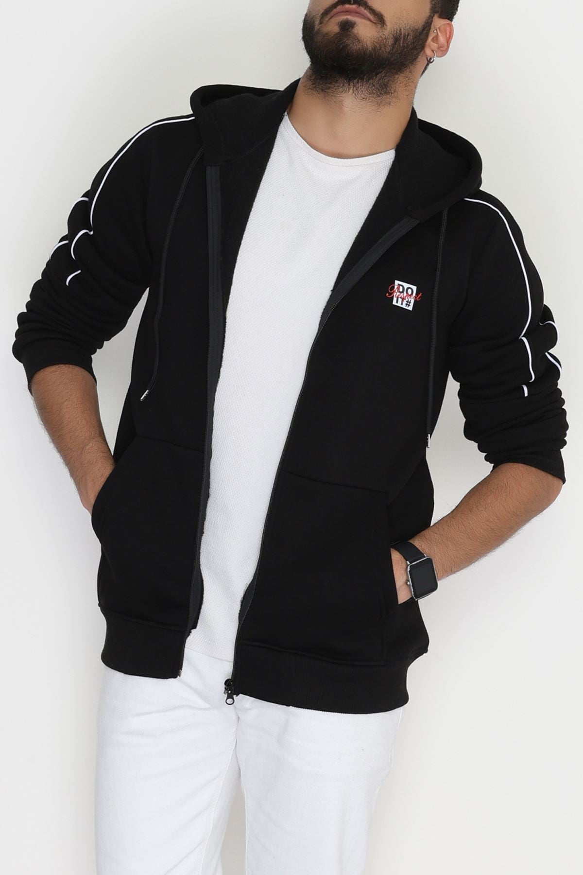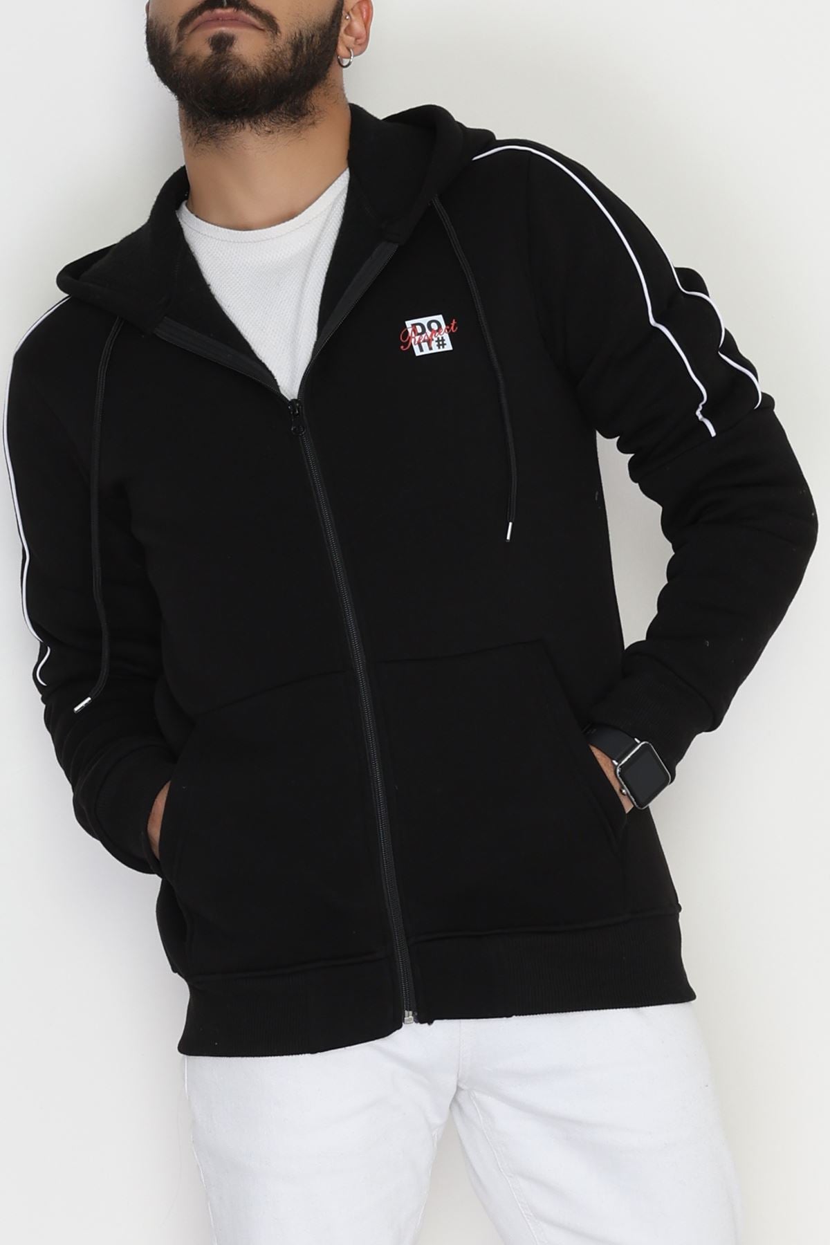 3 İplik Şardonlu Fermuarlı Erkek Sweat Siyah - 42567.1937.