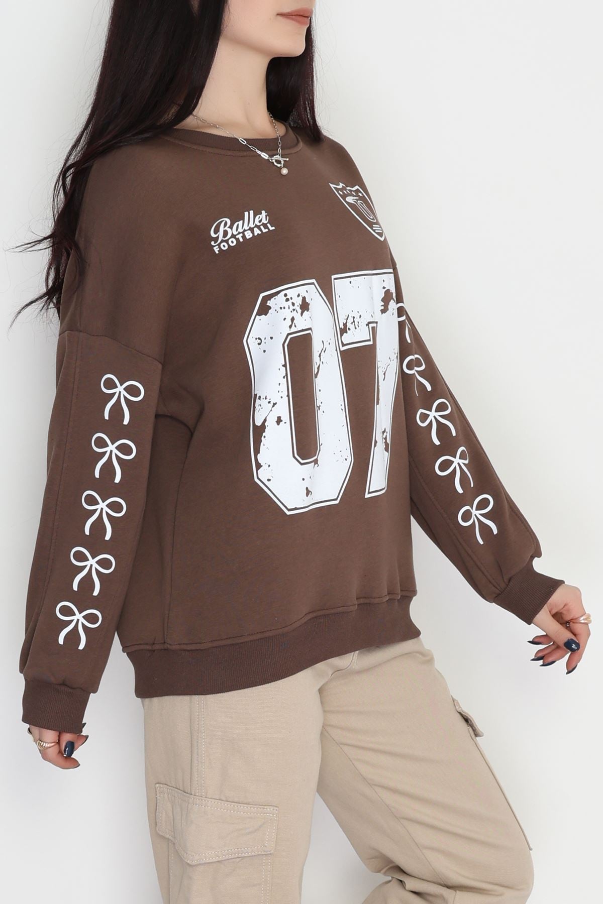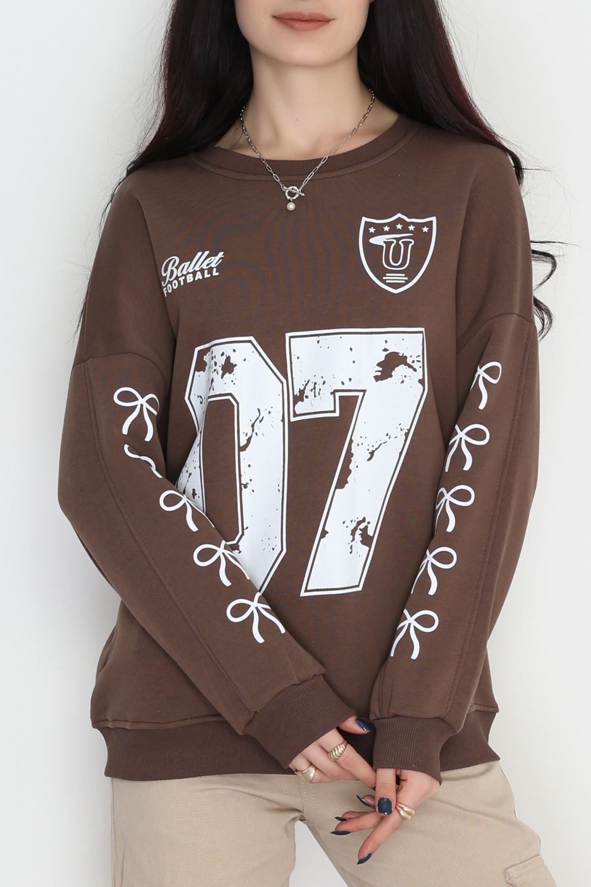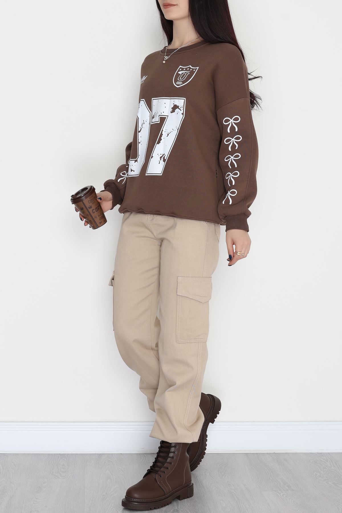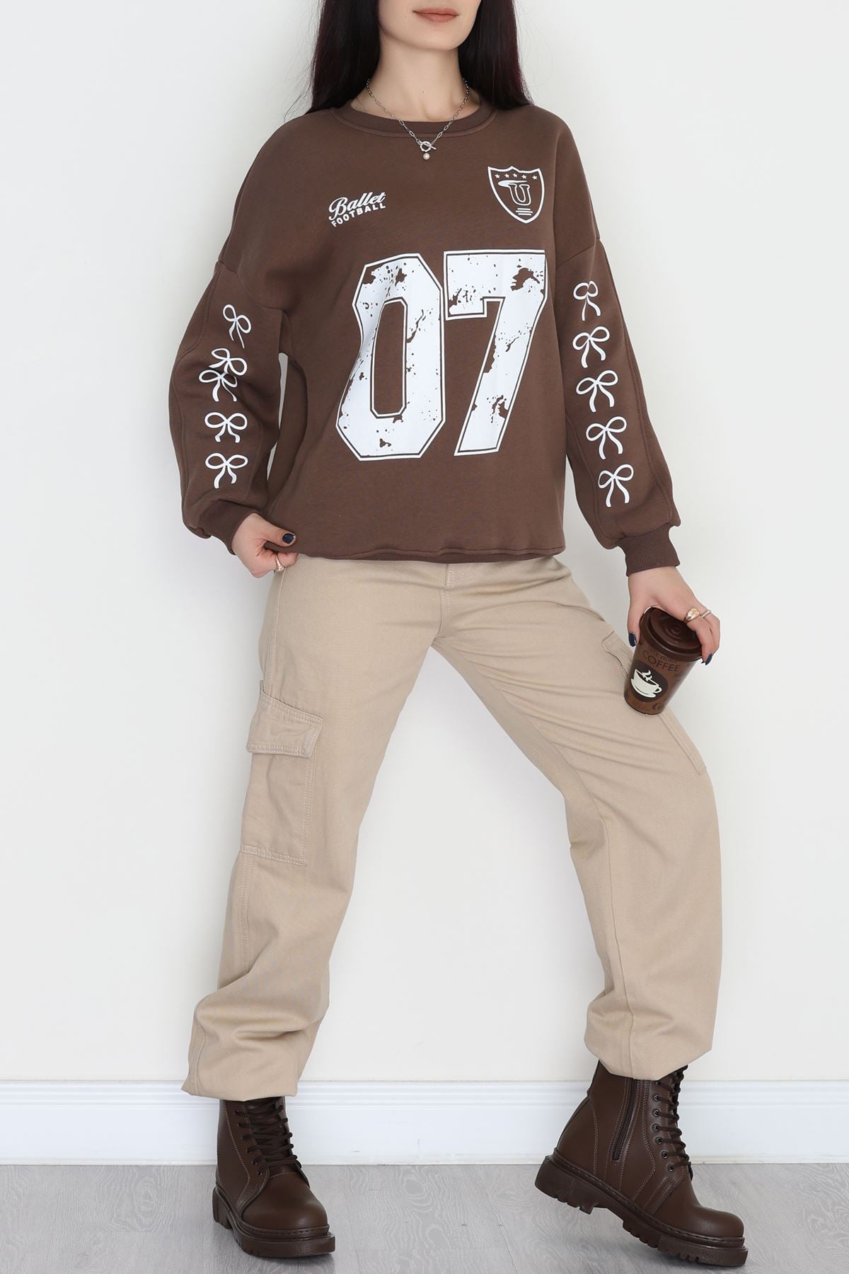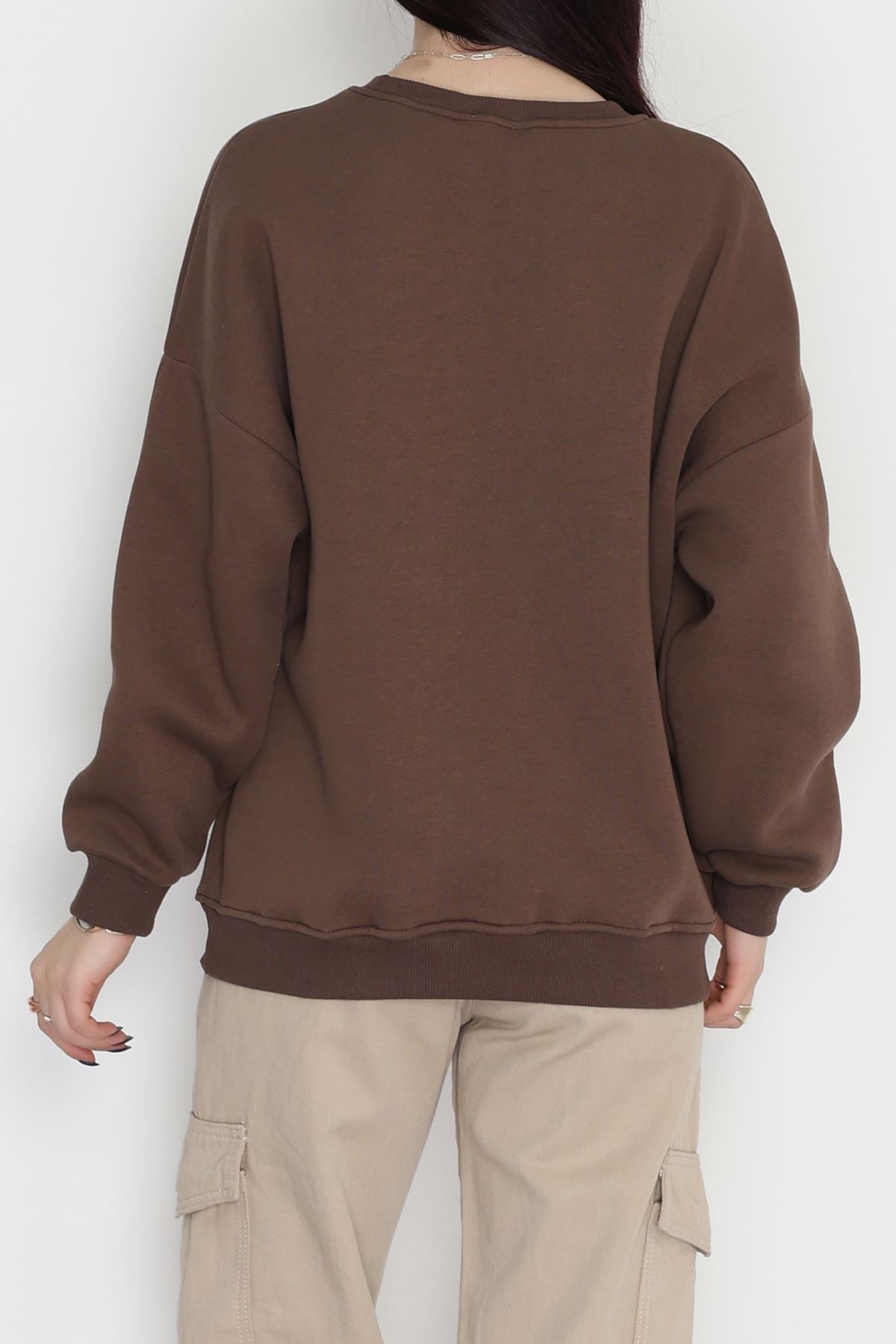 3 İplik Şardonlu Oversize Sweat Kahve - 50920.1878.